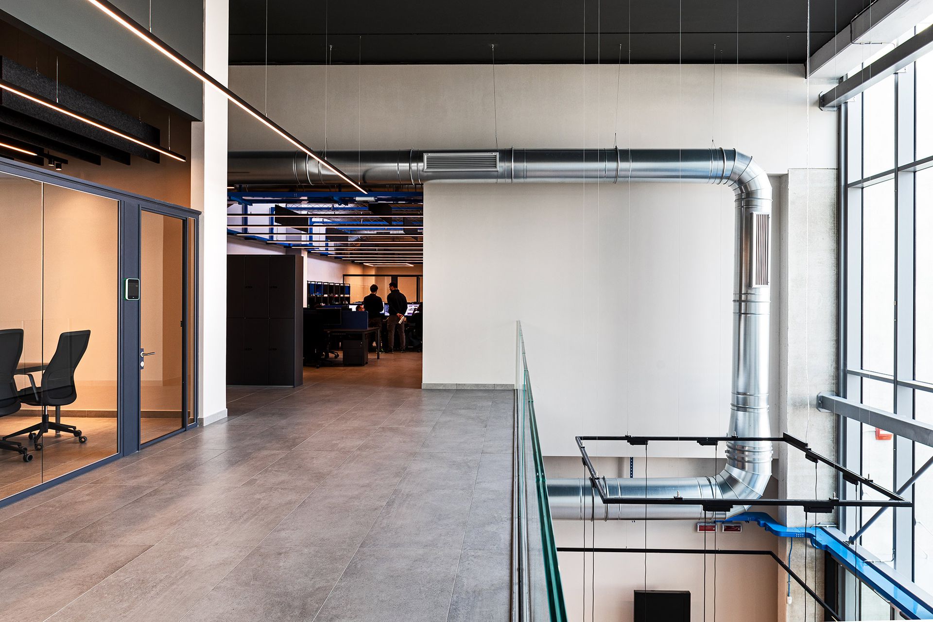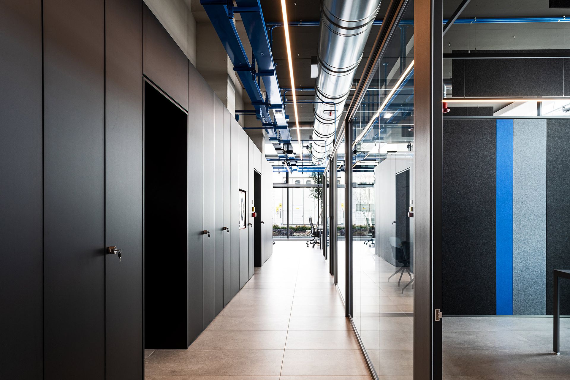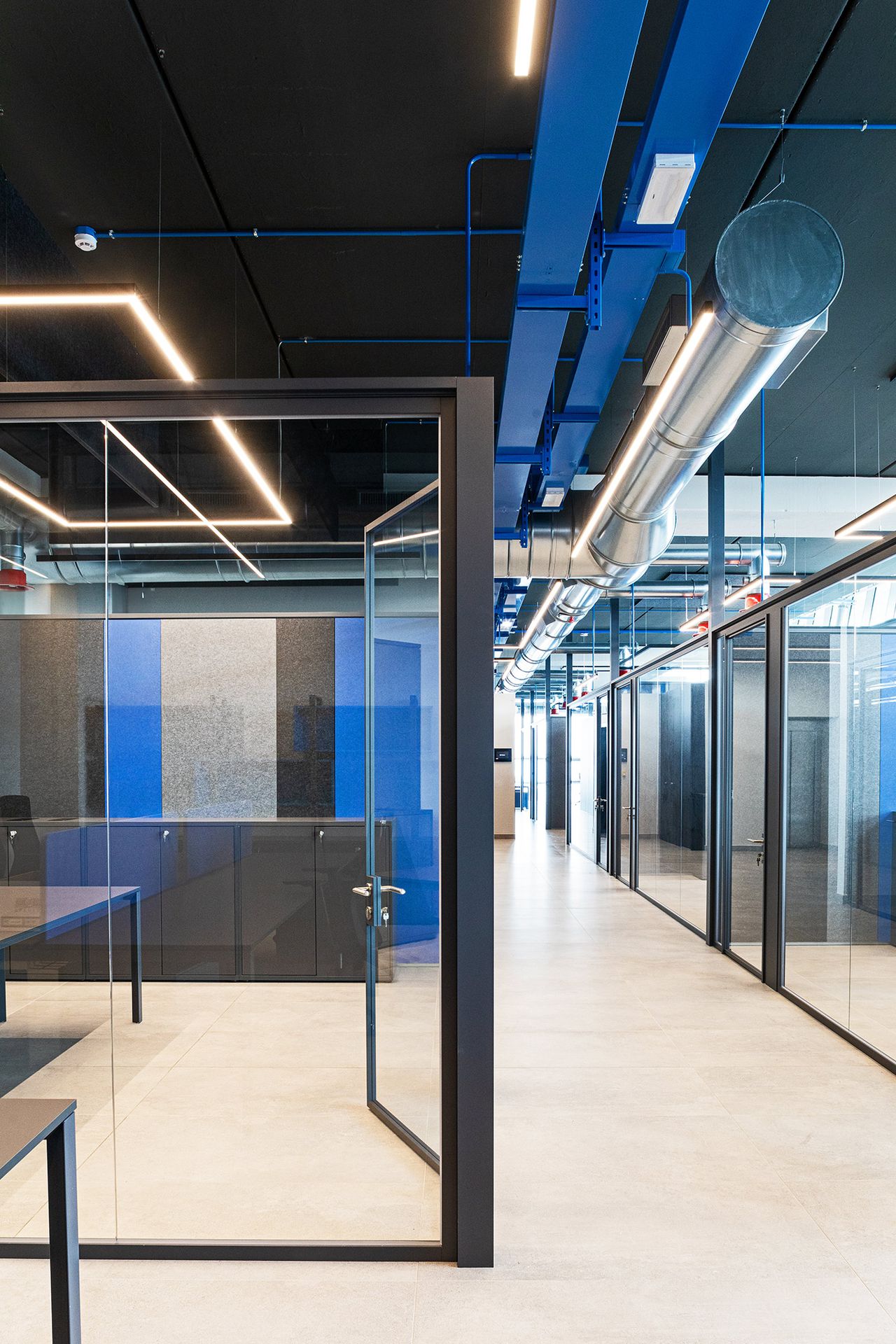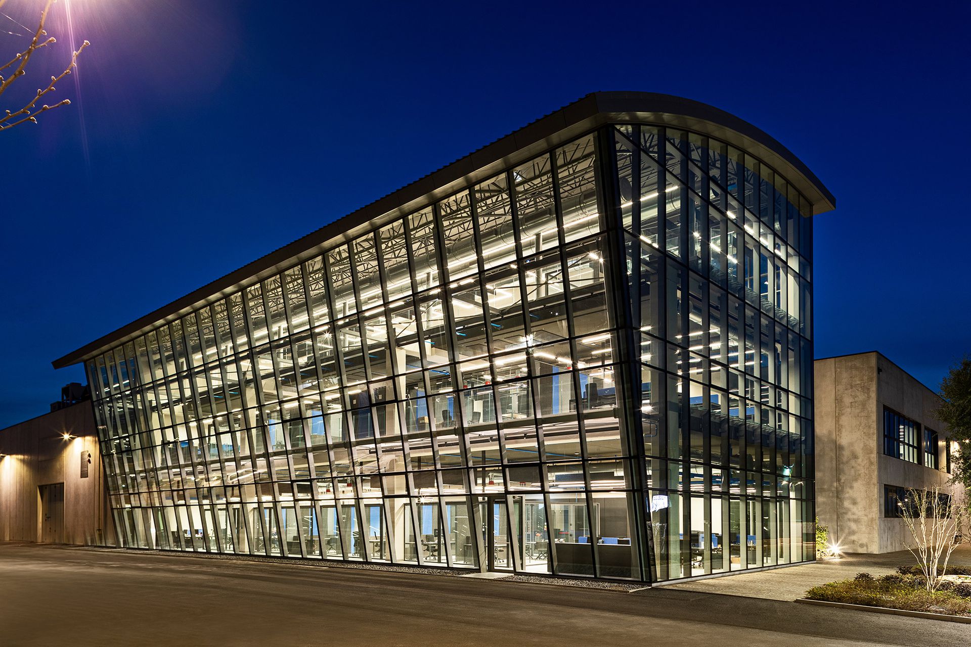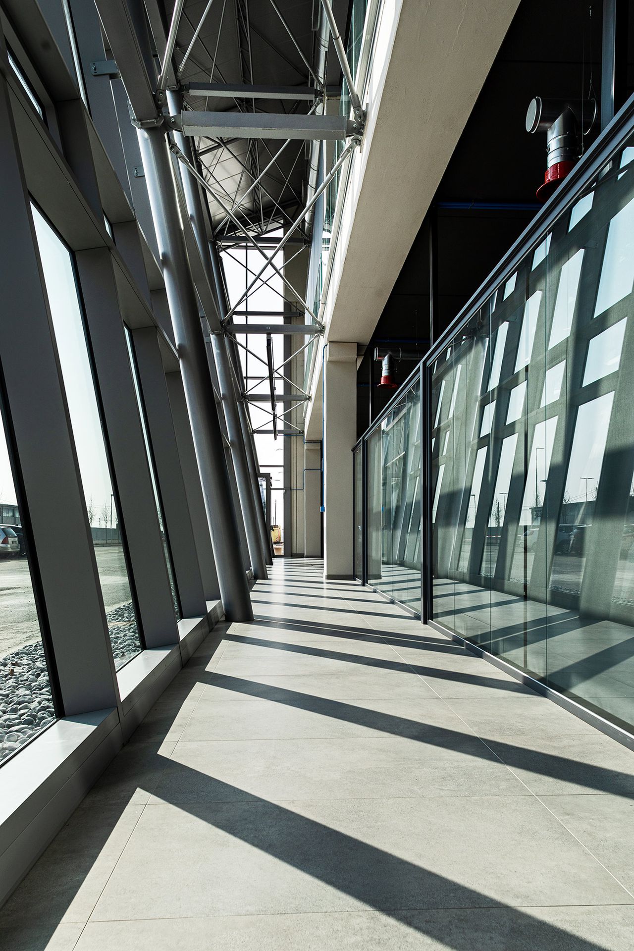Clevertech è una realtà in forte espansione che, per la costruzione degli uffici nella sua nuova sede, ha voluto ispirarsi alla visibilità del lavoro di squadra attraverso una “grande vetrina” che accogliesse e mostrasse il lavoro dei suoi collaboratori.Per far ciò l’accurata progettazione ha previsto una struttura inclinata in carpenteria metallica che abbiamo poi tamponato con una grande facciata strutturale di circa 38x17x15 metri di altezza. Qui la presenza delle sigillature esterne al posto delle classiche copertine amplifica l’effetto vetrina, così da soddisfare le esigenze di trasparenza del cliente.La copertura dell’edificio è in pannelli metallici curvi grecati, provvisti di ogni accorgimento per la sicurezza e le performance termoacustiche. Anche i serramenti sono ad alto isolamento con vetri selettivi, mentre ingressi automatici, porte antipanico e una pensilina in vetro completano il nostro intervento che grazie al generoso uso del vetro mette in aperta relazione esterno e interno di questa architettura. Progetto Arch. Maurizio Di Mauro e Arch. Elena Reggiani