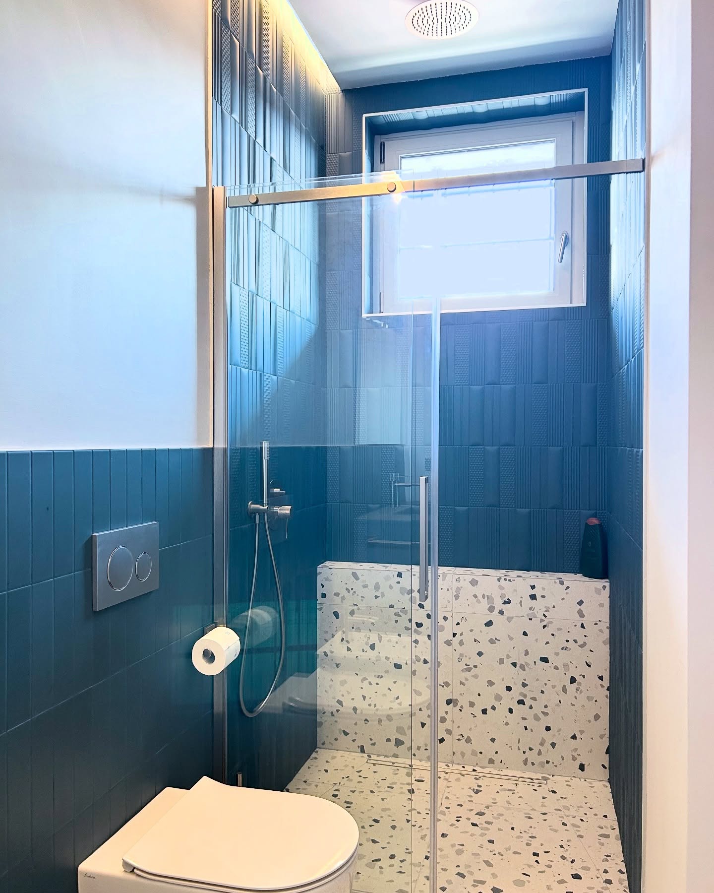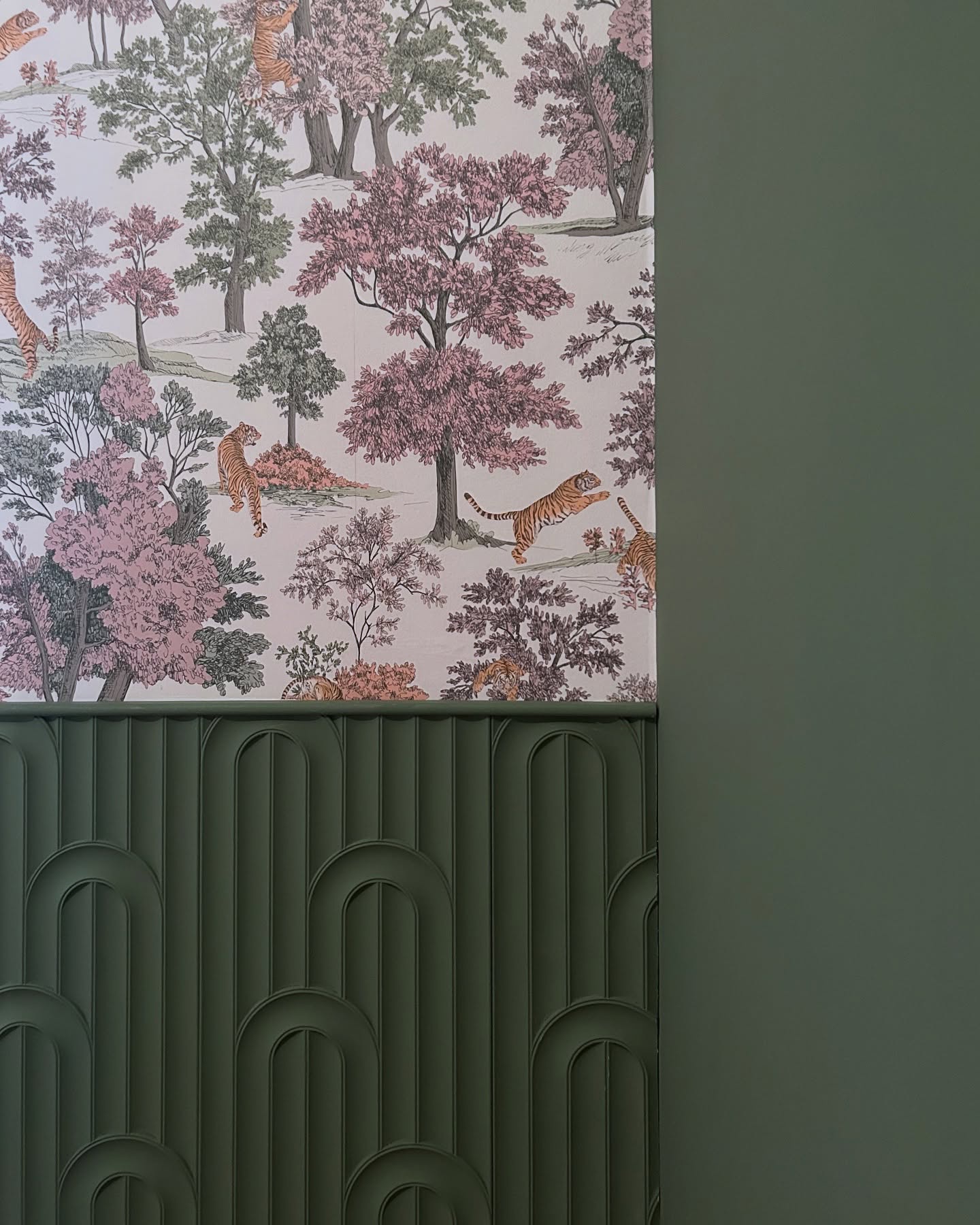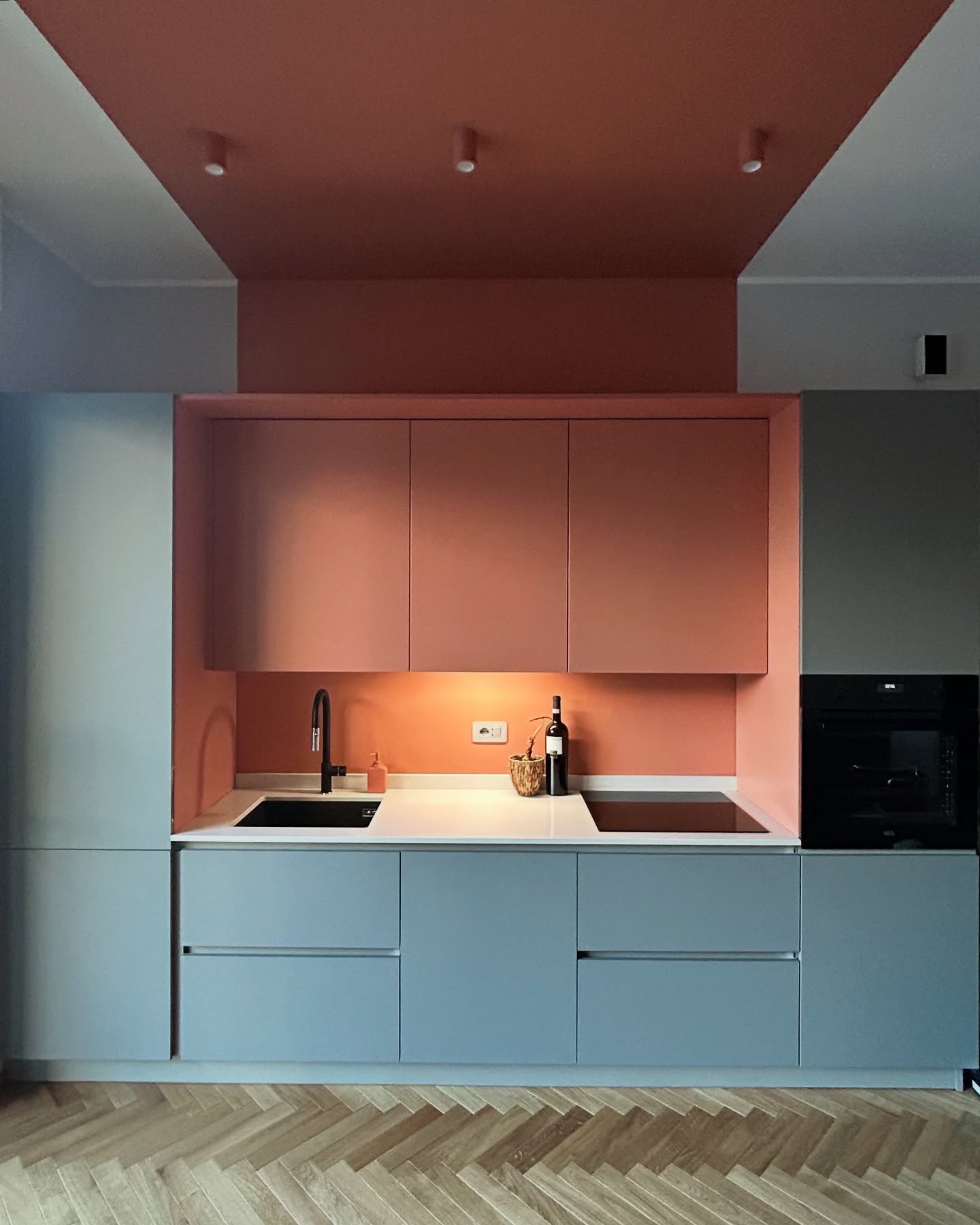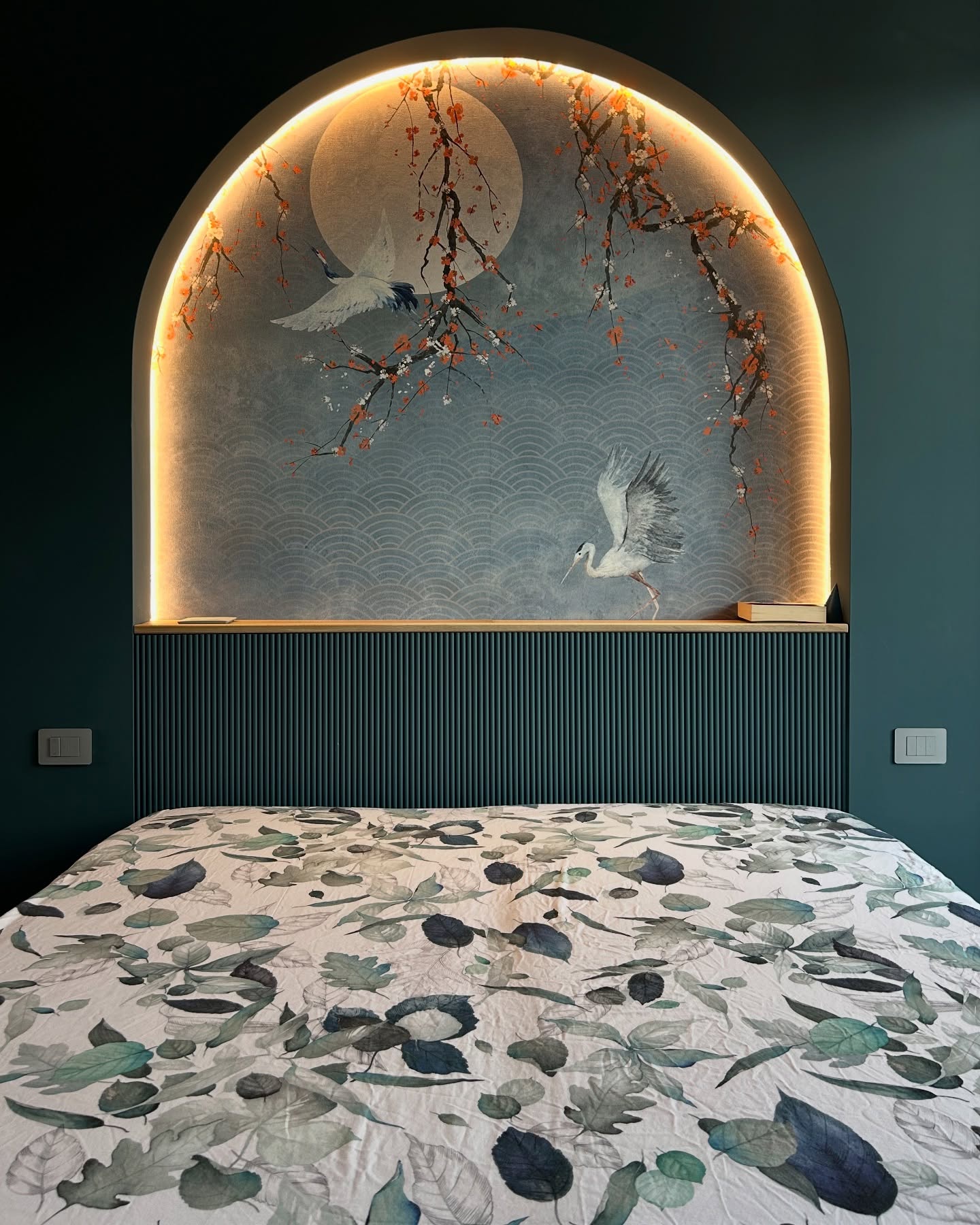 Questo appartamento nel cuore di Milano nasceva come un bilocale con un'unica camera da letto, un solo bagno, tanto spazio sprecato in ingresso e disimpegni. Il progetto ha trasformato completamente i 63mq rendendoli funzionali: 2 grandi camere da letto, 2 ampi bagni completi, un soggiorno con angolo cottura, un ripostiglio/lavanderia, il tutto arricchito da uno splendido balcone che corre lungo tutto un lato dell'appartamento. A creare unicità al progetto è l'utilizzo di materiali e colori: porte filomuro nascondono stanze nelle quali esplodono ambientazioni oniriche adornate da boiserie colorate che rendono l'ambiente accogliente ed elegante. Nella zona giorno l'area cucina/pranzo è avvolta da una fascia di colore che ne delimita i confini correndo attraverso l'elemento centrale della cucina, risalendo sul soffitto e ripiegando sulla parete opposta, sotto a questo "cielo" colorato il grande tavolo da pranzo. Nascosta per 1/3 dalla parete RAL 3012 si rivela l'apertura verso la camera da letto matrimoniale: qui il blu avvolge l'ambiente. In blu sono dipinti i dettagli dell'ampio armadio tutta altezza interamente a specchio, in blu i faretti cilindrici che lo illuminano, in blu la parete nella quale è aperta una finestra ad arco verso un paesaggio giapponese che, grazie ai suoi aironi in volo, accompagna verso un piacevole sonno chi è sdraiato sul letto sottostante. Da qui un'altra porta nasconde l'accesso al bagno in cui questa volta il blu è il tocco dato dalle piastrelline rettangolari che decorano la parete dietro ai sanitari e all'interno della doccia acquistano matericità con rilievi sempre diversi. Un grande soffione a soffitto offre una piacevole cascata d'acqua e l'ambientazione viene scaldata da una fascia di luce indiretta che corre lungo tutto il controsoffitto. La seconda camera è avvolta dalla dolcezza di un paesaggio onirico di tigri ed alberi esotici, una boiserie si offre come testata letto e l'intero ambiente è armonioso e delicato. In linea con questa, il secondo bagno, all'interno del quale la protagonista è l'ampia doccia in nicchi a semi arco rivestita in piastrelle che ricordano un hammam marocchino. Carte da parati, giochi di colore, tanta luce rendono questo appartamento un luogo davvero incredibile!