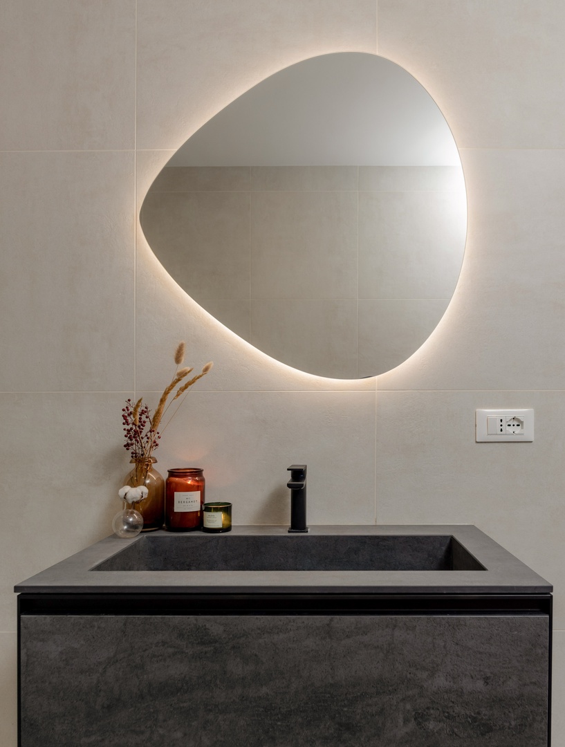 In questo progetto di ristrutturazione mi sono occupata di un piccolo appartamento di 55 mq risalente alla metà degli anni '80. Questo appartamento è stato rivoluzionato completamente per riqualificare tutti gli spazi. Prima di tutto abbiamo suddiviso l'abitazione in piccole zone funzionali. Ci siamo quindi concentrati su questi punti di intervento: 1) ricavare una nuova zona di ingresso2) ampliare la cucina-soggiorno3) ricavare uno spazio lavanderia4) ampliare il bagno 5) migliorare la camera matrimonialeQuesti sono stati i punti di partenza per elaborare il progetto. Tutti questi cambiamenti siamo riusciti a compierli in soli 55 mq. Prima di tutto abbiamo eliminato un muro che toglieva spazio tra la zona cucina e il soggiorno creando quindi un unico spazio con maggiori possibilità di intervento. In cucina abbiamo creato un forte stacco tra due tipologie di pavimenti: il gres nella zona cucina e il legno nella parte restante della casa per dare una tonalità più calda all'ambiente.Per essere in tema con le nostre finiture in ottone è stato inserito un sottile profilo tra un materiale e l'altro. Inoltre questo profilo che separa i due materiale si collega anche con la stessa geometria delle luci di Miloox. La protagonista di questa casa è diventata una cucina verde salvia. Progettando una penisola nel centro della cucina questa soluzione ci ha aiutato anche ad avere tanto spazio per gli oggetti e casalinghi.Costruendo una divisione all'entrata siamo invece riusciti a ricavare uno spazio per la zona ingresso in modo tale da poter posizionare un piccolo armadio porta scarpe. Proseguendo nella casa arriviamo in una zona Laundry che prima veniva usata come ripostiglio mentre ora viene riqualificata per contenere lavatrice e asciugatrice. Un'altro punto di forza dell'appartamento è il bagno che in questo caso preferisco identificarlo come una stanza. Togliendo la vasca e riposizionando tutti i sanitari sono riuscita a valorizzare la vista all'entrata con un grande spazio doccia con un imponente vetrata. Completa questo bagno un grande lavandino nero e specchio retroilluminato Arbi.La stanza matrimoniale è rimasta quasi inalterata nella struttura dei muri. E' stato solo riprogettato l'impianto elettrico e rinfrescato il colore delle pareti e data nuova vita con un pavimento nuovo.