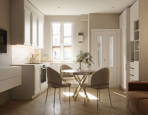 Ristrutturazione di un appartamento quadrilocale di circa 130 mq, focalizzata sull'ammodernamento degli ambienti e sull'ottimizzazione degli spazi per massimizzare la luminosità e l'aerazione. Durante il processo, gran parte delle pareti è stata demolita per favorire una sensazione di ampiezza e apertura, soprattutto nel soggiorno e nella cucina, che sono stati resi comunicanti da una vetrata di generose dimensioni.Per il pavimento, è stata scelta una soluzione di parquet in rovere naturale, con listelli 180 x 12 cm, posati in modo da creare un effetto continuo e armonioso in tutto l'ambiente. Questa scelta non solo conferisce un tocco di calore e eleganza agli spazi, ma si integra perfettamente con il design moderno e luminoso dell'appartamento.Il risultato finale è stato un appartamento che offre tutti i comfort possibili, con ambienti ariosi e luminosi che invitano alla convivialità e al relax. La demolizione delle pareti e l'introduzione di ampie vetrate hanno trasformato gli spazi, creando una sensazione di apertura e connessione tra le varie zone della casa. Il parquet in rovere naturale, oltre a conferire un'estetica accogliente, contribuisce a un ambiente confortevole e piacevole da vivere.