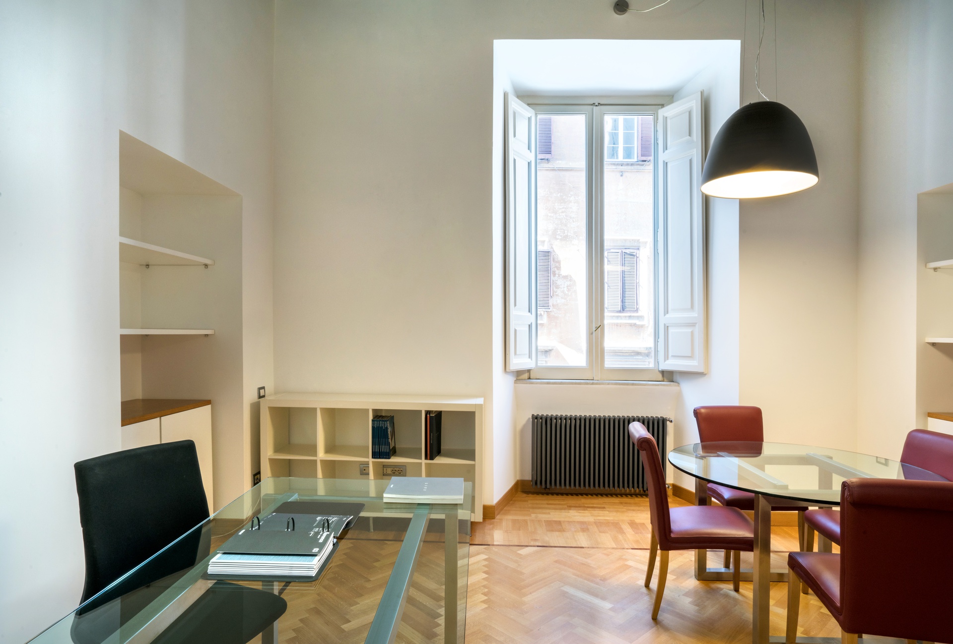 Corso4 è uno splendido appartamento, situato nel cuore di Roma, con un coinvolgente affaccio su Via del Corso e Piazza del Popolo, studiato, in ogni dettaglio e finitura, per accogliere uno studio professionale. L'immobile è caratterizzato da tre importanti camere molto luminose e da un blocco centrale confinante con la Chiesa di Santa Maria in Montesanto, una delle due "Chiese Gemelle" che dominano Piazza del Popolo. Uno dei principali obiettivi progettuali era riuscire a far filtrare la luce proveniente dagli affacci luminosi sul Corso nel corpo centrale dell'appartamento a ridosso della Chiesa. A tal fine sono diventate protagoniste del progetto le "vetrate": la trasparenza è il tema guida dell'intervento. Il linguaggio moderno e lineare delle partizioni realizzate in vetro si fonde perfettamente con l'impianto classico dell'immobile contraddistinto dai soffitti lignei a cassettoni, che si sono recuperati e valorizzati e dalla posa di un pavimento tradizionale in legno di rovere, posto con campi centrali a spina di pesce e cornici con fascia e bindello in noce. L'arredo è stato interamente studiato su misura con la partecipazione di più ditte artigianali cooperanti: vetraio e falegname hanno incastrato il proprio lavoro per modellare e creare le partizioni progettate e dar vita ad un risultato armonioso dove il vetro e le falegnamerie laccate bianche dominano la scena assieme a pochissimi altri complementi di arredo, come le "sospensioni" che rappresentano un totem per i punti di incontro riunioni e la reception.