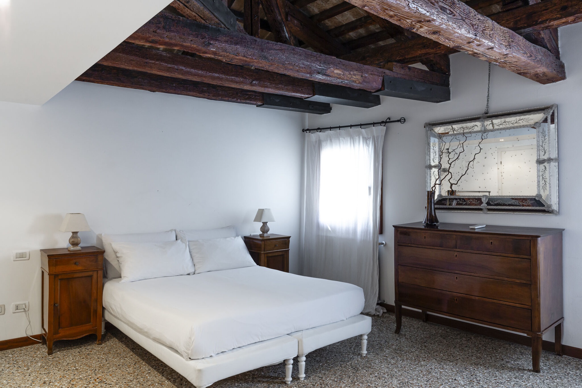 Tipica casa veneziana con travi in legno a vista, ristrutturata ed trasformata a locazione breve.