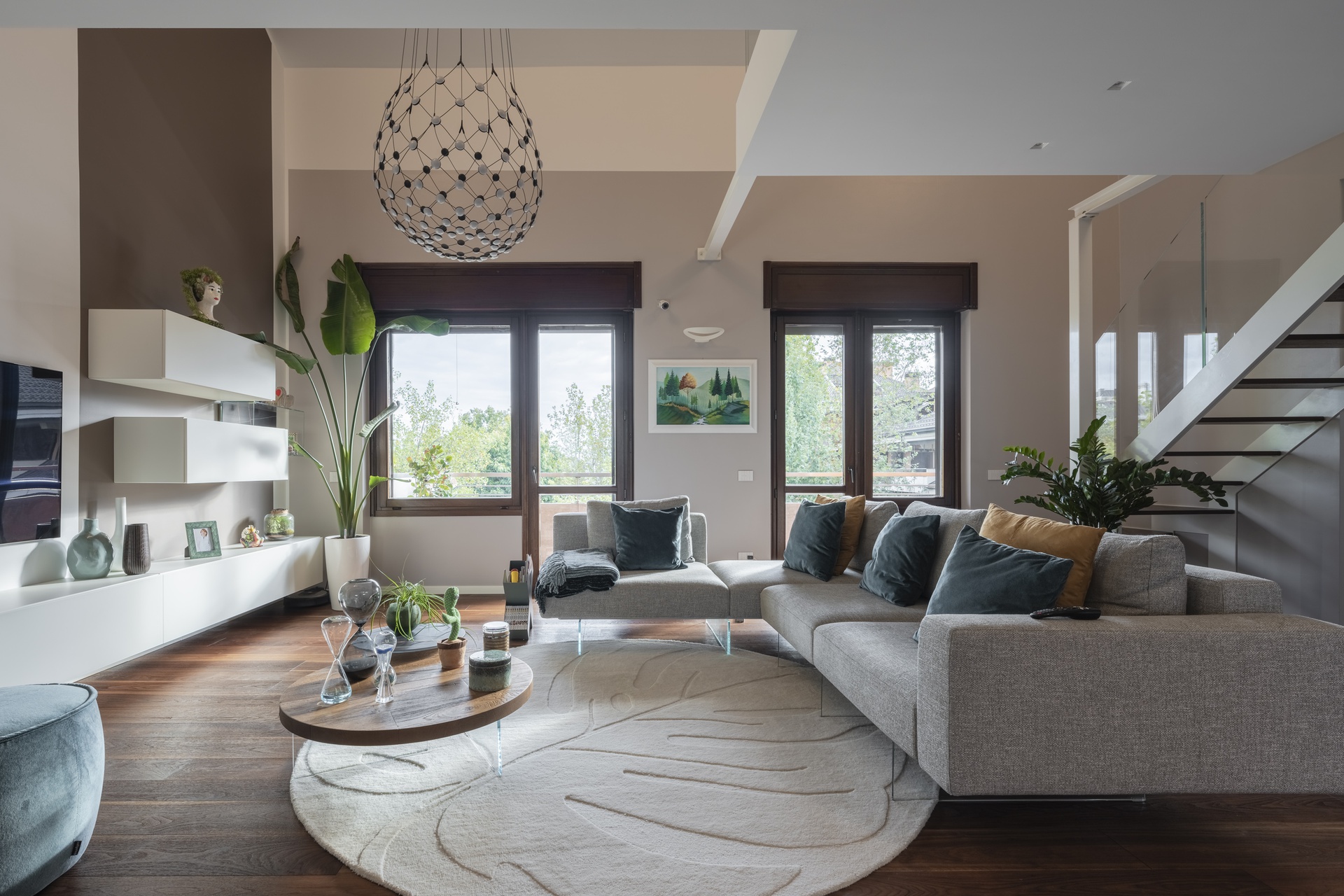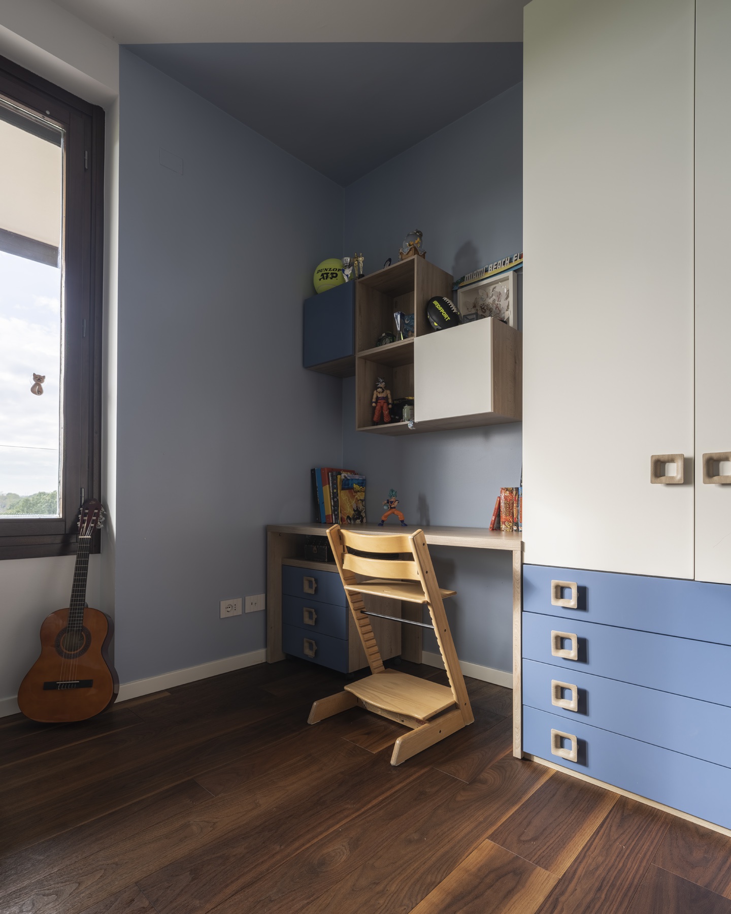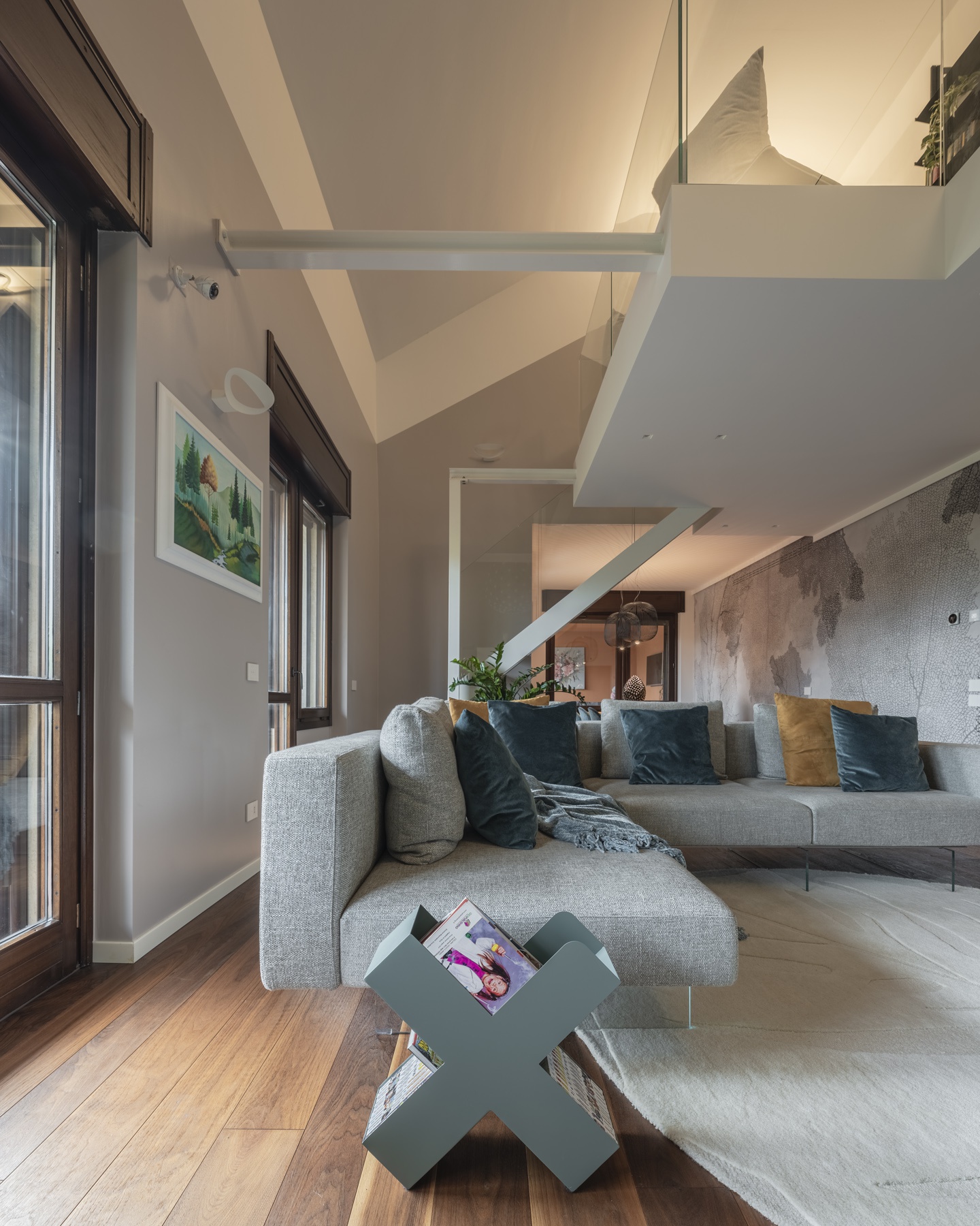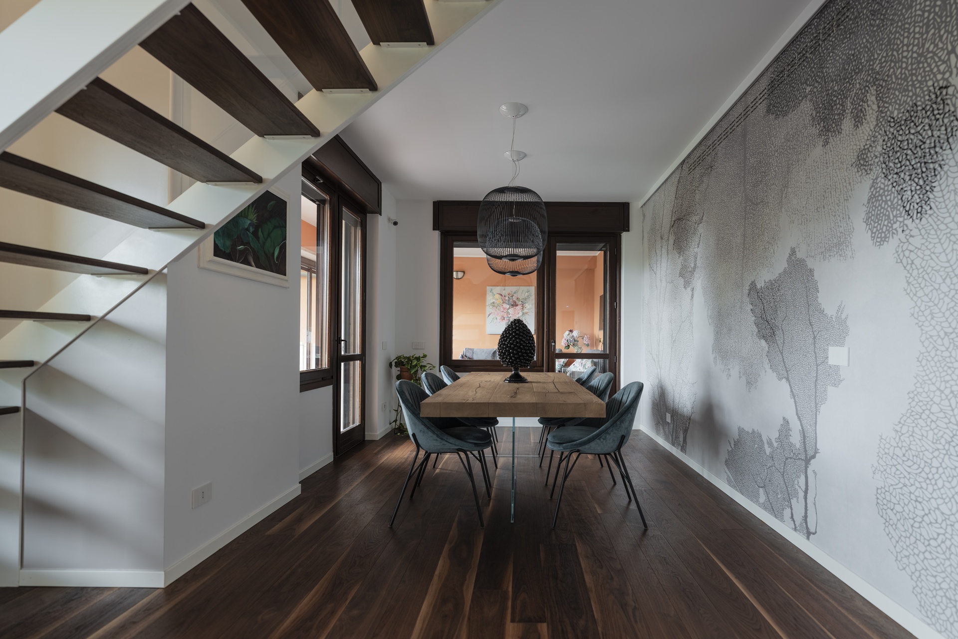 Ristrutturazione completa di un appartamento di 150 mq in Milano.Demolizione quasi totale di tutti i tavolati interni e nuova distribuzione degli spazi. L'esigenza del committente era di creare un ampio soggiorno con soppalco e zona pranzo, e una cucina separata da due porte scorrevoli in vetro.Attraverso un corridoio di distribuzione si ha accesso alla zona notte comprensiva di due camere da letto, due bagni e una lavanderia.Progetto iniziato a giugno del 2020 e terminato ad aprile del 2021. Pratica Edilizia, Interior Design, Lighting Design e direzione lavori Carli Annalisa architetto. Arredi firmati Cesar, Lago, Caccaro, Molteni, Mobilcrab, lampade di LucePlan, Artemide, Axolight, Flos e Miloox.Spazi molto ampi soprattutto nel soggiorno dove la caratteristica principale è la doppia altezza. Questa ha permesso la realizzazione di un soppalco in ferro con parapetti e passerella in vetro. Il risultato è un volume molto leggero che sembra fluttuare nell’aria. I toni degli arredi e delle pareti sono prevalentemente chiari e molto caldi. A terra è stato utilizzato un noce americano di Cadorin. Anche in questo progetto abbiamo utilizzato delle carte da parati in soggiorno e nella camera da letto.L’illuminazione è senza dubbio uno degli elementi più importanti che oltre ad essere funzionale diventa anche particolarmente scenografica in alcuni ambienti.Complete renovation of a 150 sq m flat in Milan.Almost total demolition of all internal floorboards and new distribution of spaces. The client's requirement was to create a large living room with mezzanine and dining area, and a kitchen separated by two sliding glass doors.A distribution corridor gives access to the sleeping area comprising two bedrooms, two bathrooms and a laundry room.Project started in June 2020 and finished in April 2021. Building Practice, Interior Design, Lighting Design and work direction Carli Annalisa architect. Furniture by Cesar, Lago, Caccaro, Molteni, Mobilcrab, lamps by LucePlan, Artemide, Axolight, Flos and Miloox.Very large spaces, especially in the living room where the main feature is the double height. This allowed the construction of an iron mezzanine with parapets and a glass walkway. The result is a very light volume that seems to float in the air. The tones of the furniture and walls are predominantly light and very warm. An American walnut from Cadorin was used on the floor. Also in this project we used wallpaper in the living room and bedroom.Lighting is undoubtedly one of the most important elements, which in addition to being functional also becomes particularly scenic in certain rooms.Anno del progetto: 2020/2021Costo del progetto: 100.001 - 250.000 €Paese: ItaliaFoto di Simone Marulli