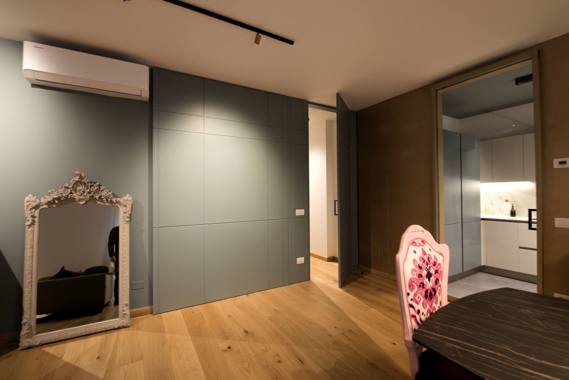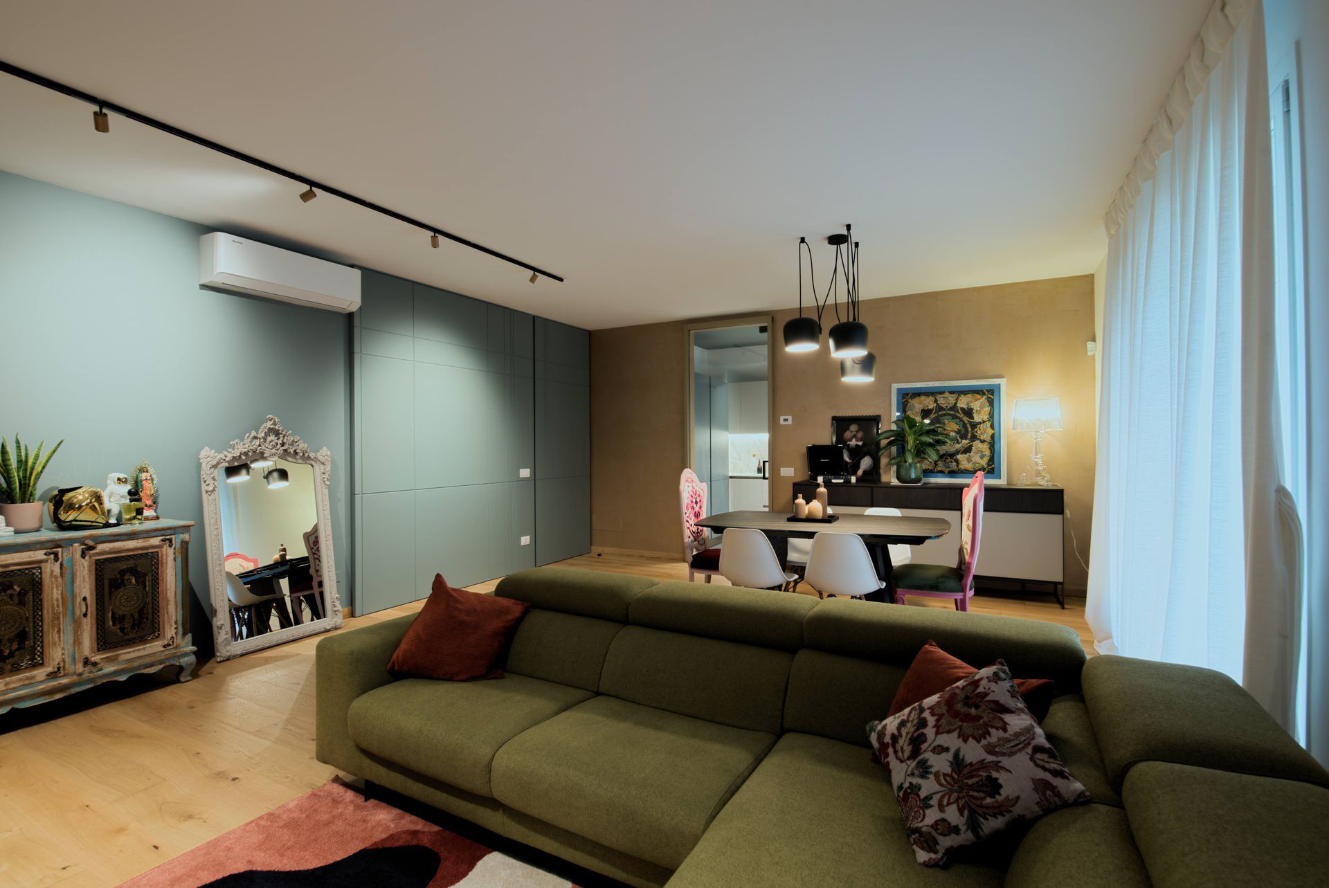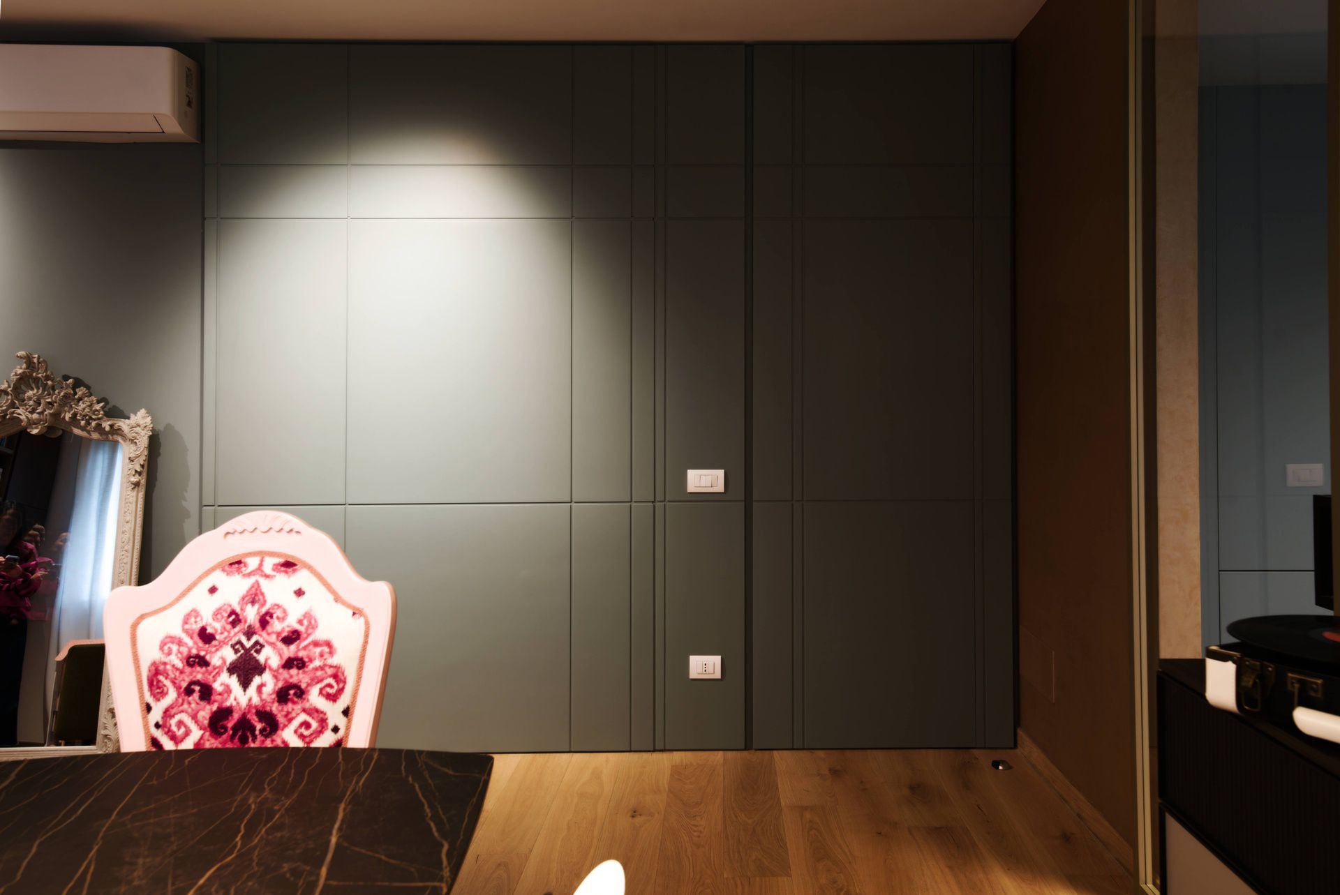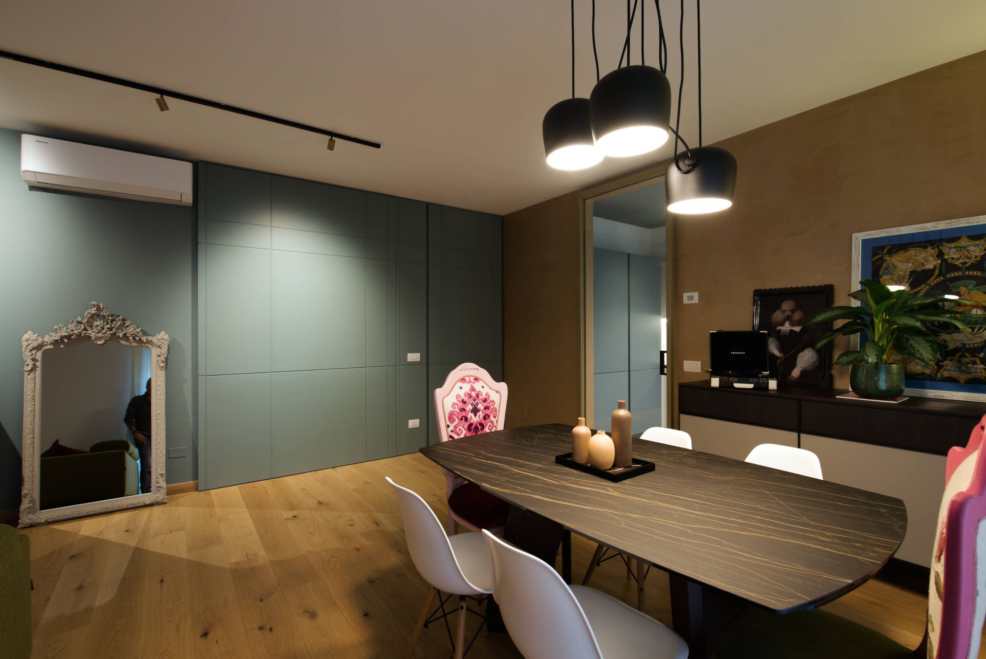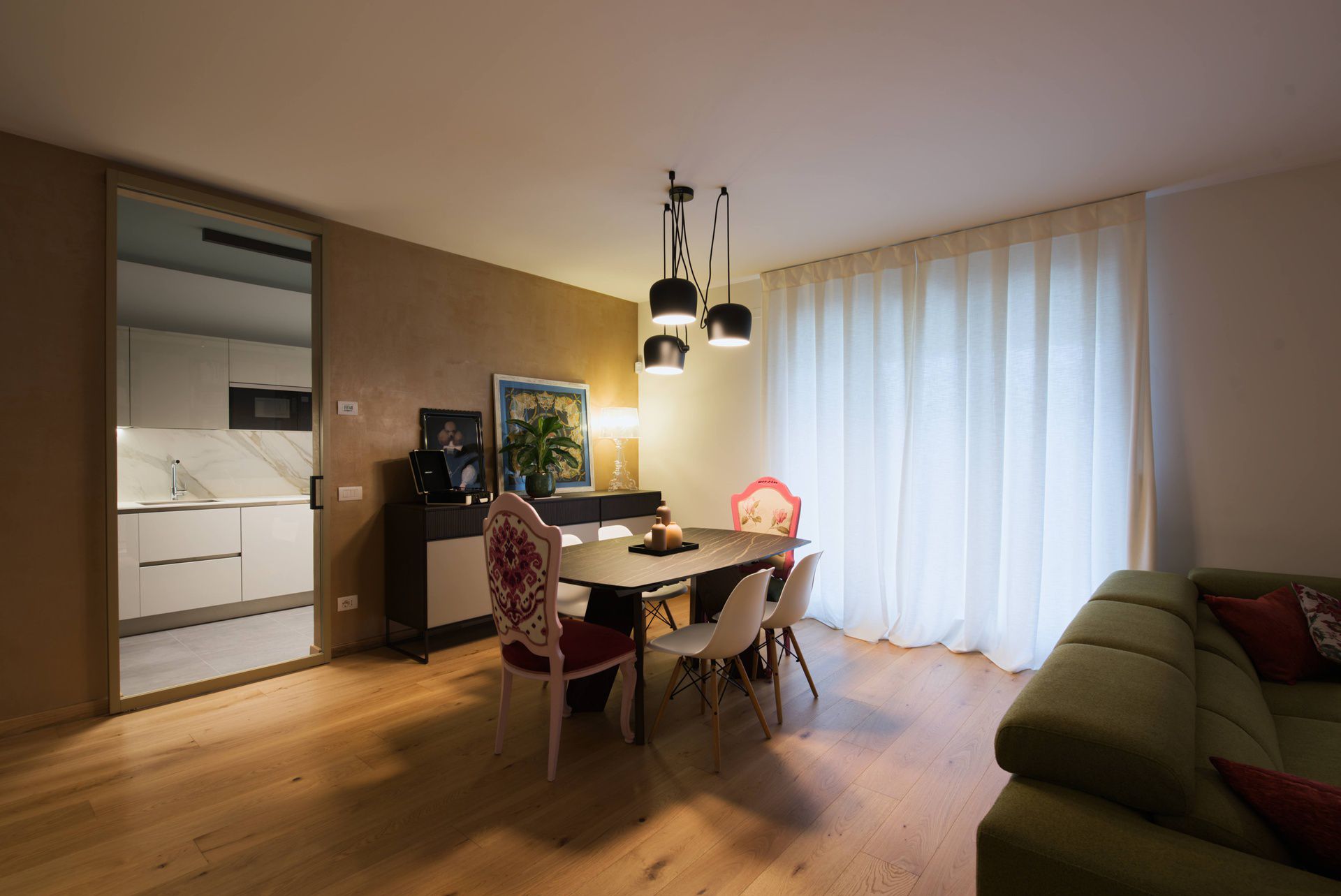 Un intervento di restyling mirato che ridefinisce la zona giorno e i due ambienti bagno per una giovane famiglia. In questo progetto, la collaborazione con la committenza (una designer professionista) si è trasformata in un dialogo creativo volto a dare un’anima scenografica agli spazi. Il focus è stato la contestualizzazione degli ambienti attraverso l'uso audace di superfici testurizzate, boiserie contemporanee che nascondono passaggi segreti e un light design che enfatizza le profondità. Il risultato è un’abitazione dove il rigore geometrico incontra dettagli decorativi eclettici, creando un perfetto equilibrio tra funzionalità ed espressione artistica.