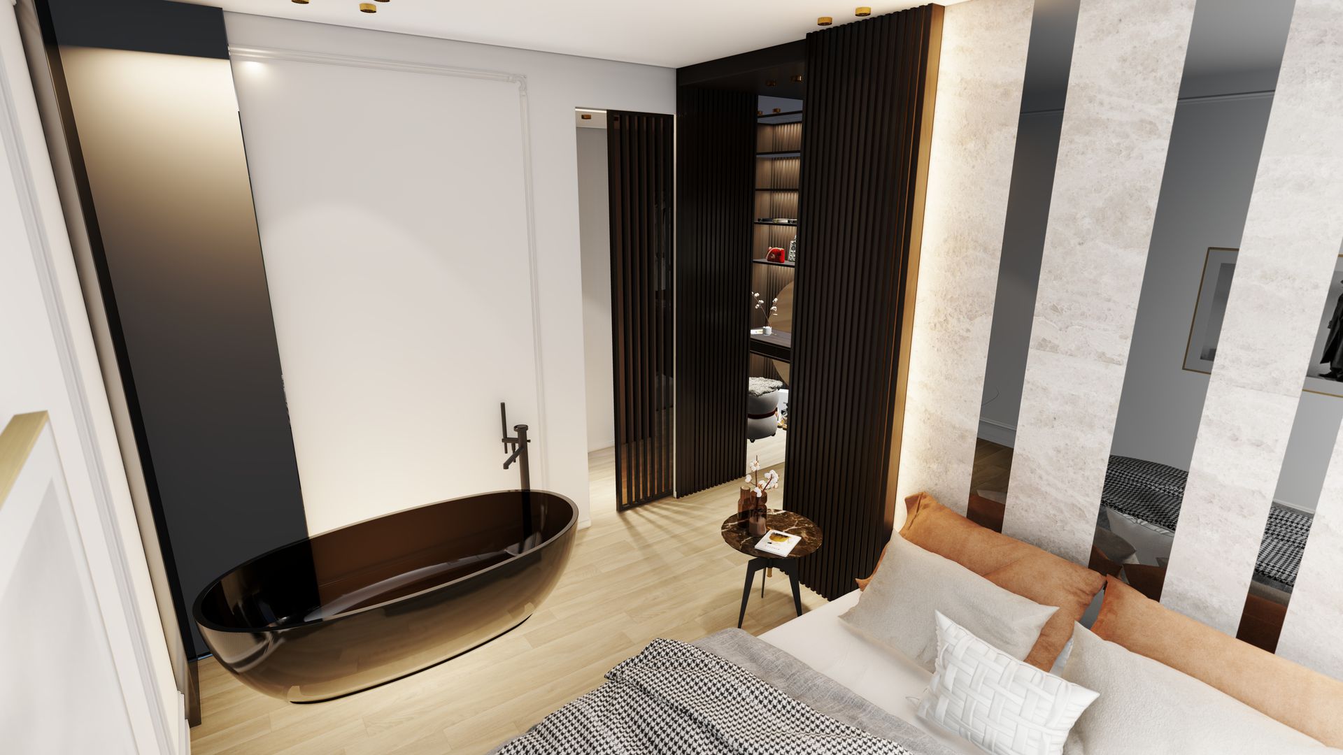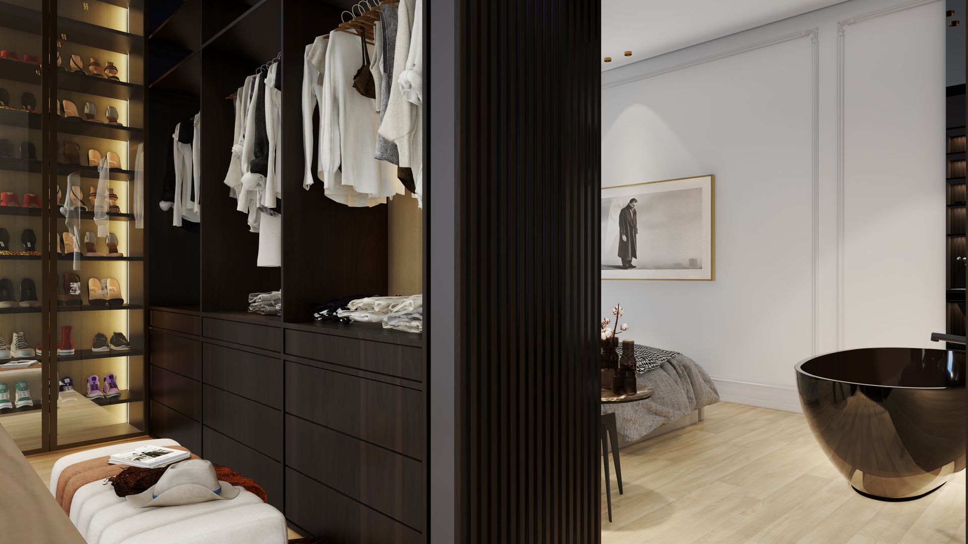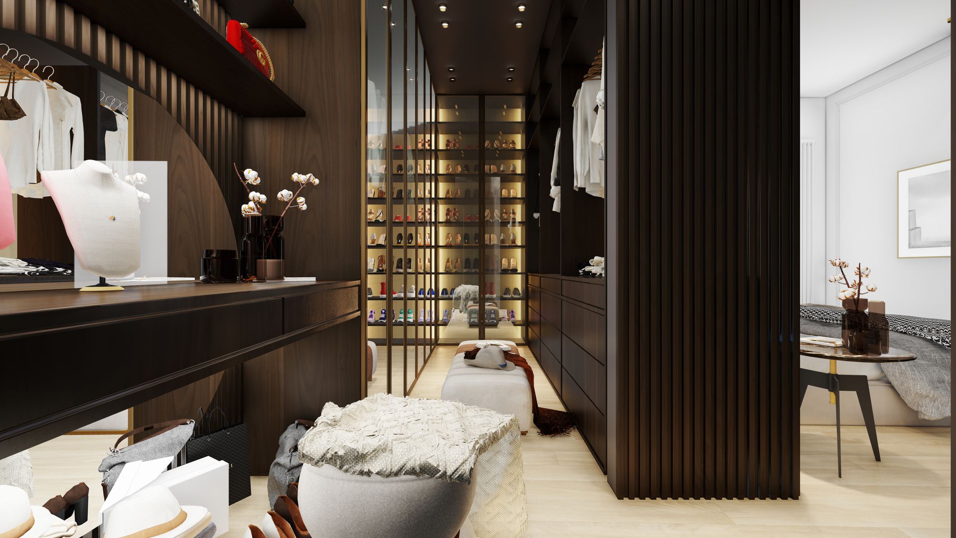 Un progetto raffinato che unisce elementi classici e dettagli moderni, creando ambienti eleganti e accoglienti. Il contrasto tra legni scuri e tonalità chiare dona equilibrio e profondità, mentre arredi su misura e luci integrate valorizzano ogni spazio, rendendolo armonioso e funzionale.