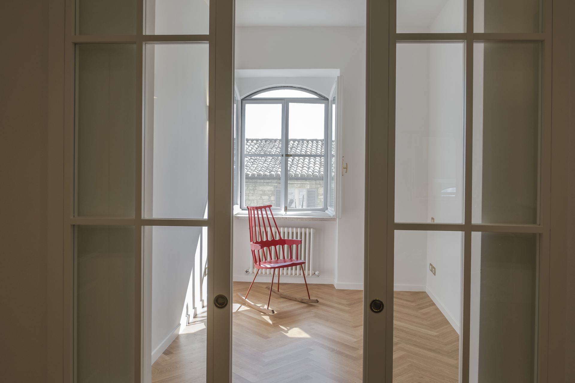 Nel cuore del centro storico di Assisi, a pochi passi da Santa Chiara e all’interno di un palazzo di pregio, prende vita un progetto di ristrutturazione che restituisce all’appartamento il suo autentico carattere di signorile eleganza.L’intervento nasce dall’esigenza di recuperare valore e identità, compromessi da precedenti ristrutturazioni poco attente, attraverso un approccio progettuale rigoroso e sensibile. Ogni scelta è stata guidata da un attento studio della luce, sia naturale che artificiale, elemento chiave in uno spazio caratterizzato da affacci su un unico prospetto. Il risultato è un ambiente equilibrato e luminoso, dove la luce viene accompagnata e diffusa in modo armonico anche nelle zone più interne.Il progetto si esprime attraverso un linguaggio contemporaneo, caldo e raffinato: il parquet in rovere posato a spina italiana definisce l’atmosfera, donando ritmo e matericità agli spazi, mentre le porte aperte e le connessioni visive tra gli ambienti favoriscono una percezione più ampia e fluida della casa.La zona giorno è stata ripensata e ampliata, riducendo l’area studio per ottenere uno spazio più arioso e conviviale. La cucina, progettata e realizzata su misura, si integra perfettamente nell’insieme, con soluzioni funzionali ed estetiche pensate per l’uso quotidiano. La distribuzione interna è stata ulteriormente ottimizzata con la realizzazione di un secondo bagno en suite e la completa ristrutturazione del bagno principale.Un progetto chiavi in mano, seguito in ogni fase fino all’allestimento finale: i clienti ci hanno affidato l’intero processo, riconsegnando l’appartamento solo a lavori conclusi.