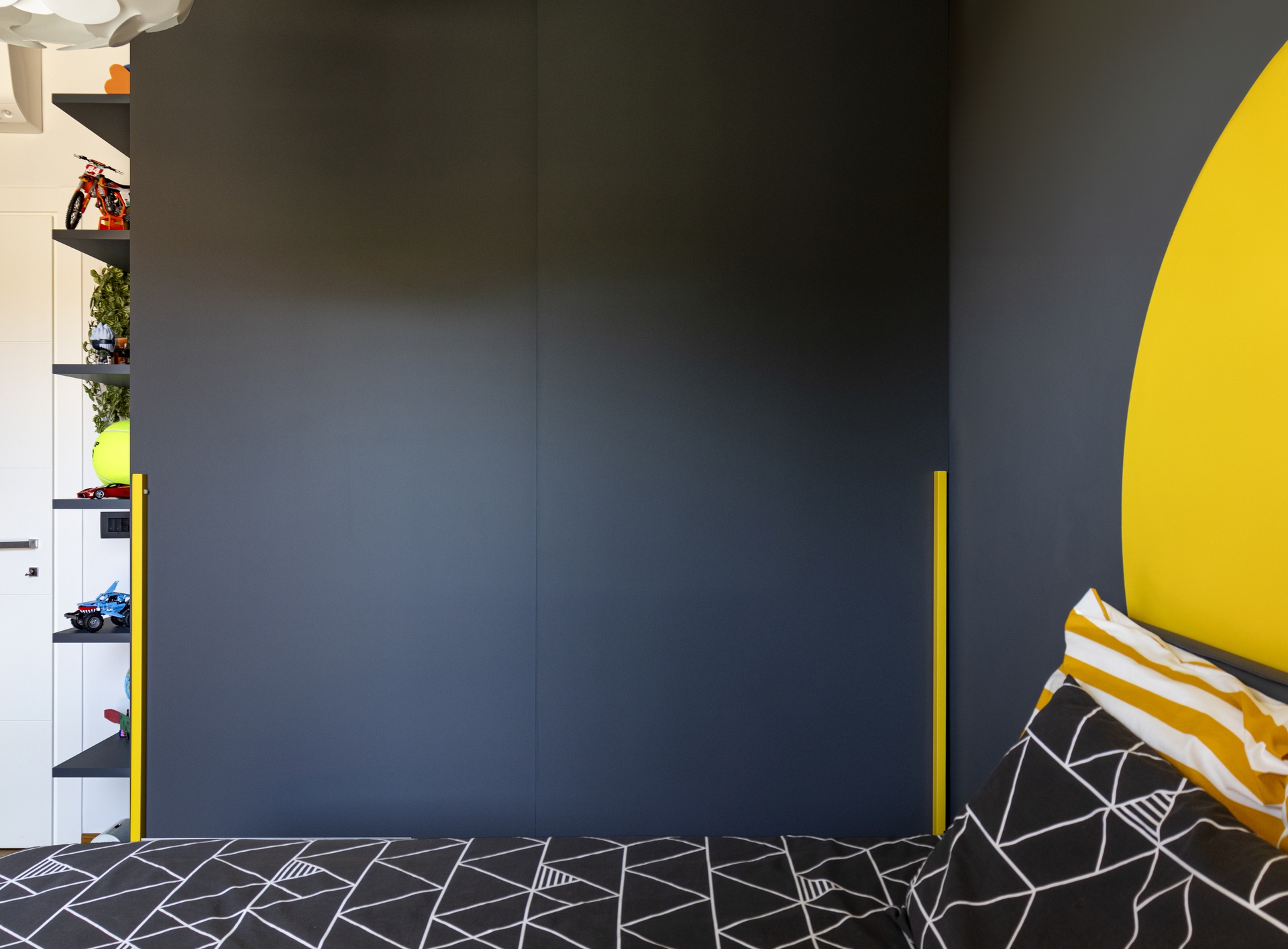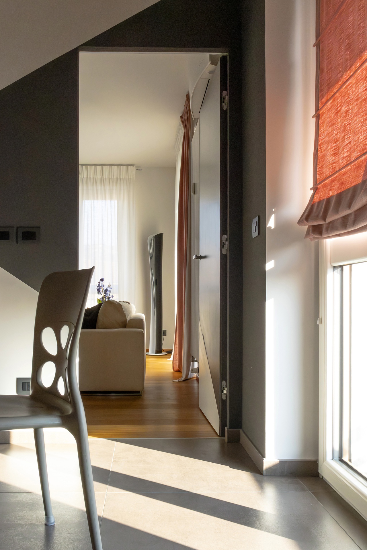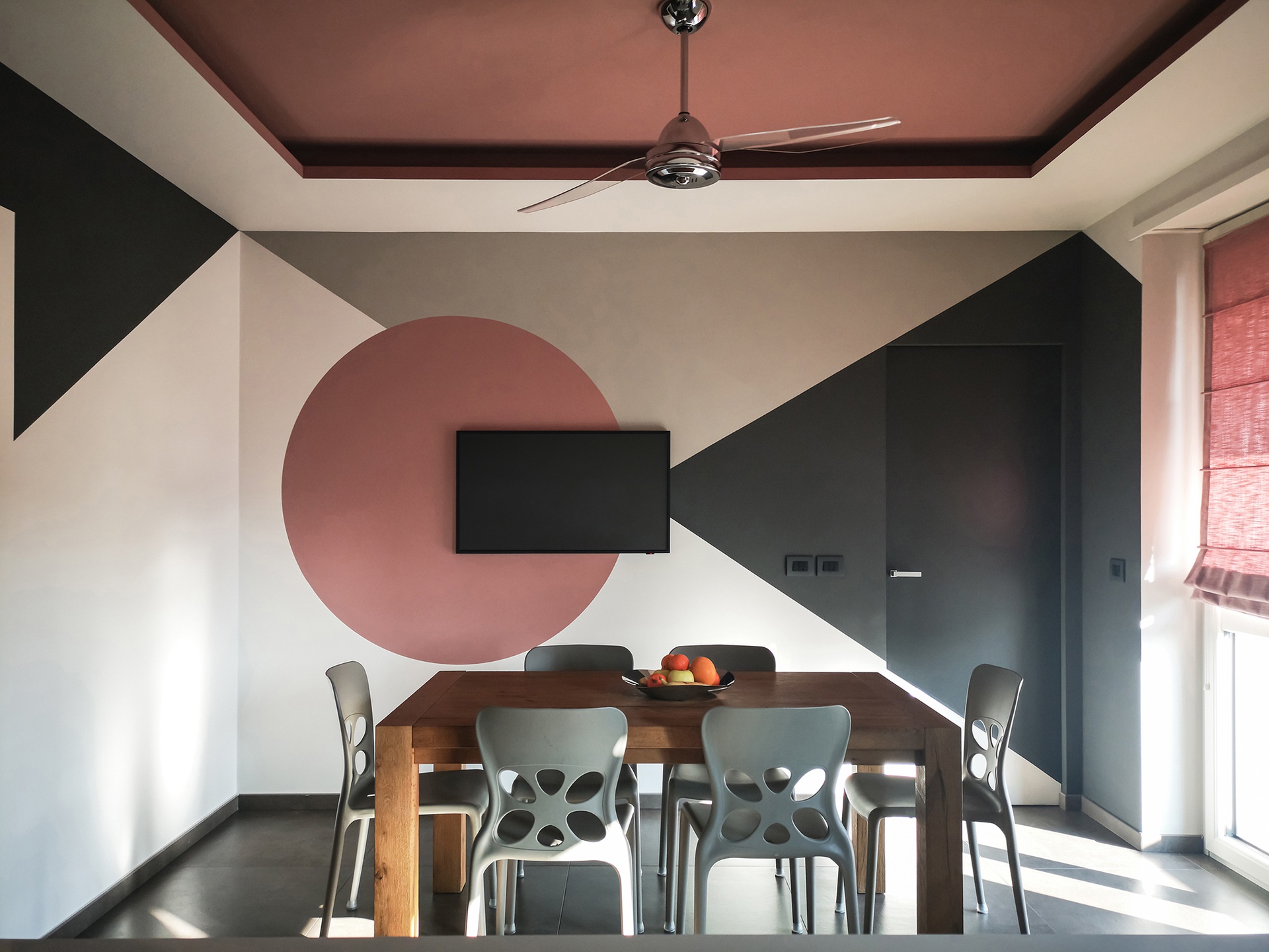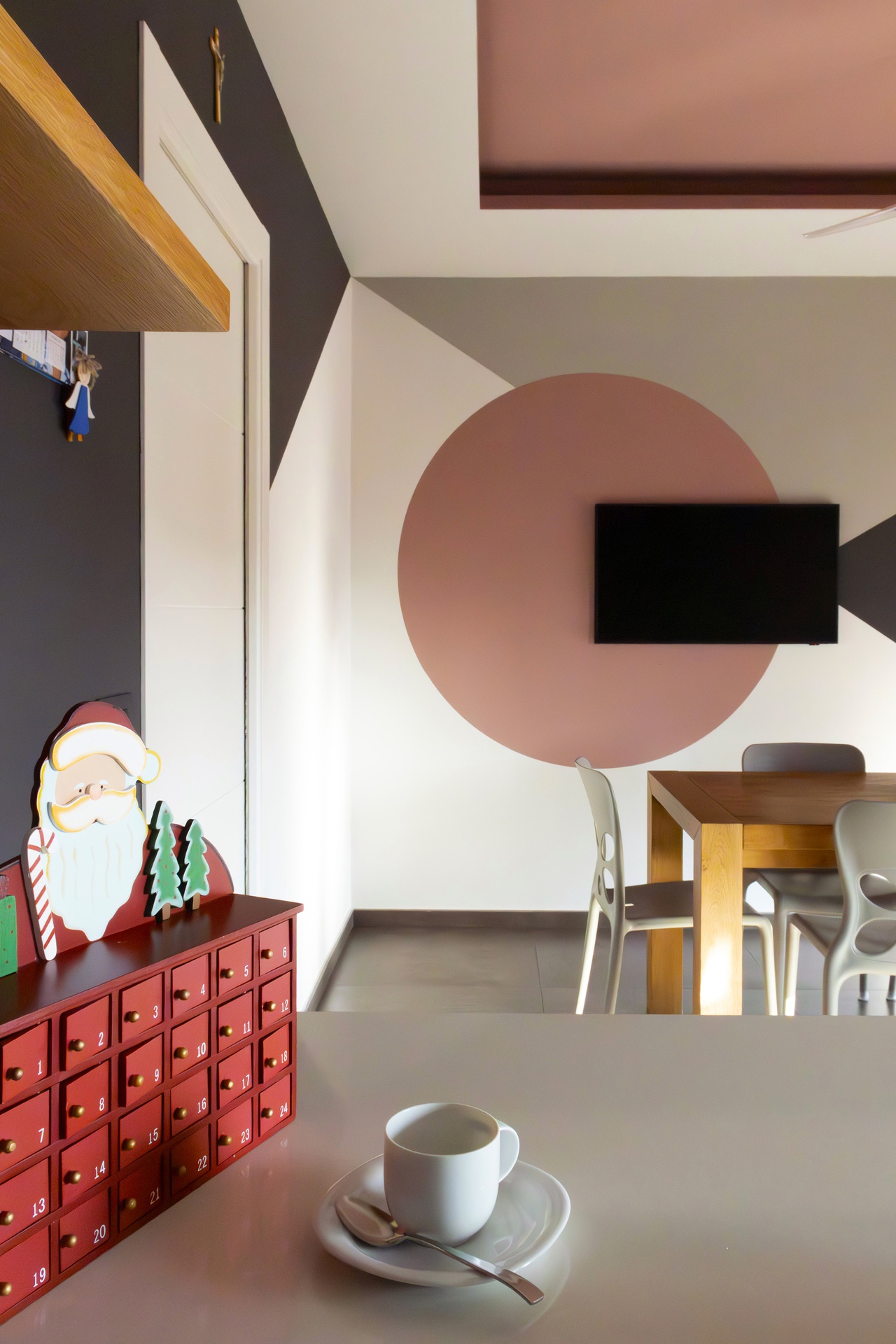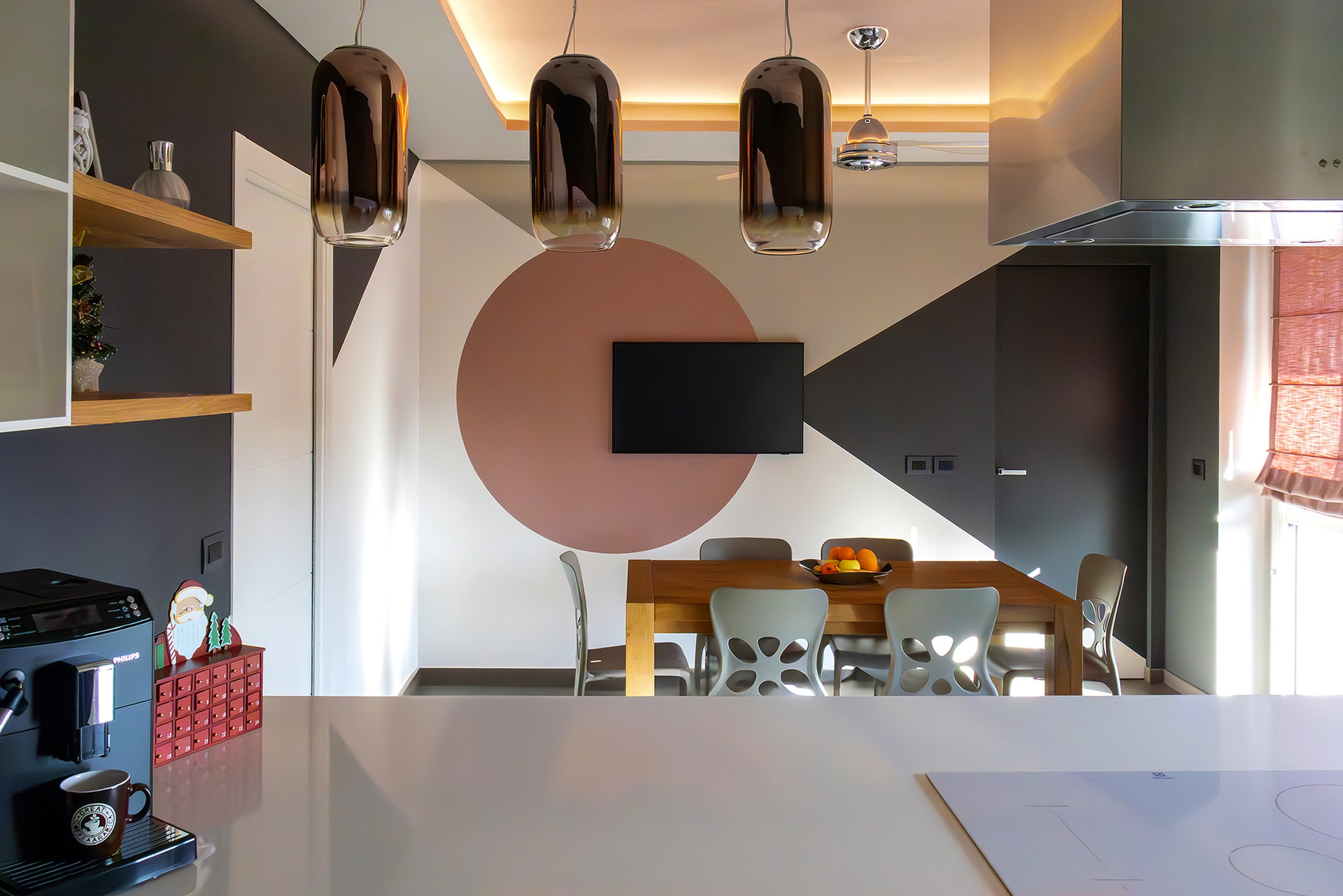 Un Equilibrio tra Forme, Colori e Funzionalità nella Ristrutturazione d’InterniLa ristrutturazione che vi presentiamo è un esempio concreto di come gli spazi abitativi moderni possano trasformarsi radicalmente, mettendo al centro la persona e le sue esigenze quotidiane. Questo progetto nasce dalla volontà di dare nuova vita a un ambiente che, pur tradizionale nelle sue strutture, desiderava un linguaggio contemporaneo, audace e al contempo accogliente.Rinnovare una casa non significa solo cambiare mobili o ridipingere le pareti: è un’opportunità per riscoprire il proprio modo di vivere gli spazi, adattandoli a nuove abitudini, necessità e desideri.Il progetto si sviluppa attorno al bisogno di una giovane famiglia di rendere più accoglienti, pratici e personali alcuni ambienti chiave della propria abitazione — cucina, zona giorno e cameretta — valorizzando senza stravolgere gli elementi esistenti, integrando con cura arredi già presenti come i divani, i tappeti e la consolle all’ingresso, che contribuiscono a mantenere un forte legame con la storia e l’identità della casa.Il concept di base, “Geometrie Familiari”, unisce la precisione delle forme geometriche a un’atmosfera calda e intima, ideale per una casa vissuta e amata. Ogni stanza è stata progettata non solo per rispondere a esigenze funzionali, ma anche per esprimere un’identità estetica forte e riconoscibile.Il progetto si basa su linee pulite e forme essenziali che definiscono gli spazi in modo equilibrato, creando un flusso visivo armonioso tra le diverse aree. L’uso di elementi modulari e il gioco tra linee orizzontali e verticali assicurano flessibilità, perfetta per la vita dinamica di una famiglia moderna.Il colore assume un ruolo centrale: una palette studiata con toni neutri, arricchita da dettagli vivaci — il rosa in cucina e living, il giallo nella cameretta — definisce gli spazi, donando profondità e personalità senza risultare mai stancante alla vista.La scelta dei materiali è studiata per esaltare la tattilità e il comfort: legno, gres porcellanato, metallo e tessuti naturali si combinano per creare un dialogo sensoriale unico, alternando superfici lisce a texture materiche che valorizzano ogni ambiente.L’illuminazione, naturale e artificiale, è progettata per esaltare forme e colori, modulare l’atmosfera e valorizzare i dettagli architettonici, garantendo allo stesso tempo comfort e risparmio energetico.Questa ristrutturazione rappresenta un autentico gesto d’affetto verso la casa e chi la abita, un progetto in cui design, comfort e personalità si fondono in un racconto contemporaneo e distintivo. “Geometrie Familiari” non è solo un nome, ma una filosofia progettuale che si traduce in spazi dove ogni elemento ha una ragion d’essere, contribuendo a creare un ambiente familiare, funzionale e accogliente.