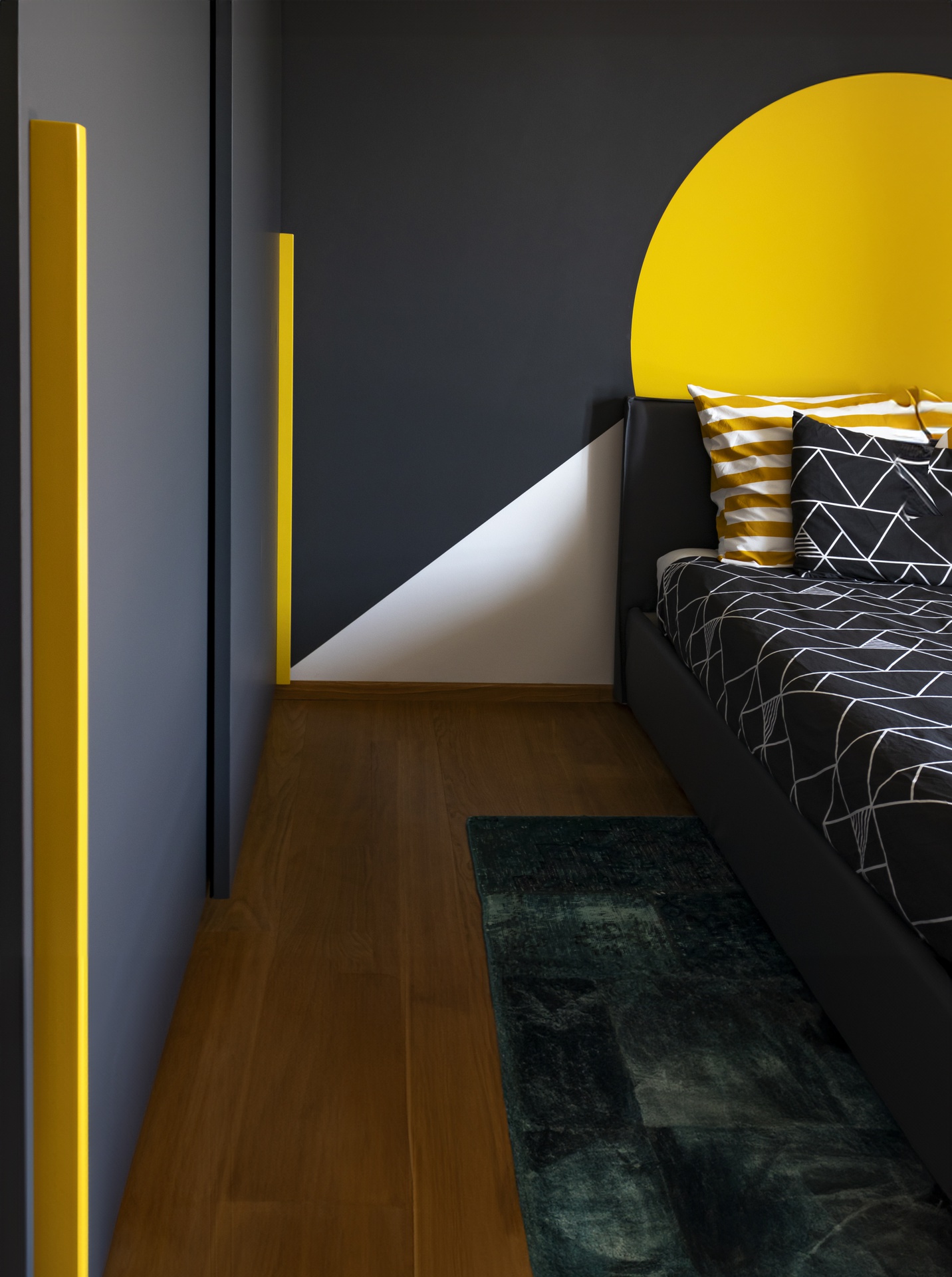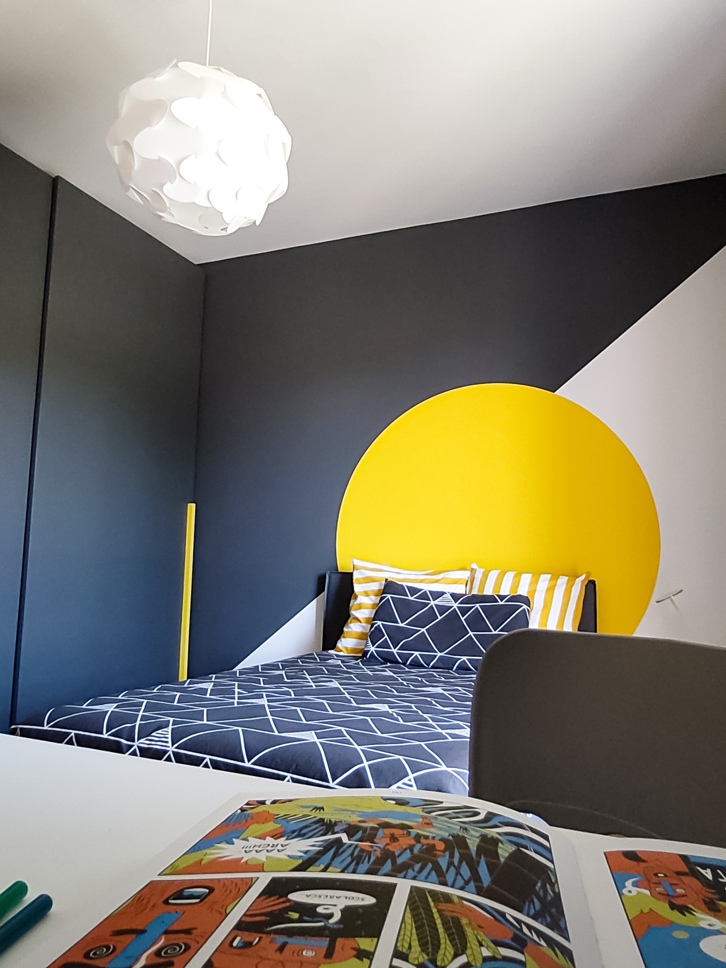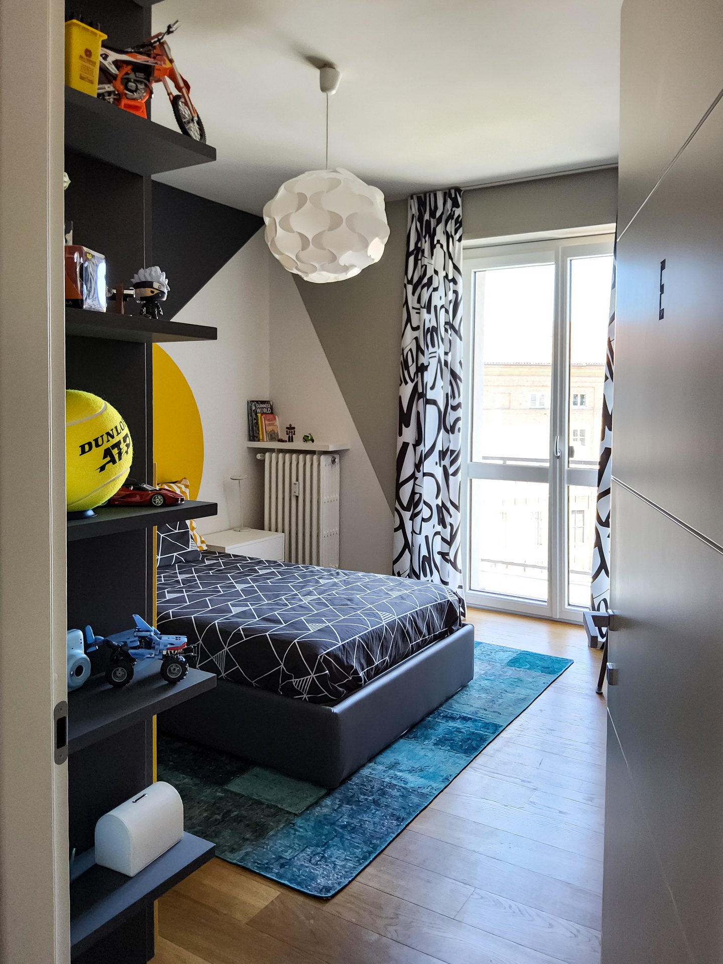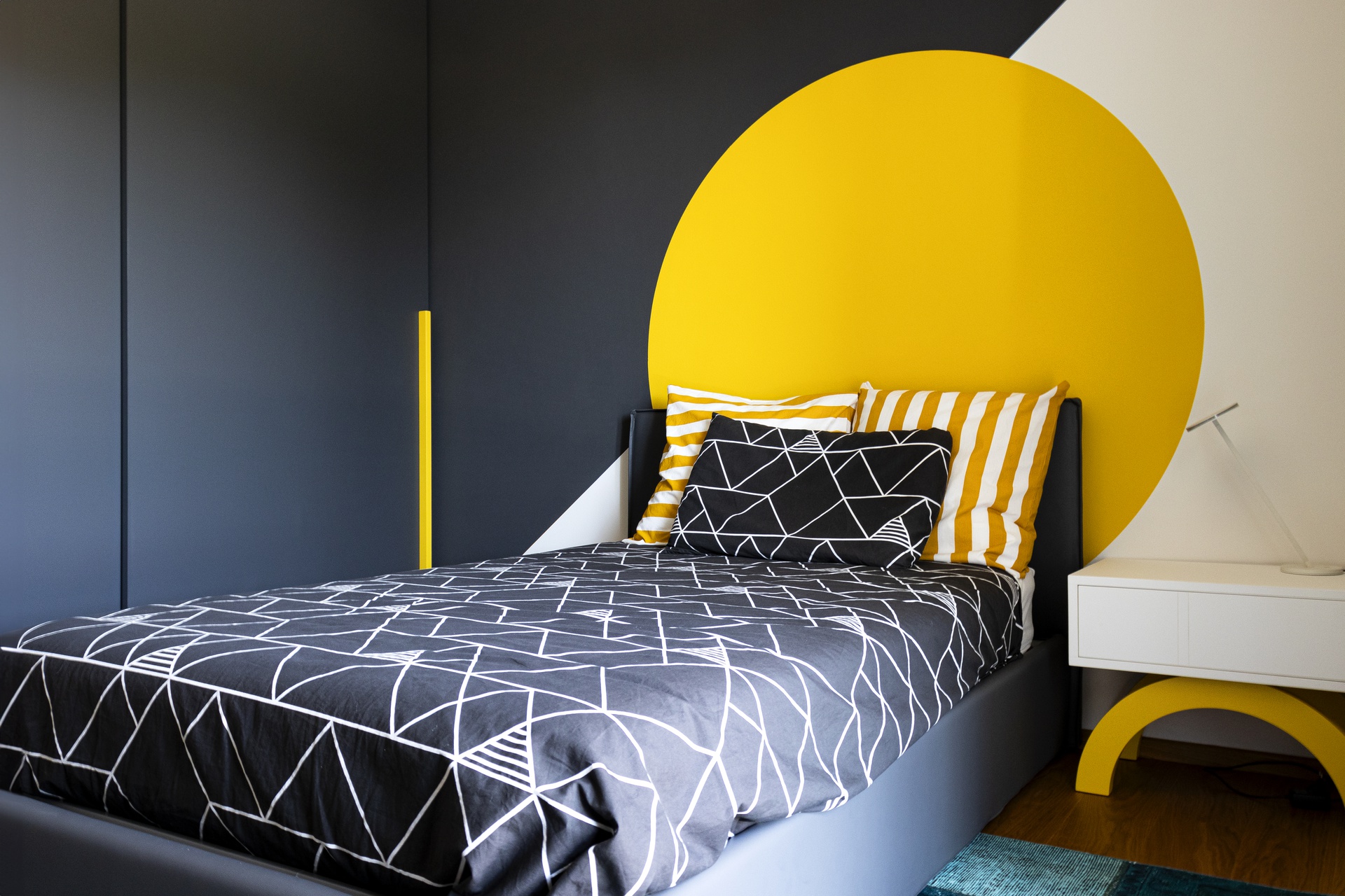 Un Equilibrio tra Forme, Colori e Funzionalità nella Ristrutturazione d’InterniLa ristrutturazione che vi presentiamo è un esempio concreto di come gli spazi abitativi moderni possano trasformarsi radicalmente, mettendo al centro la persona e le sue esigenze quotidiane. Questo progetto nasce dalla volontà di dare nuova vita a un ambiente che, pur tradizionale nelle sue strutture, desiderava un linguaggio contemporaneo, audace e al contempo accogliente.Rinnovare una casa non significa solo cambiare mobili o ridipingere le pareti: è un’opportunità per riscoprire il proprio modo di vivere gli spazi, adattandoli a nuove abitudini, necessità e desideri.Il progetto si sviluppa attorno al bisogno di una giovane famiglia di rendere più accoglienti, pratici e personali alcuni ambienti chiave della propria abitazione — cucina, zona giorno e cameretta — valorizzando senza stravolgere gli elementi esistenti, integrando con cura arredi già presenti come i divani, i tappeti e la consolle all’ingresso, che contribuiscono a mantenere un forte legame con la storia e l’identità della casa.Il concept di base, “Geometrie Familiari”, unisce la precisione delle forme geometriche a un’atmosfera calda e intima, ideale per una casa vissuta e amata. Ogni stanza è stata progettata non solo per rispondere a esigenze funzionali, ma anche per esprimere un’identità estetica forte e riconoscibile.Il progetto si basa su linee pulite e forme essenziali che definiscono gli spazi in modo equilibrato, creando un flusso visivo armonioso tra le diverse aree. L’uso di elementi modulari e il gioco tra linee orizzontali e verticali assicurano flessibilità, perfetta per la vita dinamica di una famiglia moderna.Il colore assume un ruolo centrale: una palette studiata con toni neutri, arricchita da dettagli vivaci — il rosa in cucina e living, il giallo nella cameretta — definisce gli spazi, donando profondità e personalità senza risultare mai stancante alla vista.La scelta dei materiali è studiata per esaltare la tattilità e il comfort: legno, gres porcellanato, metallo e tessuti naturali si combinano per creare un dialogo sensoriale unico, alternando superfici lisce a texture materiche che valorizzano ogni ambiente.L’illuminazione, naturale e artificiale, è progettata per esaltare forme e colori, modulare l’atmosfera e valorizzare i dettagli architettonici, garantendo allo stesso tempo comfort e risparmio energetico.Questa ristrutturazione rappresenta un autentico gesto d’affetto verso la casa e chi la abita, un progetto in cui design, comfort e personalità si fondono in un racconto contemporaneo e distintivo. “Geometrie Familiari” non è solo un nome, ma una filosofia progettuale che si traduce in spazi dove ogni elemento ha una ragion d’essere, contribuendo a creare un ambiente familiare, funzionale e accogliente.