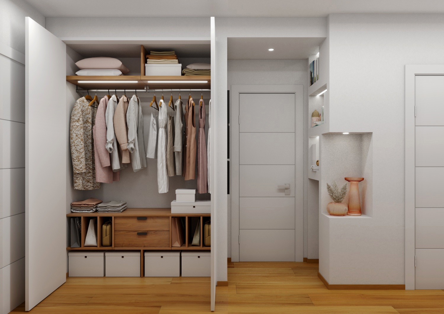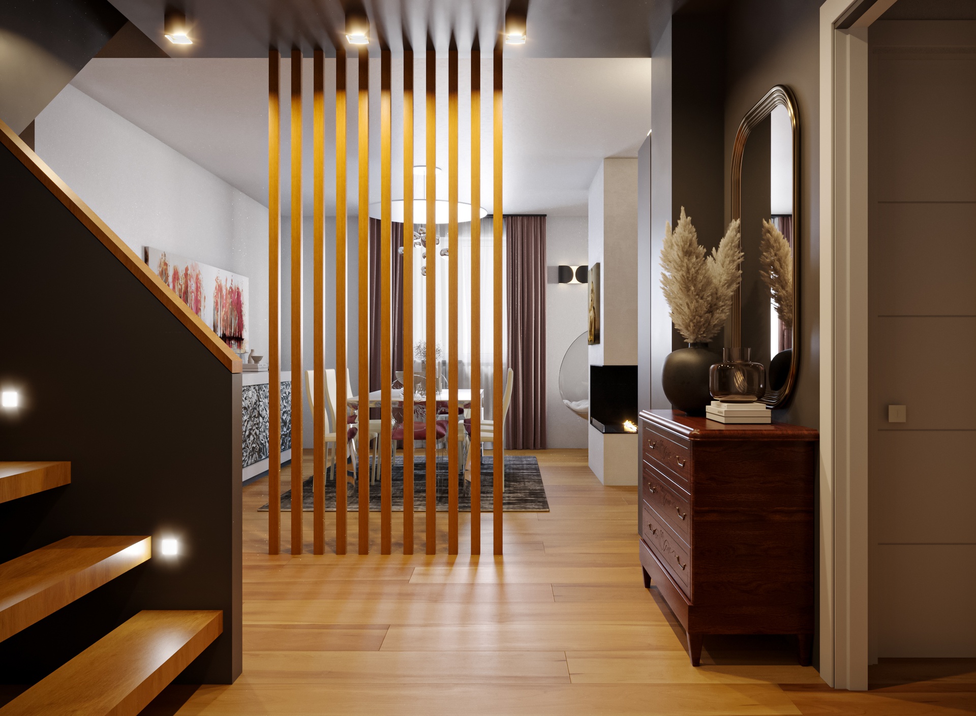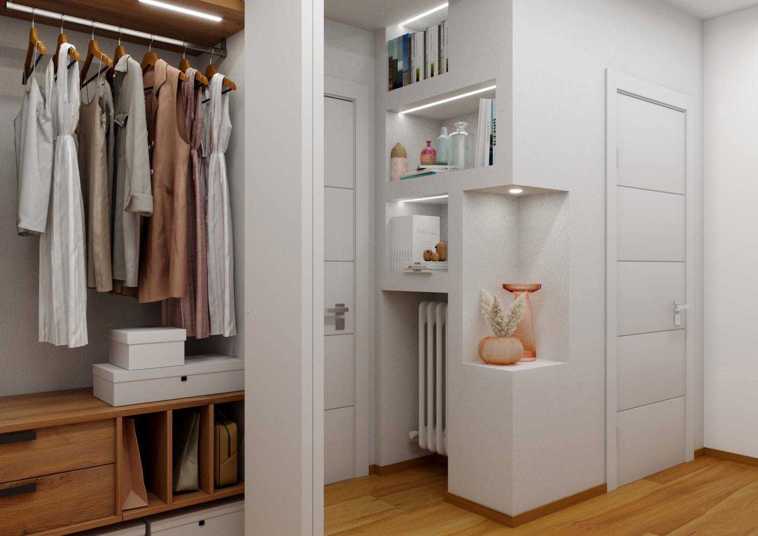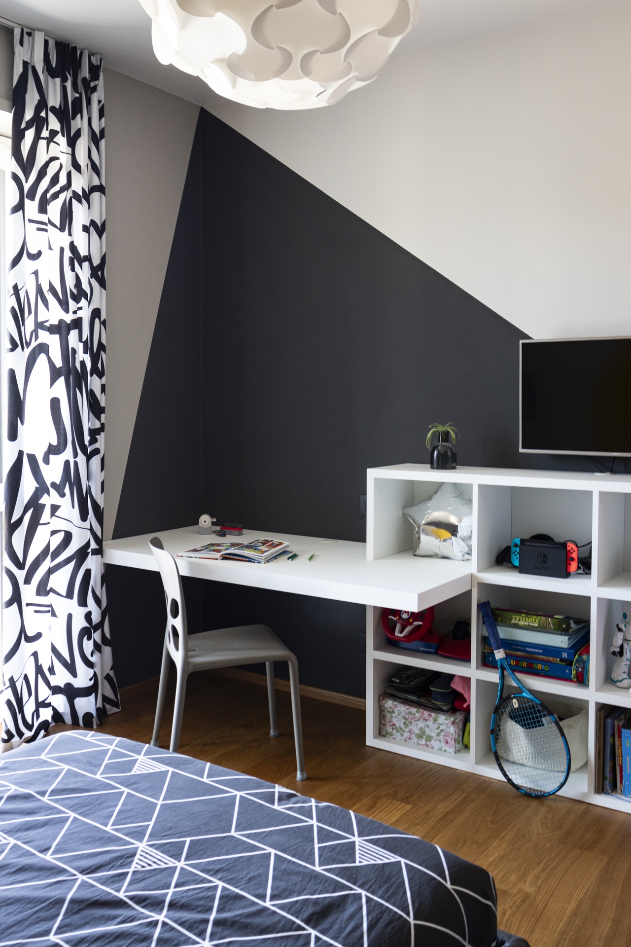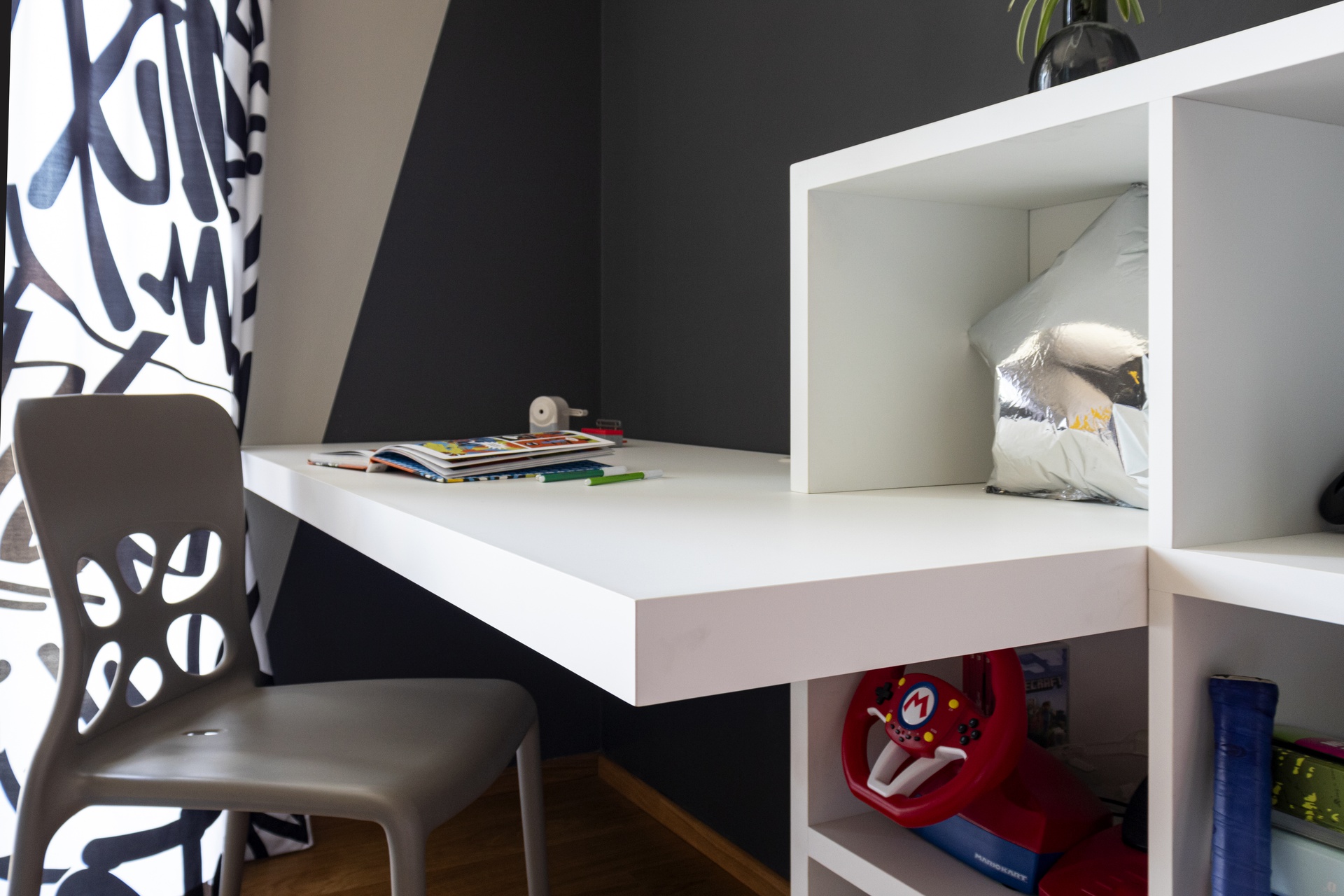 Un Equilibrio tra Forme, Colori e Funzionalità nella Ristrutturazione d’InterniLa ristrutturazione che vi presentiamo è un esempio concreto di come gli spazi abitativi moderni possano trasformarsi radicalmente, mettendo al centro la persona e le sue esigenze quotidiane. Questo progetto nasce dalla volontà di dare nuova vita a un ambiente che, pur tradizionale nelle sue strutture, desiderava un linguaggio contemporaneo, audace e al contempo accogliente.Rinnovare una casa non significa solo cambiare mobili o ridipingere le pareti: è un’opportunità per riscoprire il proprio modo di vivere gli spazi, adattandoli a nuove abitudini, necessità e desideri.Il progetto si sviluppa attorno al bisogno di una giovane famiglia di rendere più accoglienti, pratici e personali alcuni ambienti chiave della propria abitazione — cucina, zona giorno e cameretta — valorizzando senza stravolgere gli elementi esistenti, integrando con cura arredi già presenti come i divani, i tappeti e la consolle all’ingresso, che contribuiscono a mantenere un forte legame con la storia e l’identità della casa.Il concept di base, “Geometrie Familiari”, unisce la precisione delle forme geometriche a un’atmosfera calda e intima, ideale per una casa vissuta e amata. Ogni stanza è stata progettata non solo per rispondere a esigenze funzionali, ma anche per esprimere un’identità estetica forte e riconoscibile.Il progetto si basa su linee pulite e forme essenziali che definiscono gli spazi in modo equilibrato, creando un flusso visivo armonioso tra le diverse aree. L’uso di elementi modulari e il gioco tra linee orizzontali e verticali assicurano flessibilità, perfetta per la vita dinamica di una famiglia moderna.Il colore assume un ruolo centrale: una palette studiata con toni neutri, arricchita da dettagli vivaci — il rosa in cucina e living, il giallo nella cameretta — definisce gli spazi, donando profondità e personalità senza risultare mai stancante alla vista.La scelta dei materiali è studiata per esaltare la tattilità e il comfort: legno, gres porcellanato, metallo e tessuti naturali si combinano per creare un dialogo sensoriale unico, alternando superfici lisce a texture materiche che valorizzano ogni ambiente.L’illuminazione, naturale e artificiale, è progettata per esaltare forme e colori, modulare l’atmosfera e valorizzare i dettagli architettonici, garantendo allo stesso tempo comfort e risparmio energetico.Questa ristrutturazione rappresenta un autentico gesto d’affetto verso la casa e chi la abita, un progetto in cui design, comfort e personalità si fondono in un racconto contemporaneo e distintivo. “Geometrie Familiari” non è solo un nome, ma una filosofia progettuale che si traduce in spazi dove ogni elemento ha una ragion d’essere, contribuendo a creare un ambiente familiare, funzionale e accogliente.