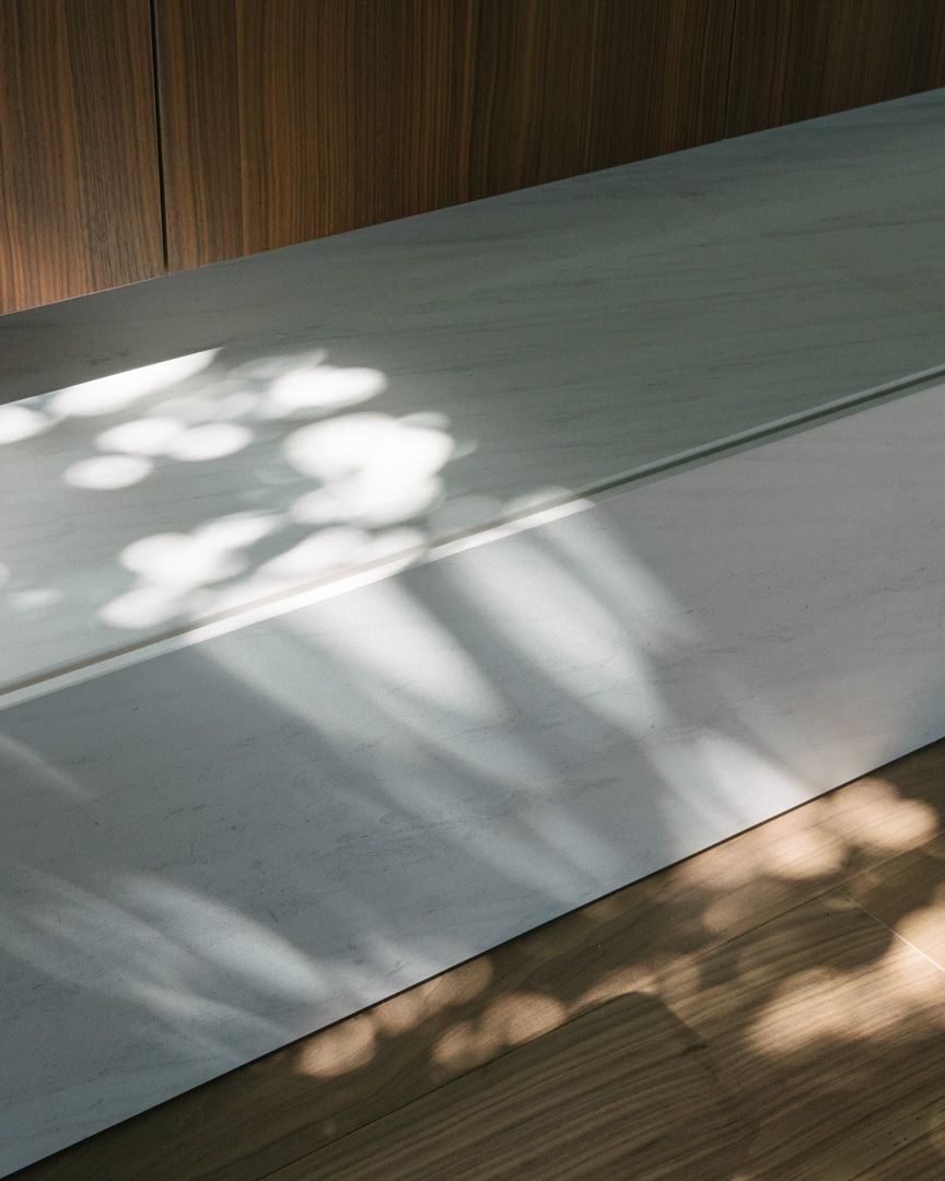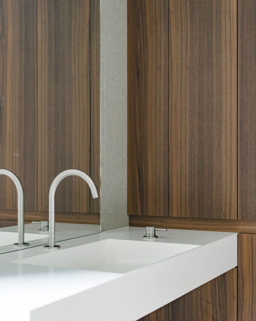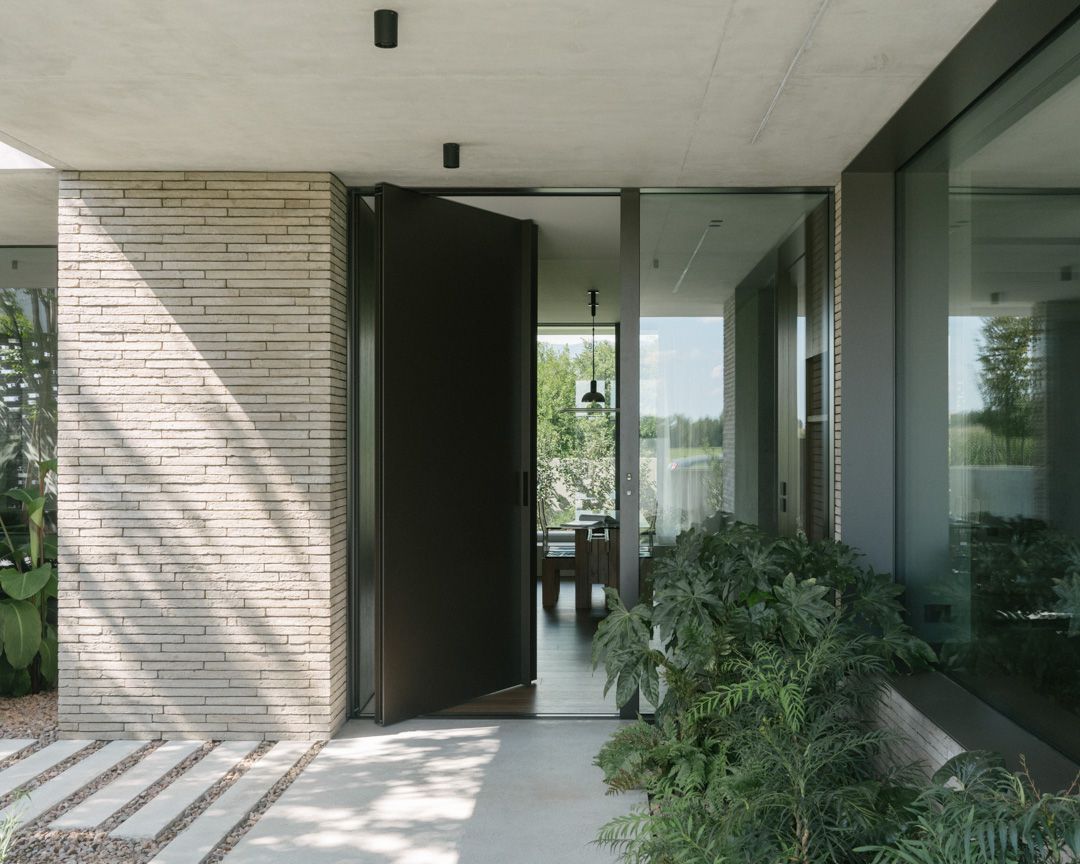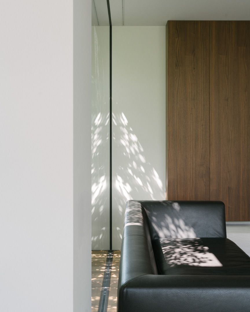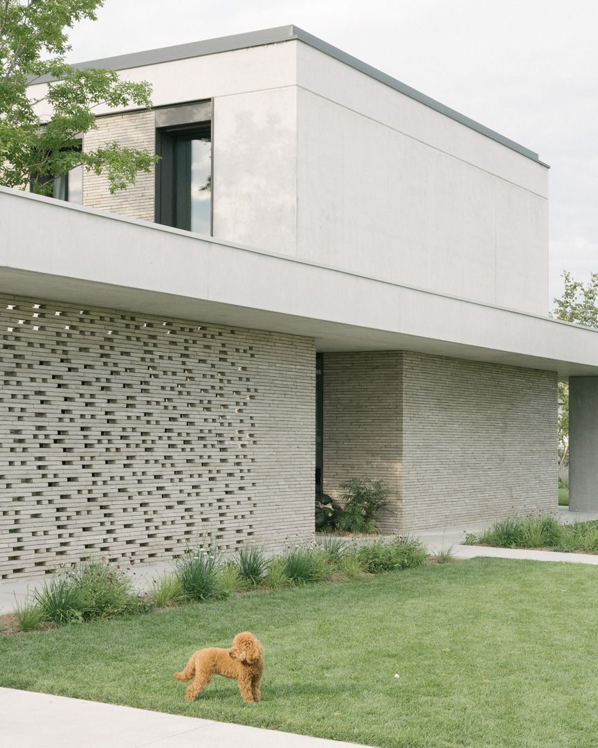 Progetto per una nuova abitazione in un quartiere residenziale nei pressi di Bassano del Grappa. L’edificio è composto da una grande “piastra” che racchiude gli spazi interni e li protegge dagli sguardi con l’utilizzo di patii verdi e membrane più o meno permeabili in laterizio. Al di sopra di essa vi sono due volumi che completano la parte sommitale dell’edificio, quello più grande contiene la zona notte, mentre quello più piccolo cinge una terrazza solarium raggiungibile dalla zona notte.I materiali utilizzati nel progetto sono pochi ma importanti. I corpi principali della casa sono in calcestruzzo grigio liscio. A piano terra, tra gli appoggi, i muri appaiono in mattoni chiari di grande formato, posati quasi a secco e sono interrotti dai fori contornati da imbotti metallici color brun. I serramenti sono stati disegnati per mostrare solo il vetro nelle parti fisse, e lasciare la lettura solo delle porzioni apribili. A piano primo, nei lati est e ovest, viene ripresa questa alternanza di materiali tra le finestre delle camere.Internamente viene ripreso il calcestruzzo nel muro “sospeso” della scala, questa volta però declinato con una finitura levigata, che lascai affiorare delicatamente gli inerti. I pavimenti in noce si legano con ampie boiserie e porte scorrevoli che contrastano con le superfici grigio chiaro delle pareti.In tutto il progetto, vi è la volontà di intravedere oltre l’ambiente stesso in cui si è. Percorrendo gli ambienti si percepisce un tema di transizioni tra gli spazi, come quando dalla cucina si può intravedere il patio a nord, oltrepassando con lo sguardo il soggiorno, o come quando dal portico a est si può vedere il patio centrale della casa passando con la vista dalla cucina.I due patii verdi fungono da macchina di controllo della luce, e portano all’interno degli ambienti una luce calma e controllata, oltre che dare un senso di protezioni visiva senza rinunciare alle ampie vetrate e consolidando il rapporto con il verde.