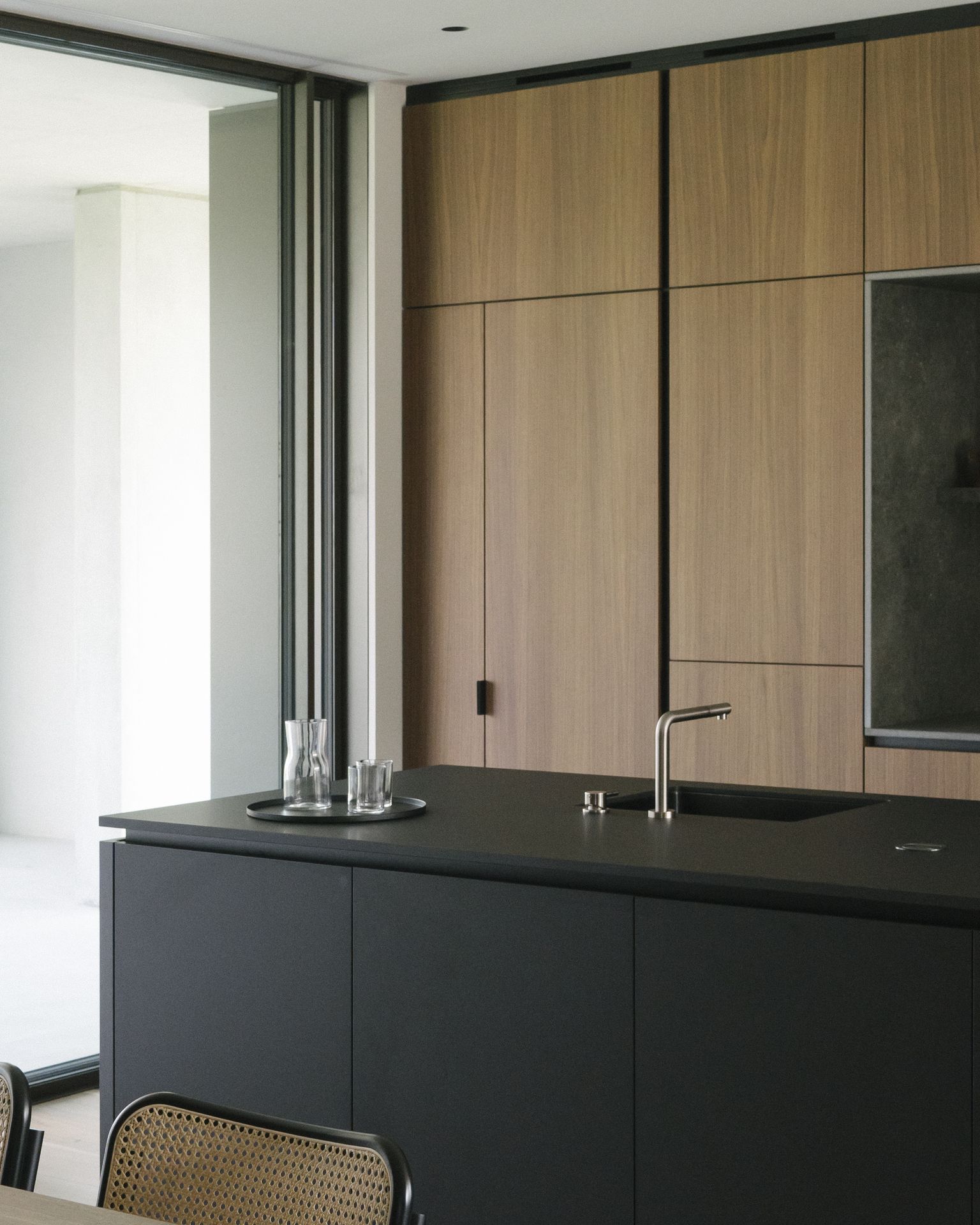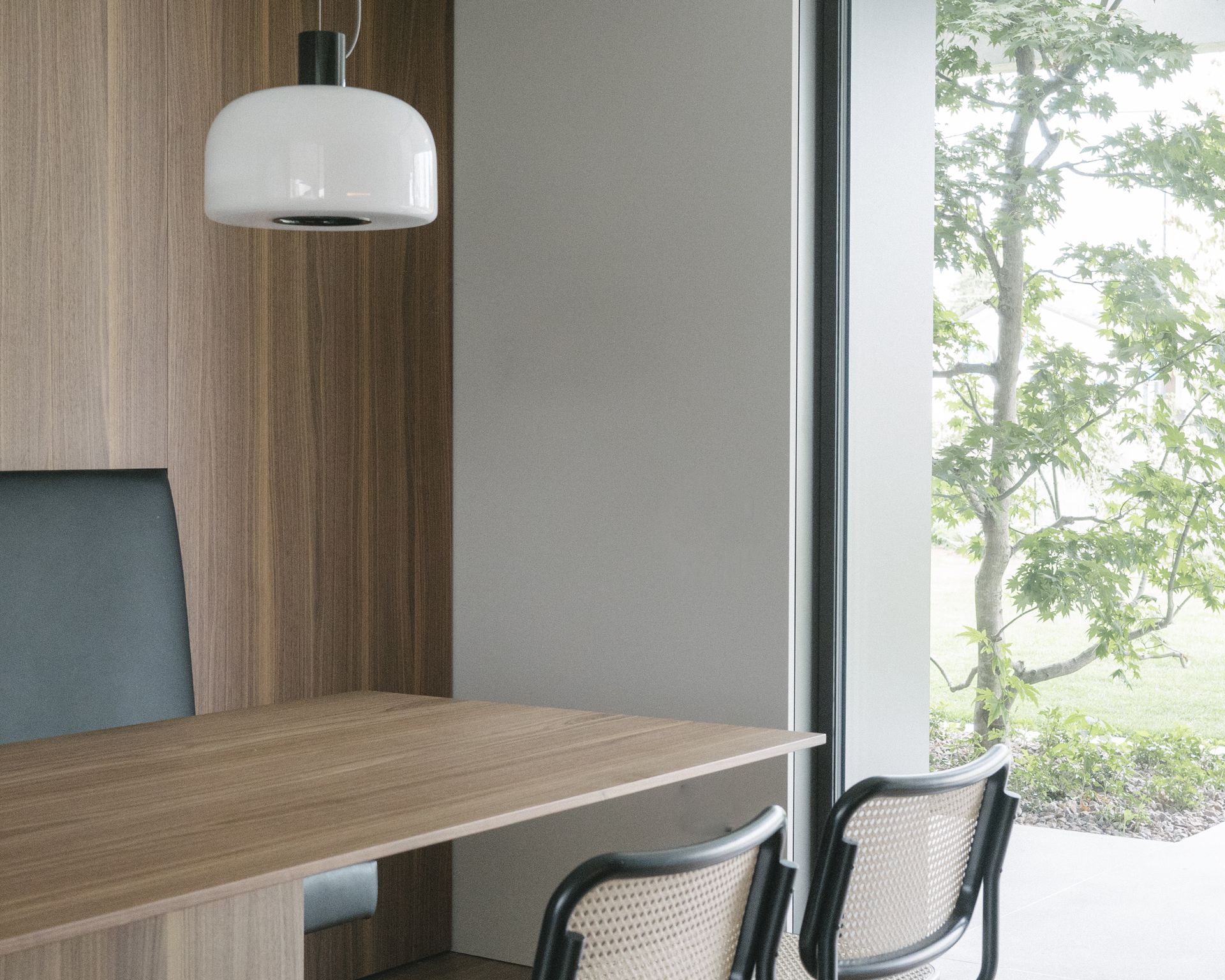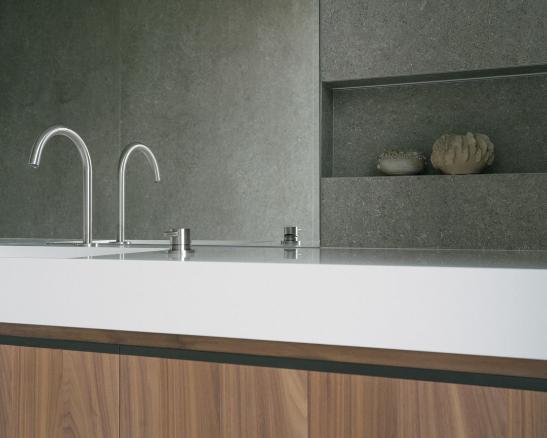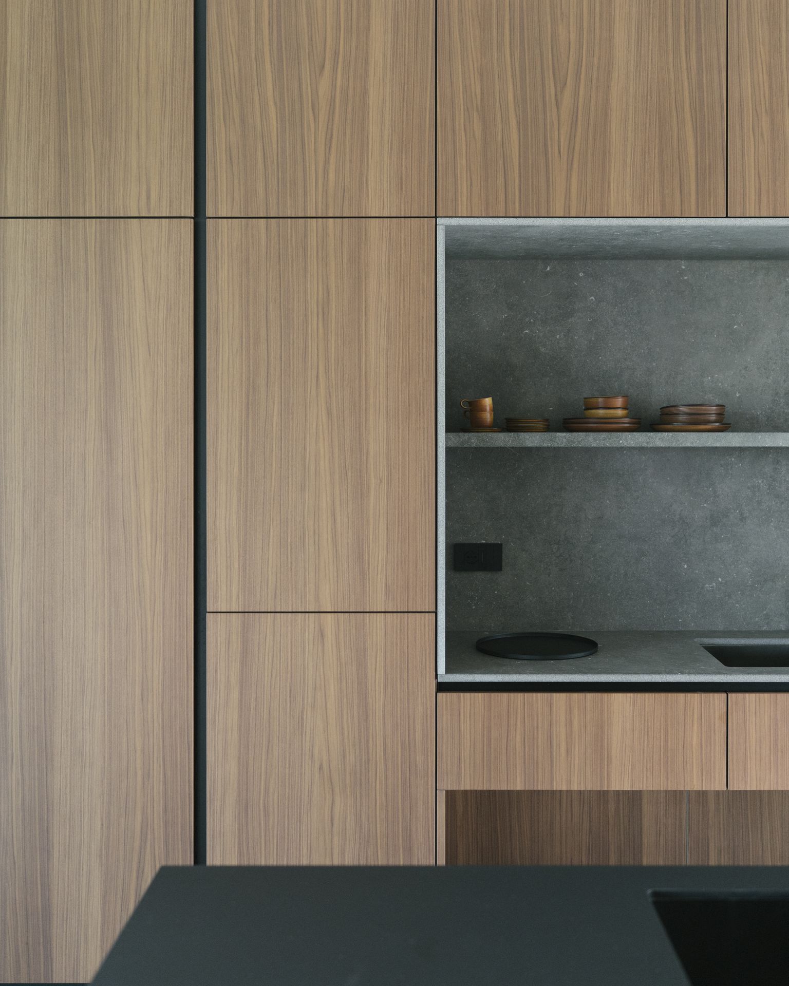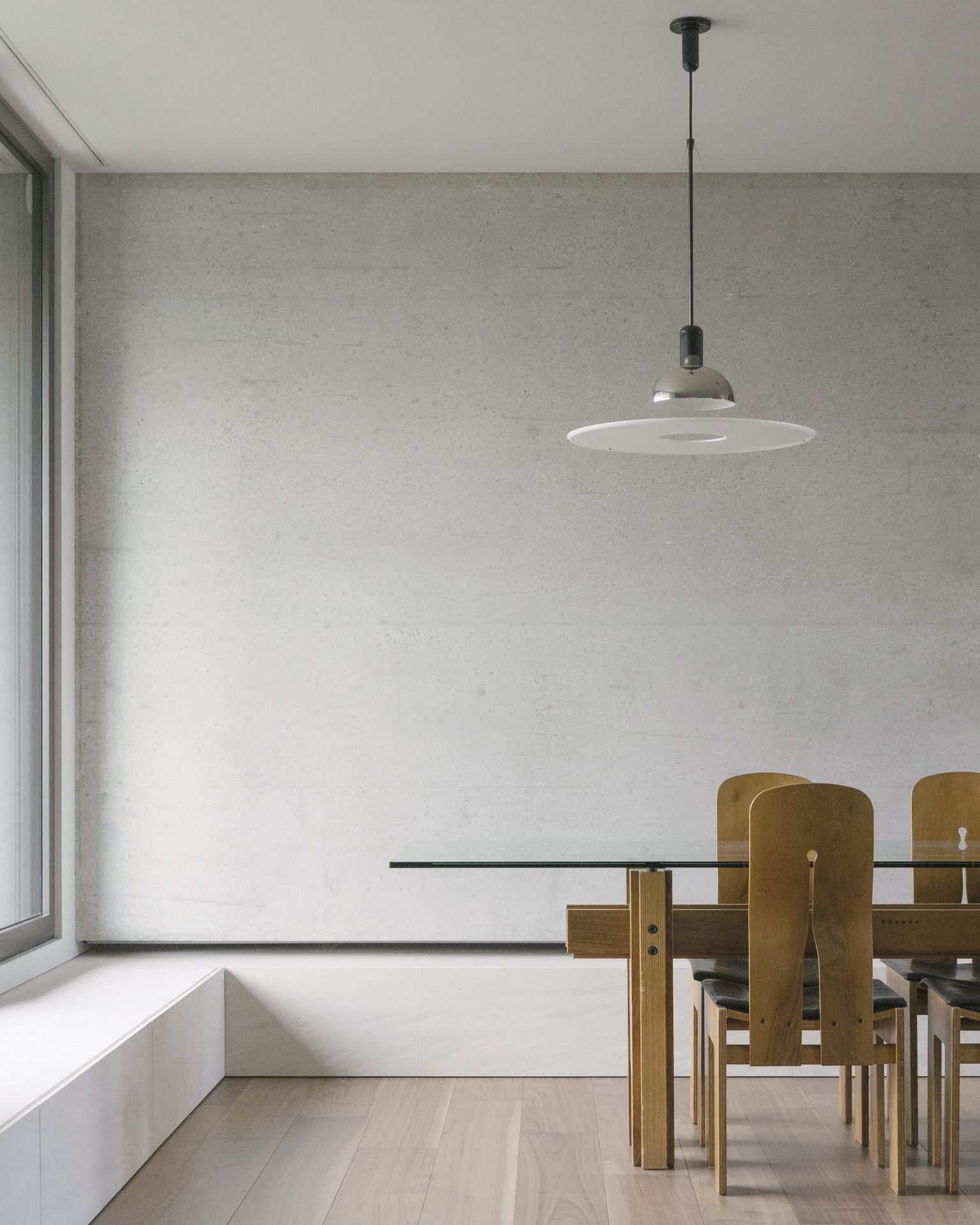 Progetto per una nuova abitazione in un quartiere residenziale nei pressi di Bassano del Grappa. L’edificio è composto da una grande “piastra” che racchiude gli spazi interni e li protegge dagli sguardi con l’utilizzo di patii verdi e membrane più o meno permeabili in laterizio. Al di sopra di essa vi sono due volumi che completano la parte sommitale dell’edificio, quello più grande contiene la zona notte, mentre quello più piccolo cinge una terrazza solarium raggiungibile dalla zona notte.I materiali utilizzati nel progetto sono pochi ma importanti. I corpi principali della casa sono in calcestruzzo grigio liscio. A piano terra, tra gli appoggi, i muri appaiono in mattoni chiari di grande formato, posati quasi a secco e sono interrotti dai fori contornati da imbotti metallici color brun. I serramenti sono stati disegnati per mostrare solo il vetro nelle parti fisse, e lasciare la lettura solo delle porzioni apribili. A piano primo, nei lati est e ovest, viene ripresa questa alternanza di materiali tra le finestre delle camere.Internamente viene ripreso il calcestruzzo nel muro “sospeso” della scala, questa volta però declinato con una finitura levigata, che lascai affiorare delicatamente gli inerti. I pavimenti in noce si legano con ampie boiserie e porte scorrevoli che contrastano con le superfici grigio chiaro delle pareti.In tutto il progetto, vi è la volontà di intravedere oltre l’ambiente stesso in cui si è. Percorrendo gli ambienti si percepisce un tema di transizioni tra gli spazi, come quando dalla cucina si può intravedere il patio a nord, oltrepassando con lo sguardo il soggiorno, o come quando dal portico a est si può vedere il patio centrale della casa passando con la vista dalla cucina.I due patii verdi fungono da macchina di controllo della luce, e portano all’interno degli ambienti una luce calma e controllata, oltre che dare un senso di protezioni visiva senza rinunciare alle ampie vetrate e consolidando il rapporto con il verde.