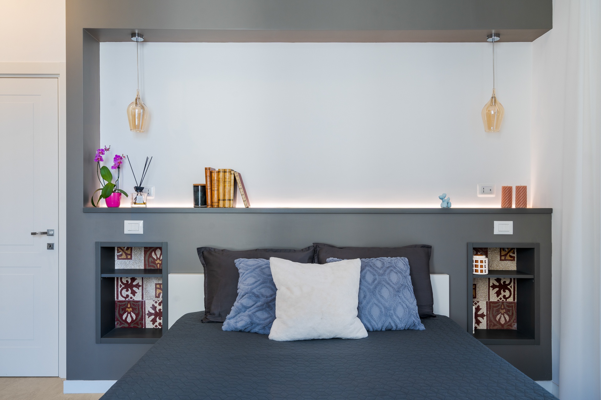 House QG, un appartamento di circa 75 mq in cui il colore verde delinea la profondità e l'altezza degli ambienti generando prospettive che bene armonizzano le dimensioni dello spazio. Lo stile moderno visibile negli arredi e nei pavimenti si fonde con quello vintage delle cementine già presenti prima della ristrutturazione poi riutilizzate come decori in soggiorno, cucina e camera da letto. Tutti gli arredi sono stati realizzati su misura su disegno originale per sfruttare tutto lo spazio a disposizione.