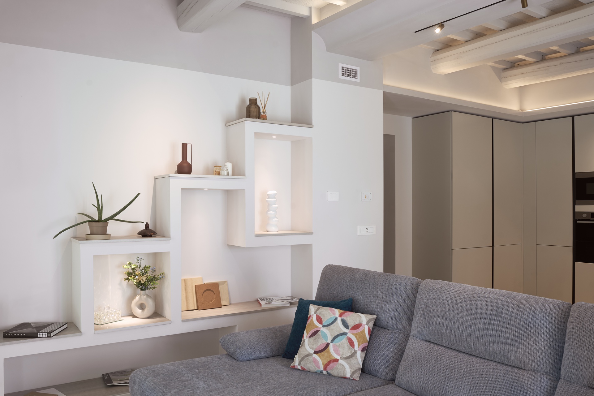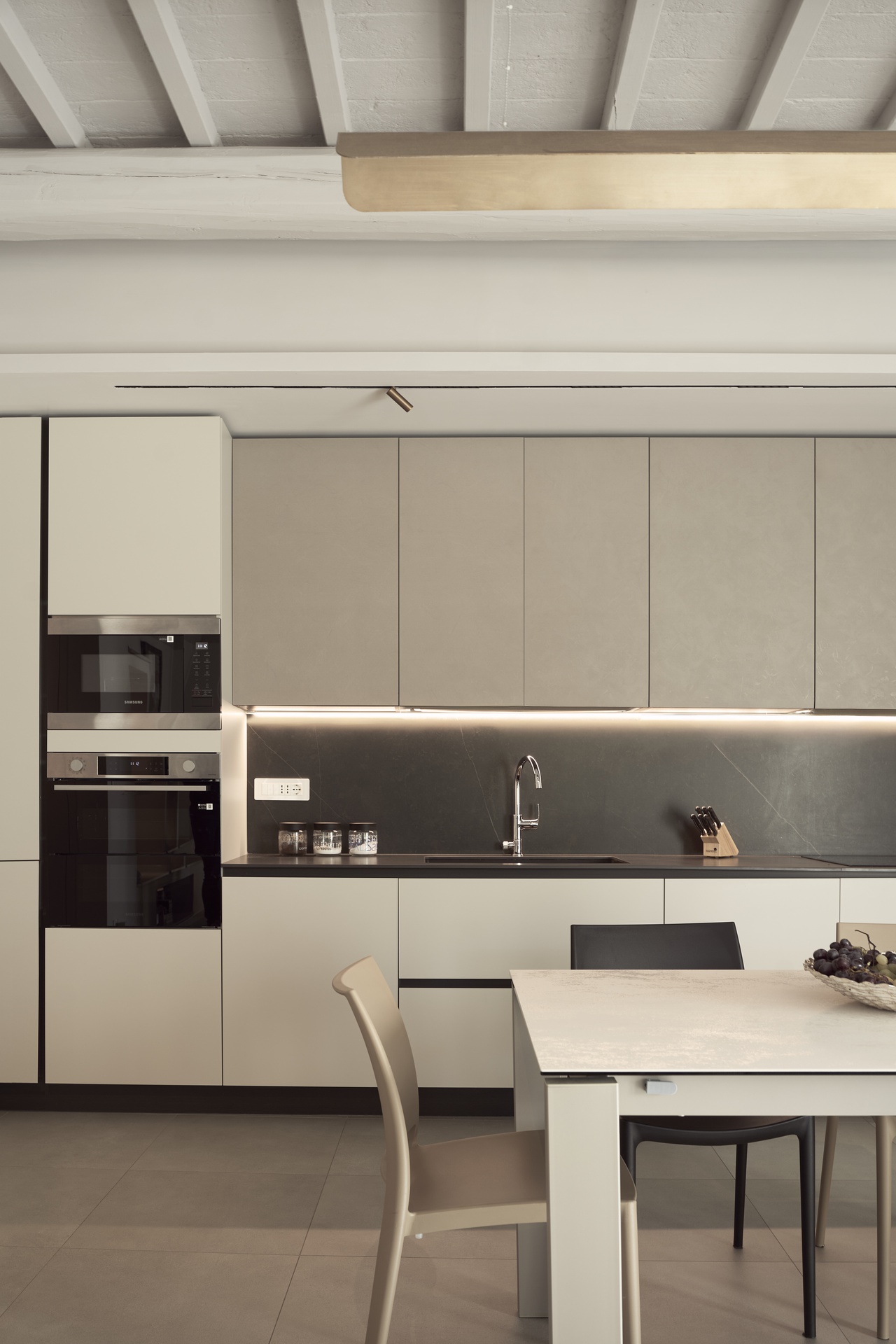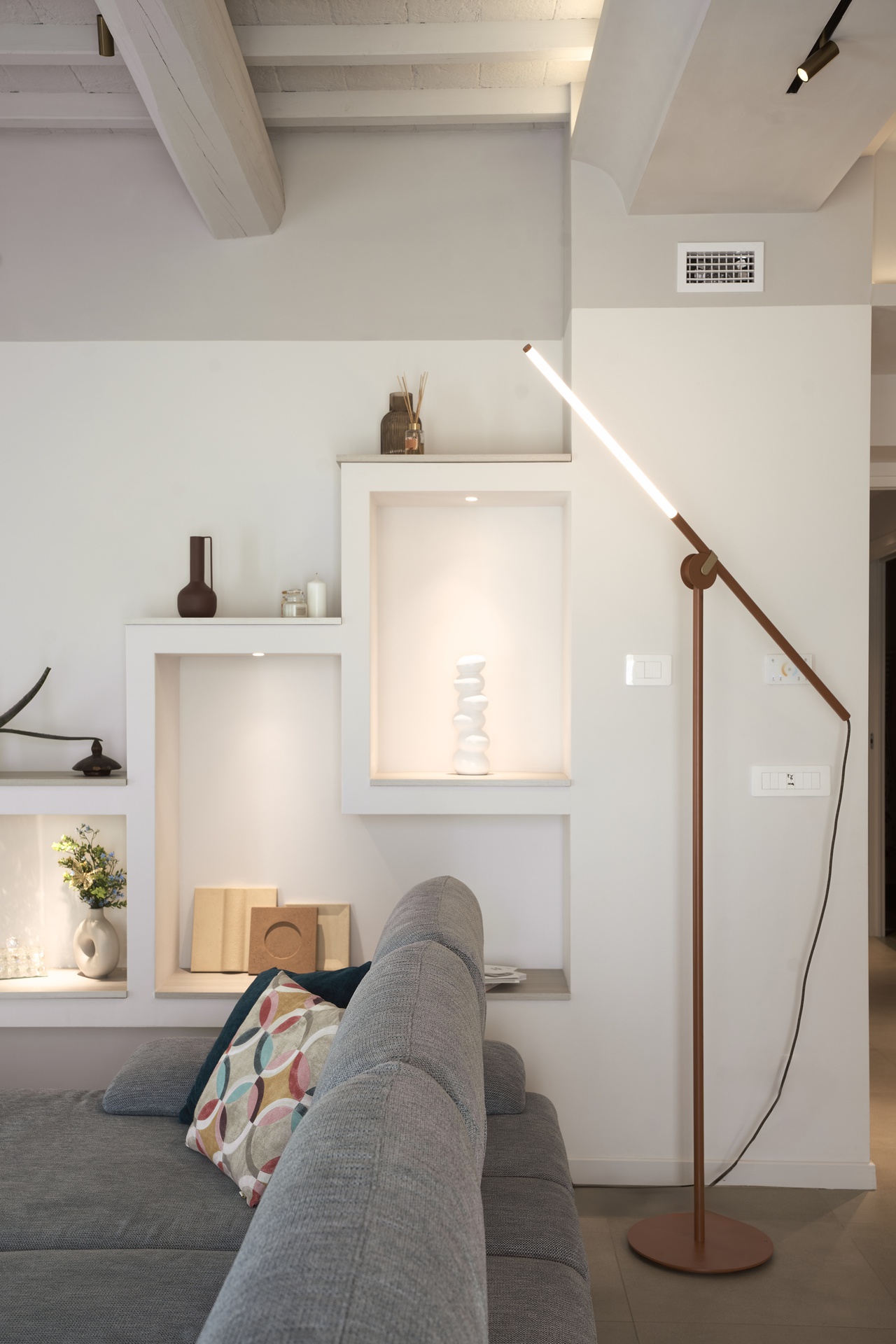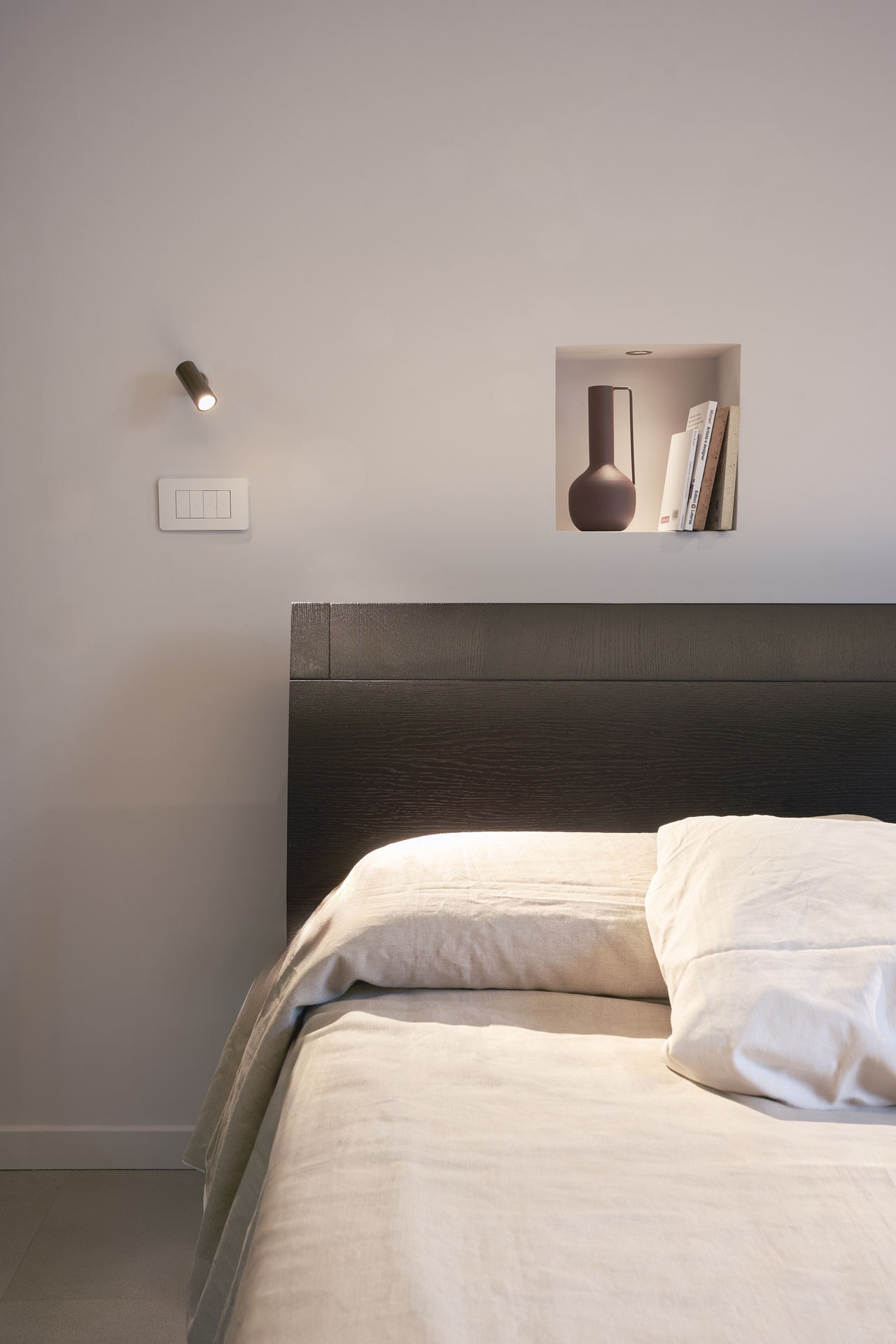 Immerso tra le morbide colline fiorentine, l’appartamento si inserisce in un contesto in cui il tempo sembra sospeso: un luogo dove si respirano ancora le storie medievali del territorio e gli scorci panoramici lasciano senza fiato. Grazie a un terrazzo di circa 30 mq orientato verso la campagna toscana, è possibile osservare il paesaggio, seguendo con lo sguardo il profilo delle colline e del borgo circostante. Ogni spazio è pensato per accogliere la calma del paesaggio di campagna e per restituire l’armonia con la natura e con i gesti quotidiani. La committenza, viaggiatrice e attenta al design, ha desiderato una casa capace di fondere l’anima accogliente della tradizione toscana e la leggerezza essenziale del linguaggio contemporaneo. L’appartamento si apre su un’ampia zona giorno open space, dove la cucina su misura diventa il cuore pulsante della casa e il divano centrale delinea visivamente l’area living. Questa gerarchia degli spazi è enfatizzata da una trave architettonica con doppia funzione: infatti questa supporta un sistema di illuminazione diretta tramite binario incassato di Lip Lighting e, allo stesso tempo, una luce indiretta che enfatizza la travatura in legno del tetto in tono su tono con le pareti. La trave diventa così un ponte tra la classicità toscana e il design contemporaneo.La palette cromatica gioca su toni freddi per le superfici architettoniche, in contrasto con i colori caldi degli arredi, bilanciati da un’illuminazione artificiale che scalda l’ambiente e ne definisce l’identità.Il corridoio funge da elemento di transizione verso la zona notte: un passaggio silenzioso, scandito da un’armadiatura a scomparsa a tutta altezza e da luci puntuali che valorizzano la purezza delle linee architettoniche. La zona notte comprende due bagni e tre camere, nelle quali la luce e i materiali costruiscono un’atmosfera di calma. Le superfici riflettenti e il contrasto di colori chiaro-scuri amplificano la percezione dello spazio, mentre giochi di pieni e vuoti su pareti e soffitto lasciano affiorare frammenti dell’architettura preesistente, in un raffinato dialogo tra presente e passato.Il tetto, elemento simbolico del progetto, riprende la tipica copertura toscana ma la reinterpreta in chiave moderna: una sintesi tra materiali locali e linee pulite, tra il rigore della geometria e la morbidezza delle tonalità naturali. Gli interni si distinguono per arredi su misura, realizzati da maestranze locali, che combinano falegnameria artigianale e opere in muratura. Nicchie, mensole e volumi incastonati nelle pareti non sono semplici elementi decorativi, ma costruiscono un vero e proprio “spazio nello spazio”, dove ogni dettaglio dialoga con l’architettura e l’oggettistica diventa parte integrante dell’ambiente.L’illuminazione, realizzata appositamente da Lip Lighting, è progettata per raccontare l’architettura attraverso la luce. I corpi illuminanti custom creano scenari dinamici, alternando luce ambientale diffusa, che sottolinea la geometria degli spazi, e luce d’accento, che evidenzia dettagli materici e punti focali. Questa doppia lettura della luce conferisce profondità agli spazi e accompagna le diverse ore del giorno con transizioni morbide e naturali.Il Giglio rappresenta un equilibrio misurato tra tradizione e contemporaneità, un progetto che interpreta l’identità toscana attraverso soluzioni architettoniche essenziali, materiali autentici e una cura attenta per la luce e lo spazio.
