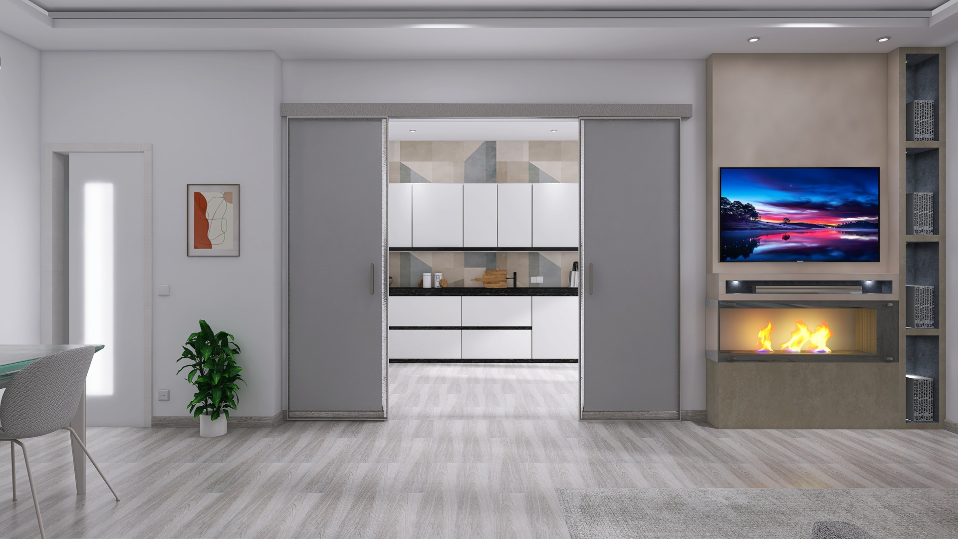 Quando i figli diventano abbastanza grandi da richiedere i propri spazi, nonostante si abiti in una bella casa, si decide di fare il passo e trasferirsi in un'abitazione più grande. E' il caso di questa bella famiglia di 4 persone.Il nuovo appartamento aveva bisogno di una ristrutturazione totale i Clienti hanno chiesto il mio aiuto soprattutto per la zona giorno, un enorme spazio da quale ricavare uno studio e una capiente libreria, e per le camerette delle ragazze.All'interno dei Render, tranne cucina, il camino e lo studio, interamente in cartongesso, sono presenti tutti gli arredi già in possesso della famiglia.In tutta casa uno splendido gres effetto legno grigio della ditta Ragno, mentre per rivestimenti verticali di cucina e bagni piastrelle Marazzi.