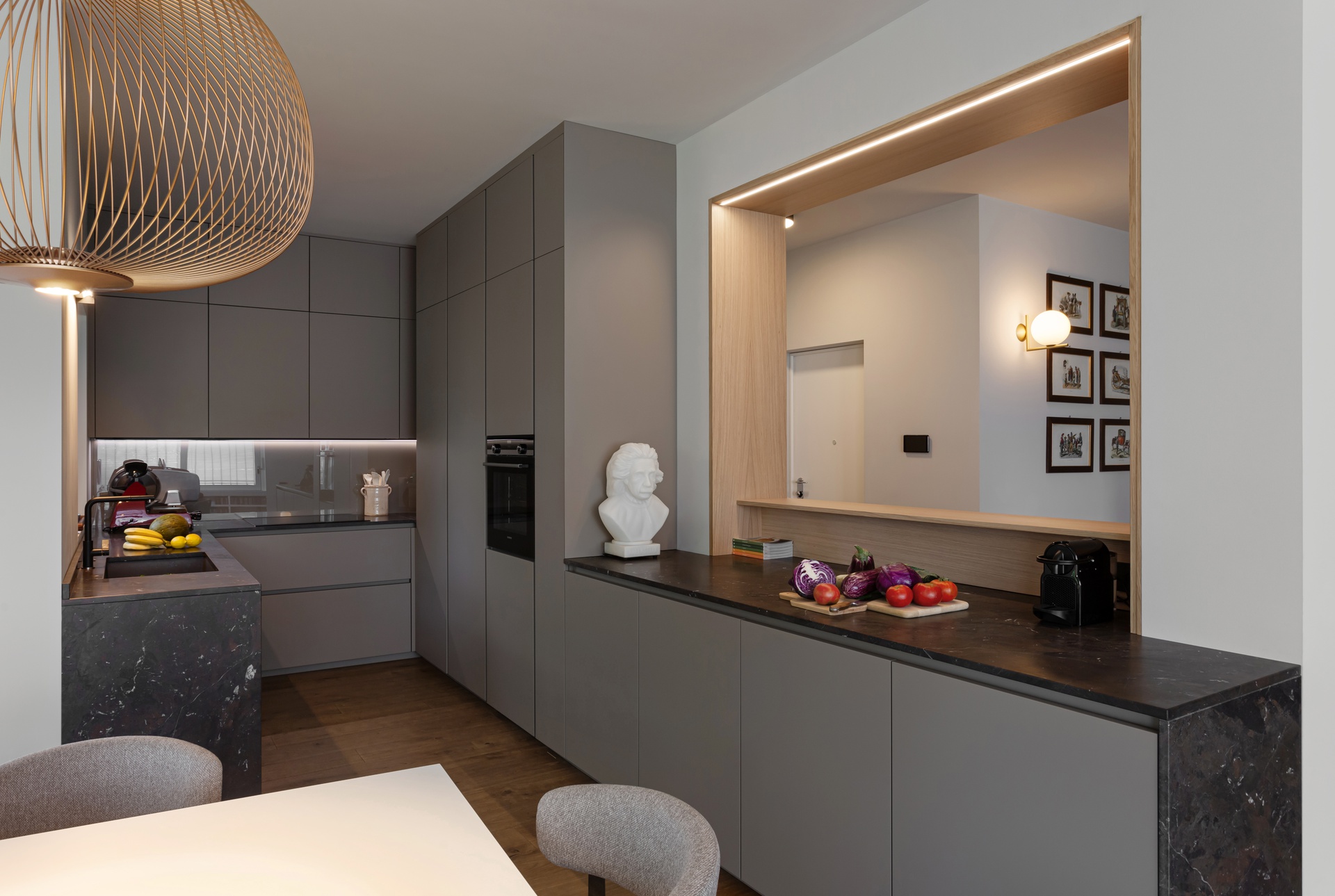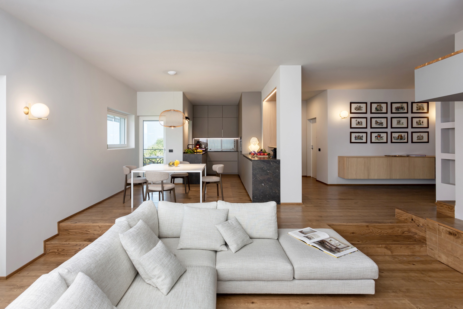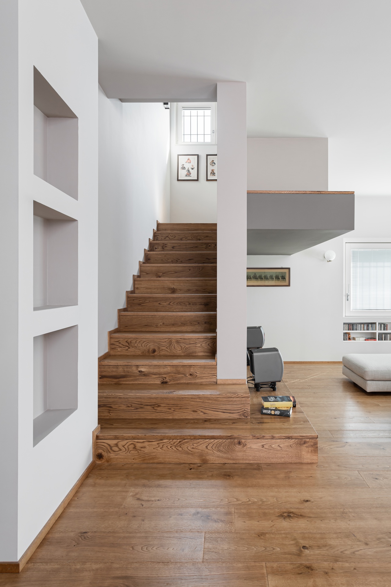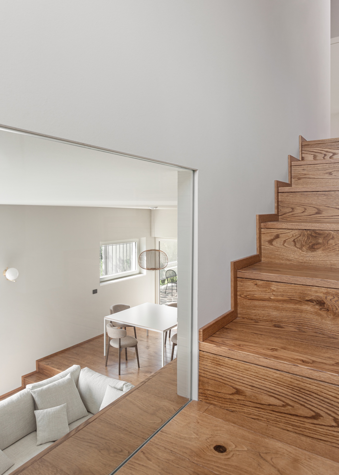 Ristrutturazione completa di una villa di circa 250 mq sul Lago di Como. Il progetto nasce dall'esigenza di trasformare questa casa da luogo di villeggiatura a casa per una coppia. Il concept nasce dall'enfatizzare la luce naturale e la vista verso il lago. Per questo abbiamo sviluppato un progetto in cui gli spazi sono molto aperti e si creano delle prospettive particolari dai vari punti della casa. Dall'ingresso si percepisce subito una sorta di quadro incorniciato da un portale in legno che guarda la cucina e il lago dopo; dalle scale un'apertura bassa chiusa con vetro crea uno scorcio sulla sala. Al piano superiore solo la zona notte con 3 camere, 2 bagni e un grande terrazzo molto riservato.
