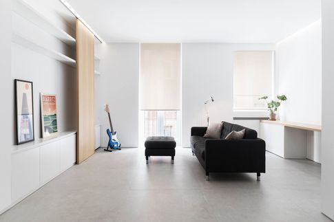 Quando i sogni si inseguono a lungo, la definizione di una realtà abitativa nuova è sempre più chiara.È ciò che è avvenuto alla famiglia che ha trasformato questo nucleo abitativo, prima articolato e scomposto, in uno oggi reinventato e rinato sotto una luce nuova ed una direttrice pulita, senza sbordature.Il design, contemporaneo e minimale, è evidente in ogni dettaglio: domotica, porte a raso muro, maniglie e corpi luce.L’immagine generale si spinge verso uno stile capace di adattarsi in maniera elegante a materiali e dettagli classici. Il bagno è interamente rivestito in cemento, compresa la vasca perfettamente integrata, realizzata da artigiani altamente specializzati. La tecnologia è accolta al meglio con google home, lo smart speaker con controllo vocale che permette di gestire ogni apparecchiatura elettronica.Connettendosi al wifi di casa (e attraverso il wifi a tutti I dispositivi smart) permette di dare un’ampia serie di comandi vocali.Dall’apertura e chiusura delle tapparelle e delle luci, a far partire la lavatrice oppure una canzone o ancora fornire le previsioni meteo del giorno.Le gamme cromatiche selezionate per l’appartamento hanno rispettato il metodo ncs, permettendo di realizzare murature perfettamente in tinta con le porte a rasomuro l’invisibile, con l’armadiatura e le librerie realizzate su misura da falegnami altamente specializzati.