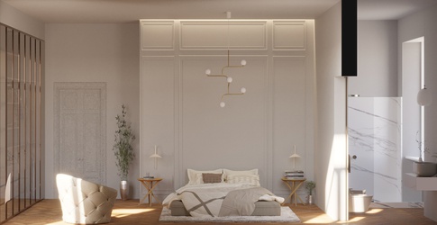 La villa, situata in provincia di Roma, si distingue per un equilibrio raffinato tra natura, eleganza e funzionalità.L’intervento, che ha interessato la distribuzione interna del primo piano di circa 110 mq, nasce da un progetto iniziale ottimizzato attraverso piccole ma mirate modifiche, guidate da una visione condivisa con i clienti. La selezione stilistica dei materiali e delle finiture è stata il cuore del progetto, con una moodboard ispirazionale come punto di partenza per definire l’identità della casa.Materiali come la pietra naturale, il legno e i dettagli in bronzo diventano il filo conduttore che unisce ogni ambiente, creando una narrazione coerente e sofisticata. Le soluzioni tecnologiche, come il sistema di luci a binario incassate e l’impianto di climatizzazione integrato, arricchiscono lo spazio senza comprometterne l’estetica.La zona giorno si apre in un ambiente luminoso e arioso, dove il calore del legno incontra l’eleganza dei dettagli metallici. La cucina, funzionale e contemporanea, dialoga con il living in maniera fluida, mentre la zona notte è pensata come un rifugio di calma e freschezza, grazie all’uso di tonalità neutre e materiali naturali.Ogni elemento è stato scelto con cura, esprimendo un’attenzione costante al dettaglio. Il risultato è uno spazio accogliente, luminoso, fresco e senza tempo — una casa che racconta il gusto e lo stile di chi la vive.