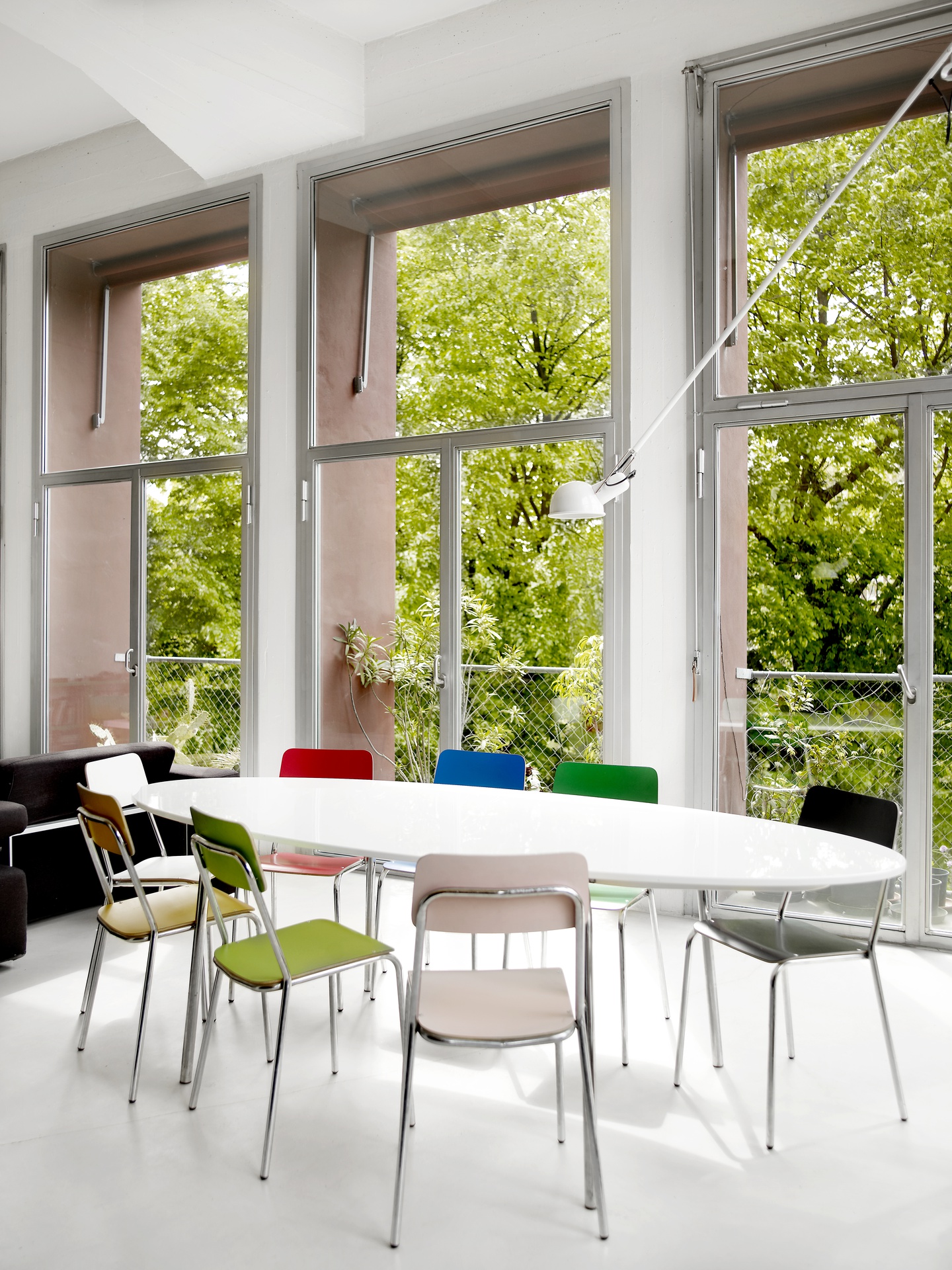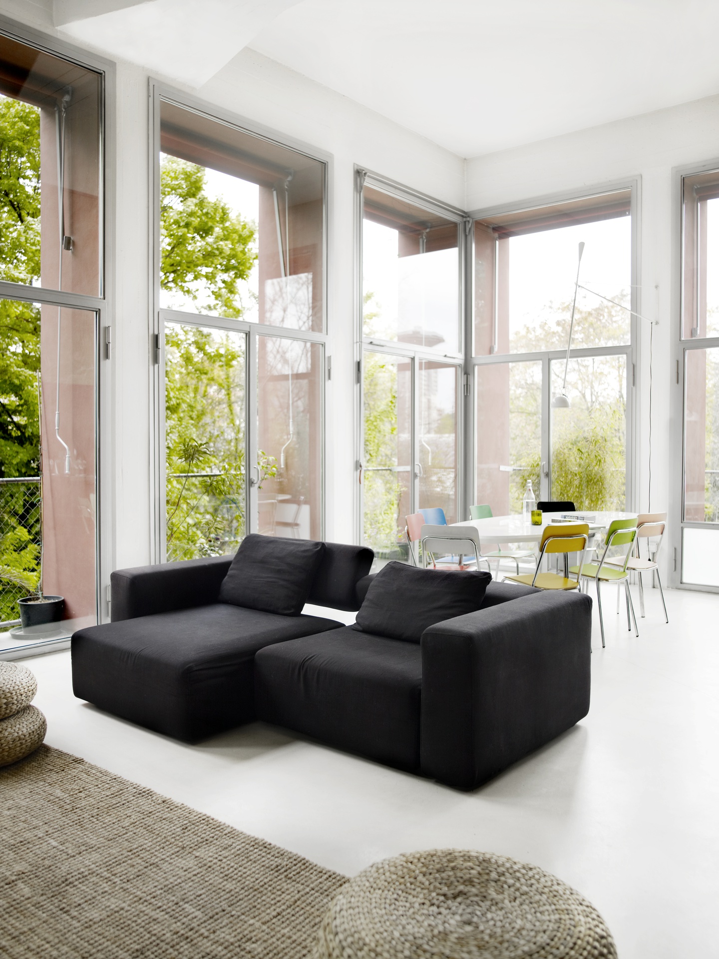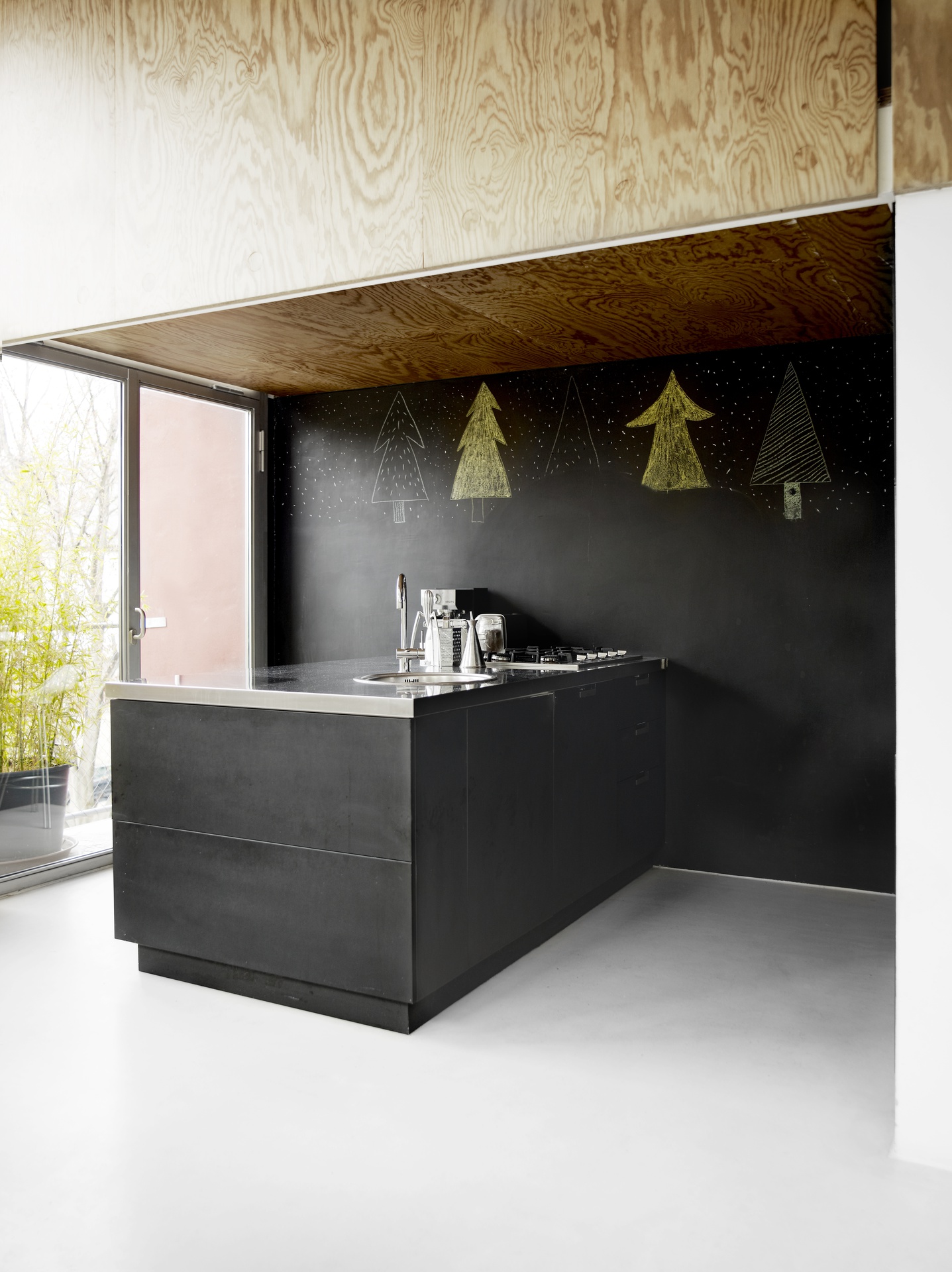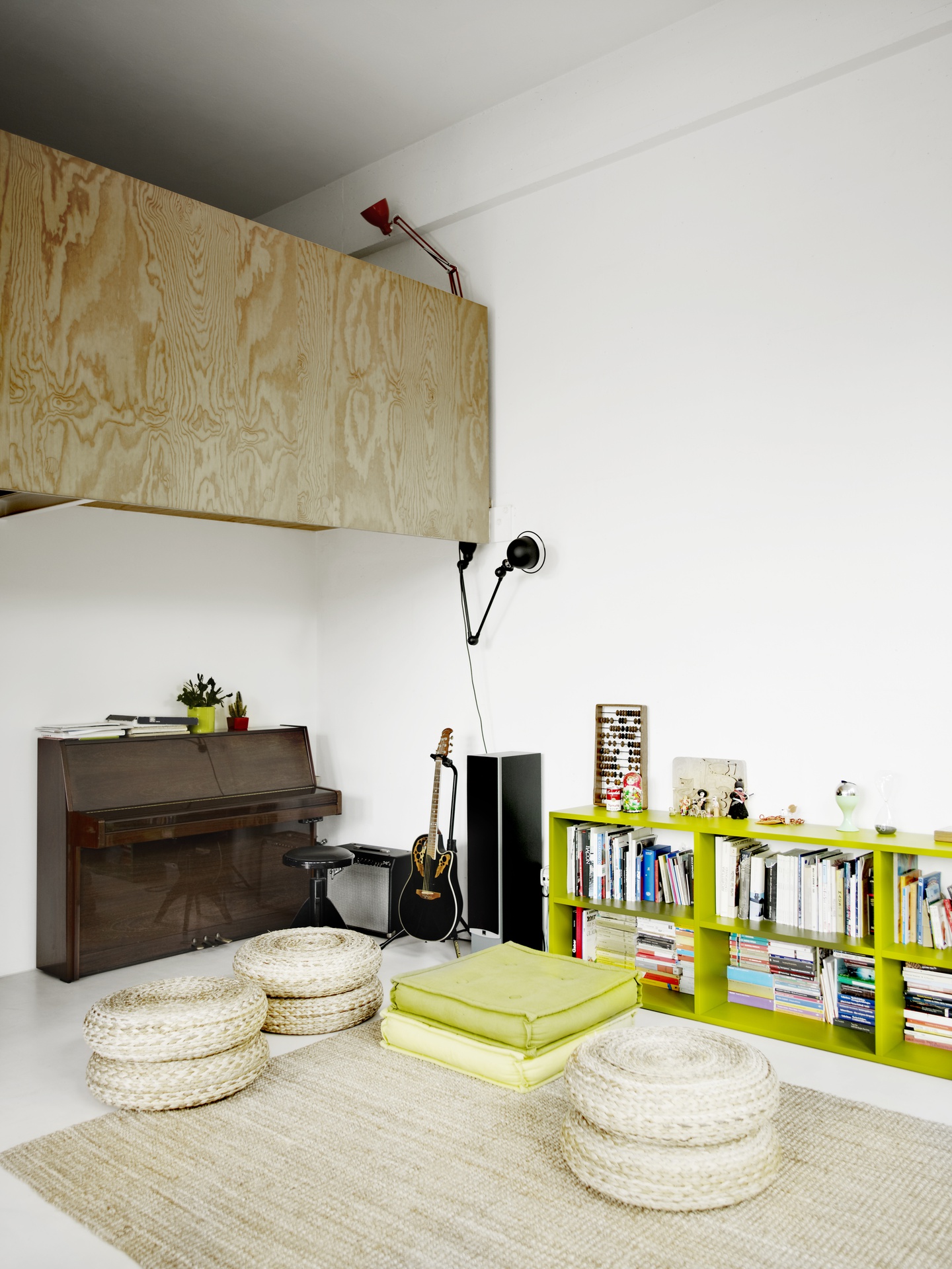 Il loft è parte dell’ intervento di riqualificazione della Ex-Gio-style, fabbrica multipiano degli anni ‘60, a Milano. Lo spazio si presenta come un quadrato 9x9m aperto sui lati ovest e sud con grandi vetrate e alto circa 4,5m. Il soggiorno è un unico spazio a doppia altezza; il soppalco accoglie la camera da letto e uno studio. I muri sono lasciati al grezzo e i pavimenti sono stati realizzati in cemento bianco. Il legno pitch-pine, diffuso nei cantieri navali perché resistente all’acqua, è stato usato per la scala, il soppalco, le porte e la vasca da bagno. Sulla cucina, grazie ad una vernice effetto lavagna, è possibile scrivere o disegnare.