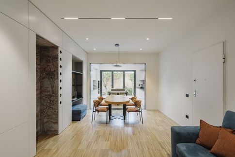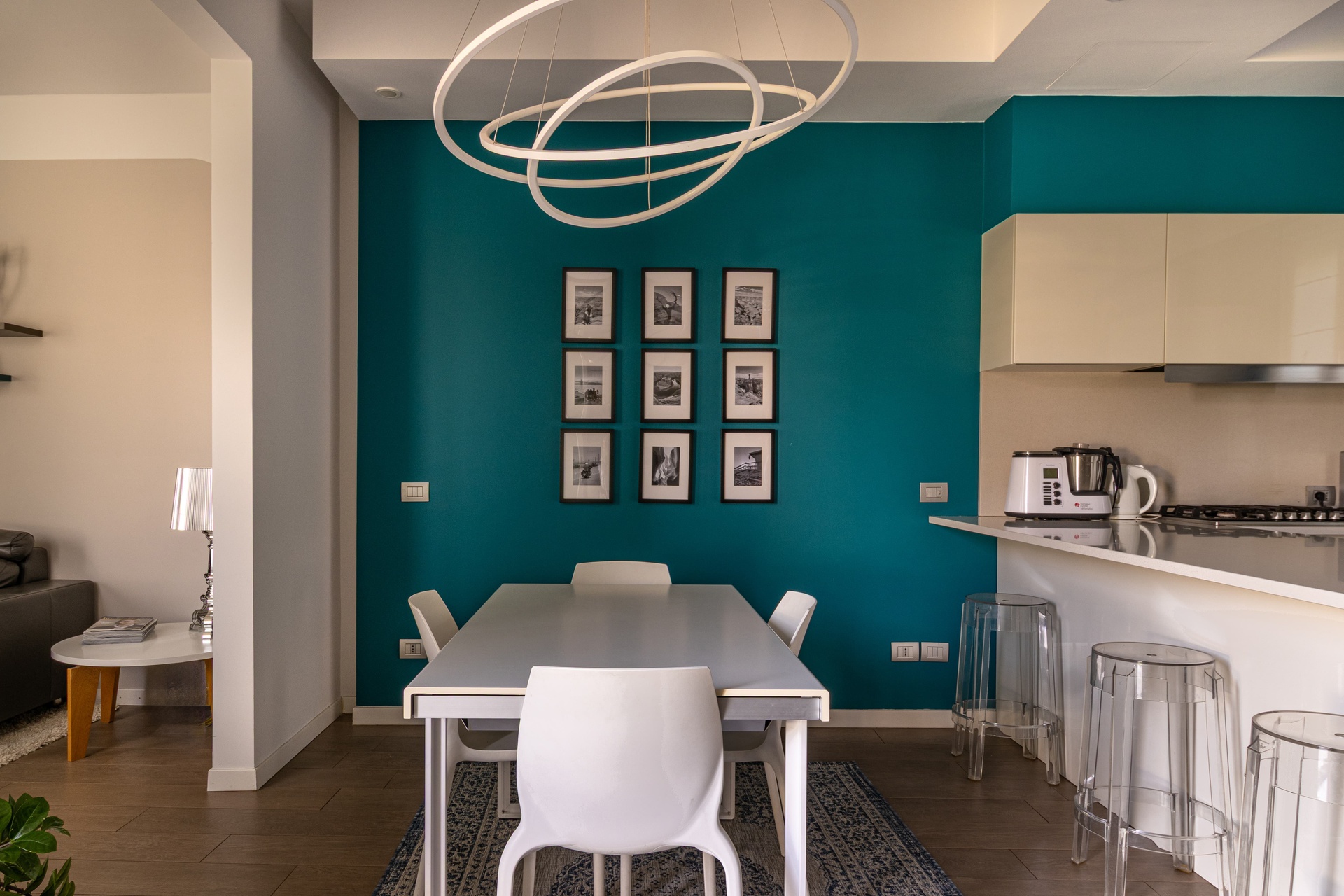 Un progetto di interior design che dimostra come sia possibile rivoluzionare completamente l'atmosfera di una casa attraverso interventi strategici non invasivi. Senza toccare le strutture murarie, questa trasformazione si basa su tre pilastri fondamentali: la ridefinizione della disposizione degli arredi, l'introduzione di una palette cromatica studiata ad hoc e un sistema di illuminazione ripensato. Il living è stato reinventato creando zone conversazione più fluide con l'aggiunta di elementi tessili e vegetali per un effetto "cosy chic", mentre la zona pranzo è diventata il fulcro emotivo dell'abitazione grazie all'audace uso dell'ottanio - un blu luminoso con sfumature gialle che dialoga armoniosamente con i toni caldi del pavimento effetto legno. La camera da letto si è trasformata in un rifugio contemporaneo attraverso l'inserimento di una parete d'accento dai colori soft, tessuti naturali dalle texture raffinate e soluzioni che amplificano la luce naturale. Questo approccio progettuale evidenzia come dettagli mirati - dall'illuminazione discreta con faretti incassati agli accenti senape negli accessori - possano generare un impatto visivo ed emotivo straordinario, dimostrando che il vero lusso risiede nella capacità di trasformare gli spazi esistenti con intelligenza creativa e sensibilità estetica.