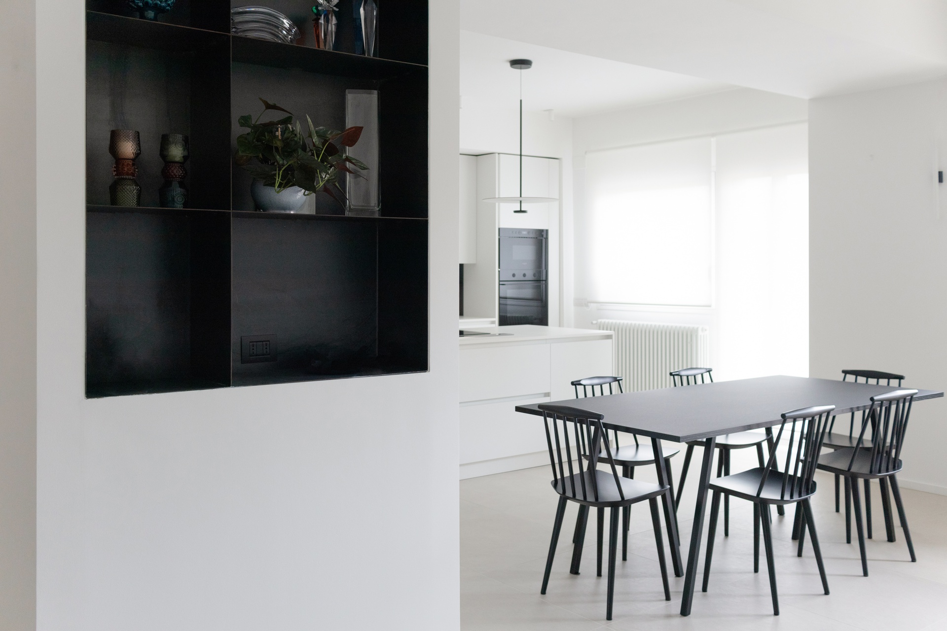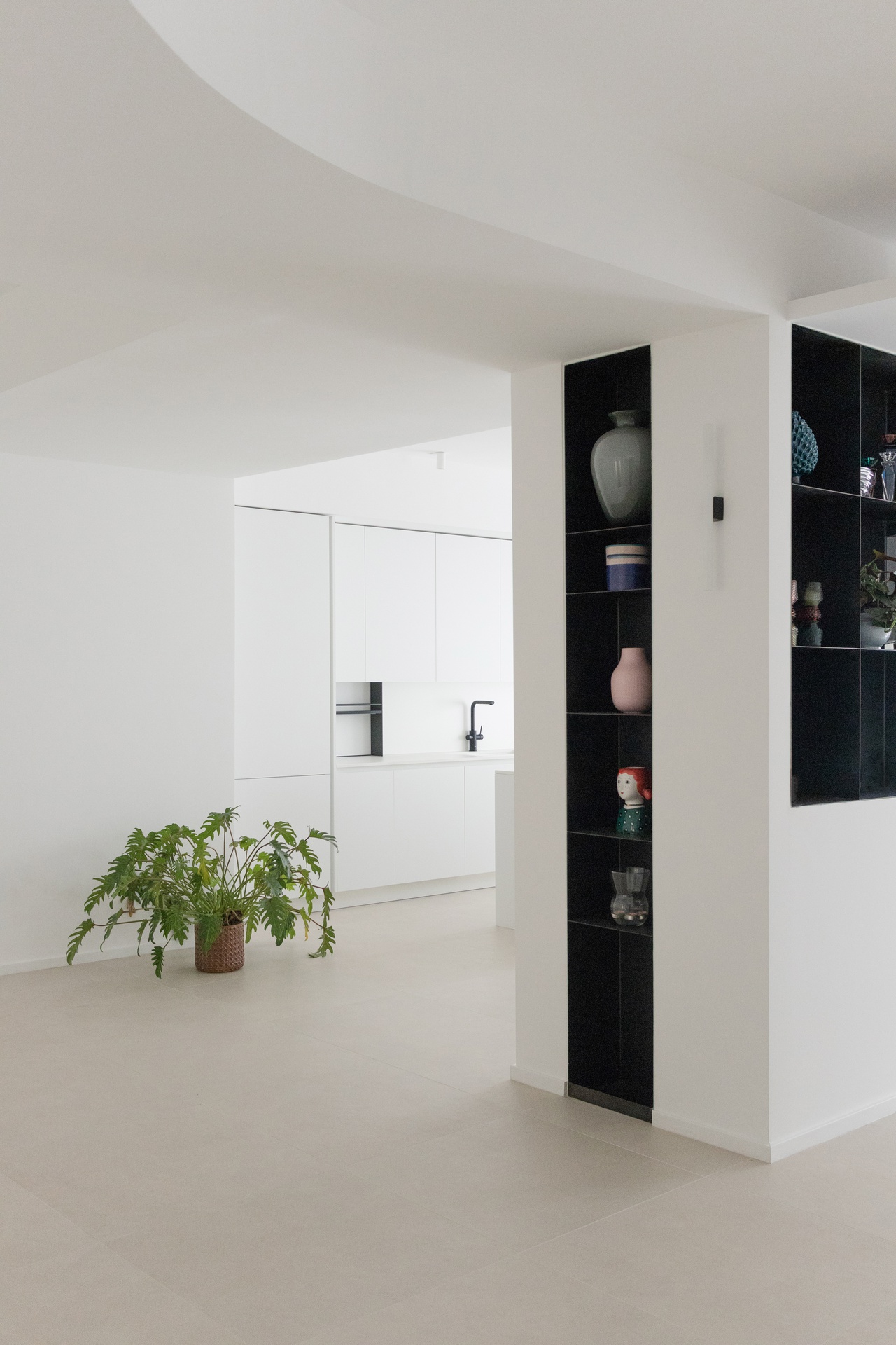 Un arco di cerchio a soffitto collega la zona giorno alla zona notte.
