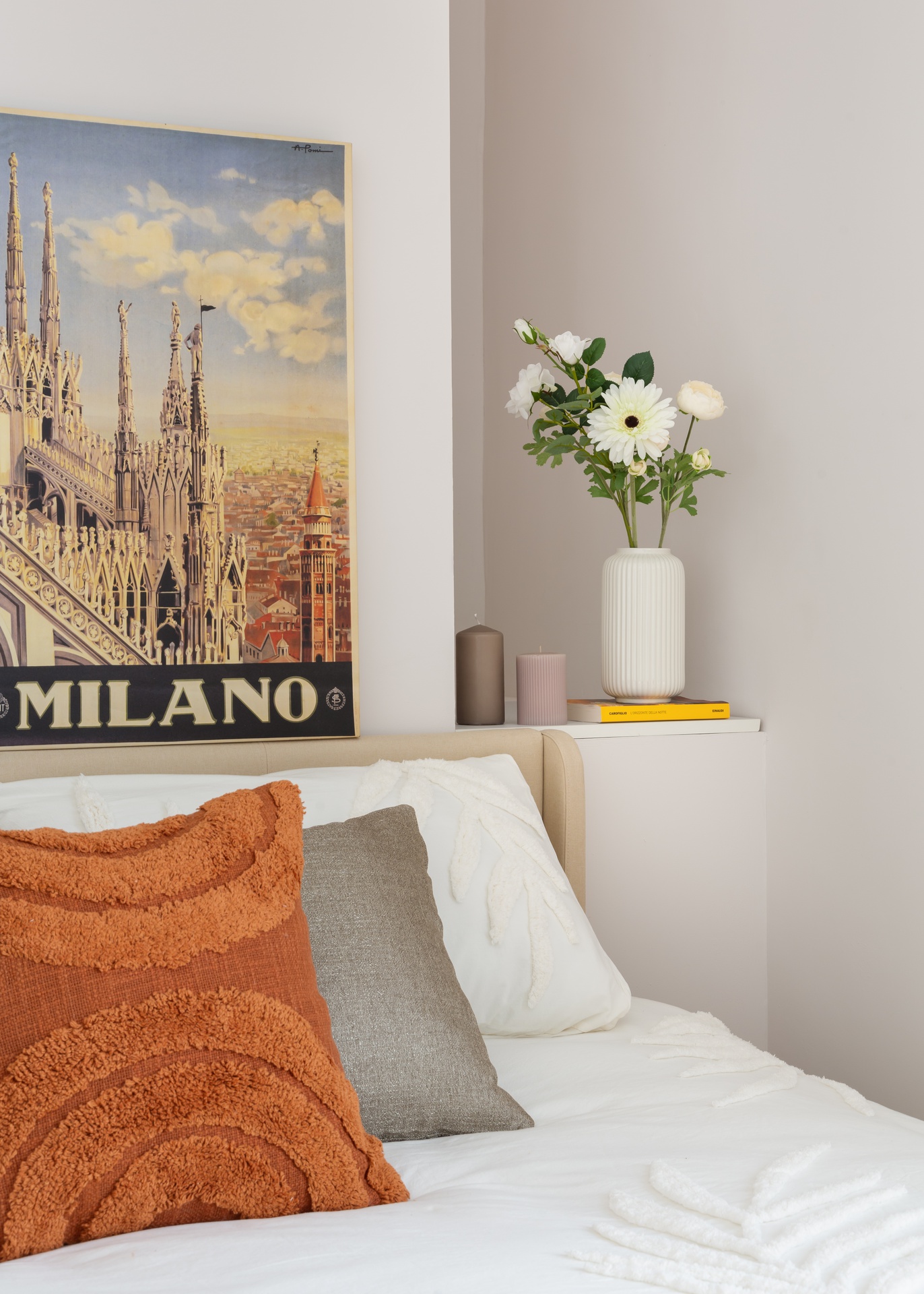 Questo progetto riguarda la ristrutturazione - completa di progetto d'interior design - di un attico di 70 mq circondato da un ampio terrazzo privato di 100 mq, con esposizione su tre lati e una meravigliosa vista sul panorama cittadino. Tutte le camere affacciano sul terrazzo che circonda la casa e ne esalta le caratteristiche. Il progetto d'interior è caratterizzato da uno stile moderno con tocchi di colore giallo ocra che arricchisce lo stile insieme alle finiture ottonate dell'illuminazione. Sul terrazzo, una cucina e una vasca idromassaggio incorniciano lo spazio esterno.