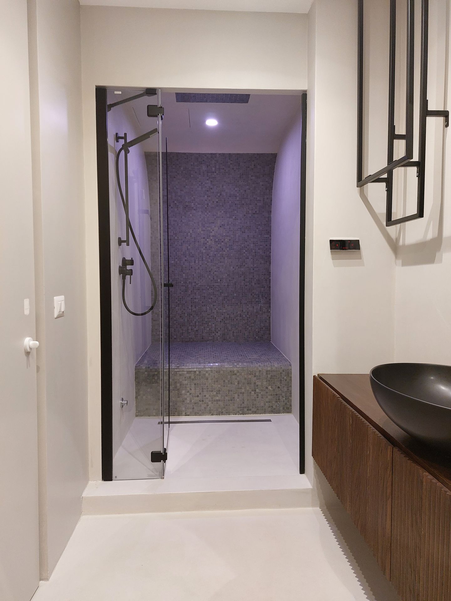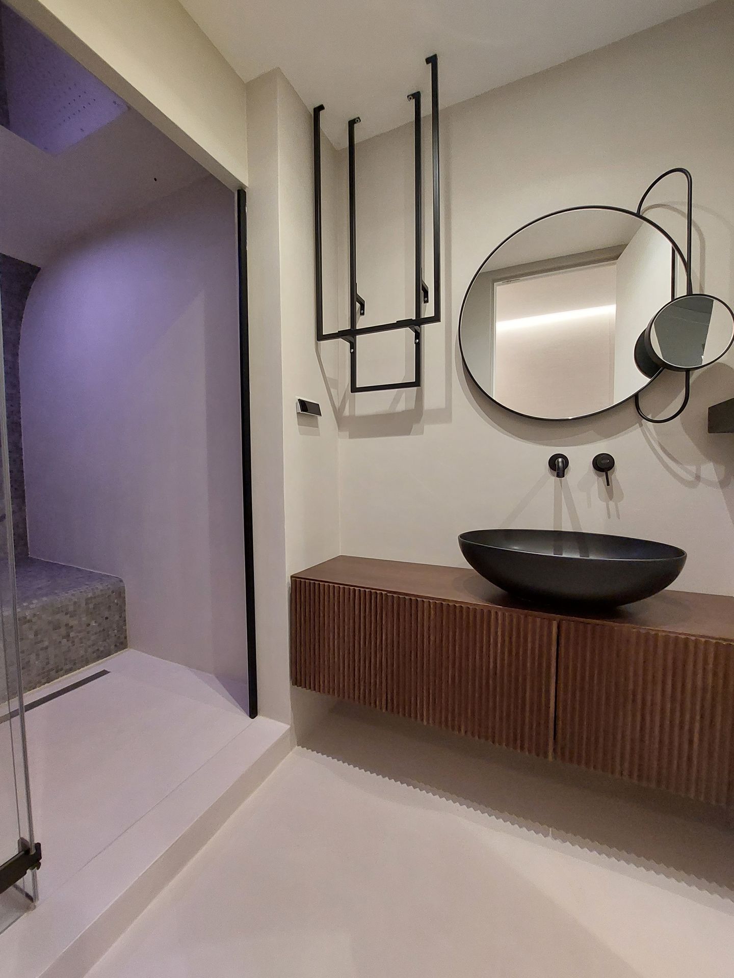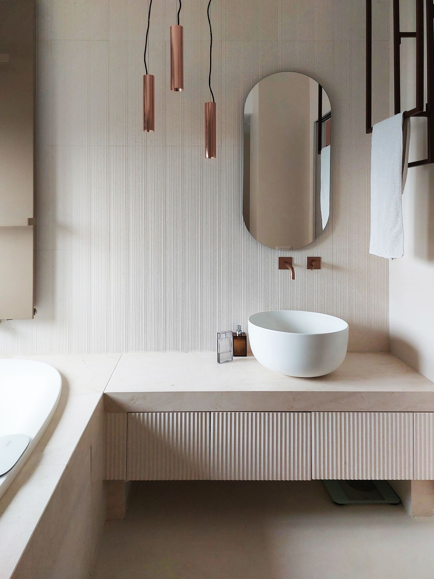 Situato nel cuore di Roma, questo progetto è caratterizzato da spazi ampi e luminosi, ricchi di luce naturale.I materiali di finitura sono stati scelti con cura per creare un’atmosfera calda e accogliente, ma allo stesso tempo contemporanea ed essenziale.Il contrasto tra il marmo e il legno gioca con texture e superfici, dando vita a un ambiente vibrante e scenografico.La grande cucina si affaccia direttamente sulla zona living, separata solo da un’ampia porta vetrata che scompare completamente nella muratura, garantendo una continuità visiva e una percezione a 360 gradi dello spazio.I bagni, rifiniti in pietra e resina, giocano sulla stessa tonalità declinata in diverse texture, creando movimenti e dettagli inaspettati.