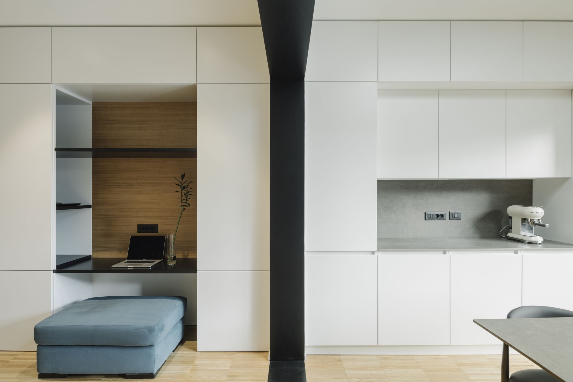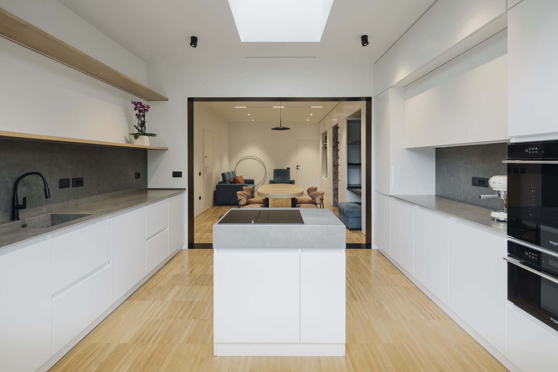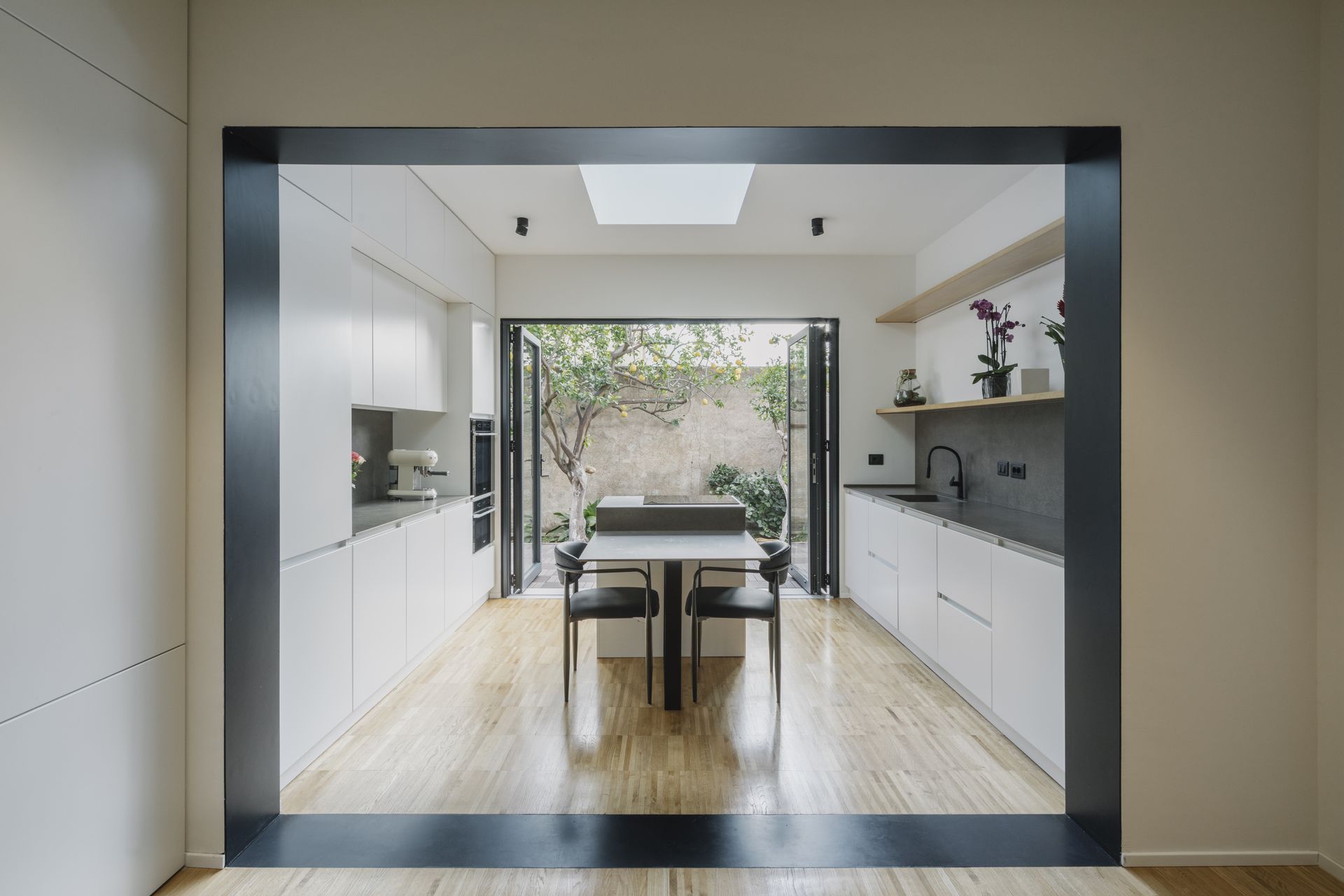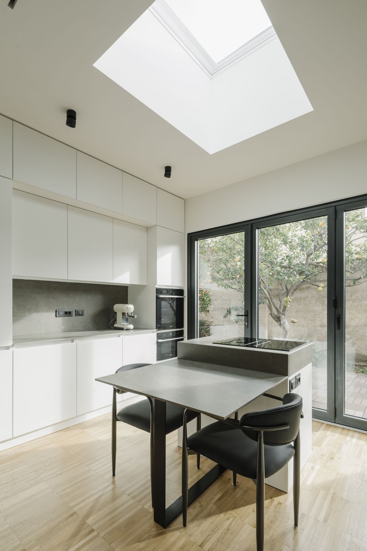 Foto by Cédric DasessonPMB House nasce dalla demolizione e ricostruzione di un edificio unifamiliare degli anni ’60 situato nell'area di Pirri, a Cagliari. L’intervento ripensa integralmente la volumetria e la distribuzione interna, rivoluzionando l’organizzazione degli spazi al fine di ottimizzarne funzioni, percorsi e relazioni con il cortile posteriore.Il progetto segue un criterio geometrico che accomuna tutti gli ambienti, definendo un linguaggio coerente e contemporaneo. La zona living, e la cucina adiacente, sono proiettati verso lo spazio esterno di pertinenza. Gli arredi, interamente disegnati su misura e realizzati da maestranze artigiane, contribuiscono a costruire una continuità materica e visiva tra spazio e funzione. L'isola e il tavolo sono anch'essi progettati e realizzati artigianalmente; quest'ultimo ha la possibilità di estendersi fino a tre configurazioni.Il rovere è un elemento ricorrente dell’intervento: presente negli arredi e nella pavimentazione di tipo industriale. Il passaggio alla zona notte è celato da una nicchia rivestita in carta da parati, mentre il colore diventa protagonista nella camera da letto e nei servizi.Il sistema di climatizzazione, completamente canalizzato, si inserisce nel disegno architettonico attraverso tagli netti nel controsoffitto, integrandosi con l’illuminazione e contribuendo a rafforzare la pulizia formale degli spazi.