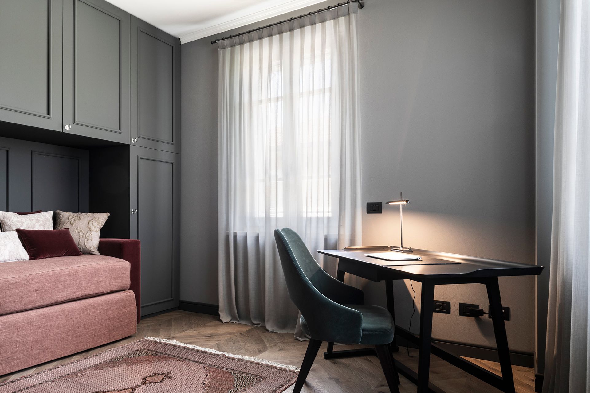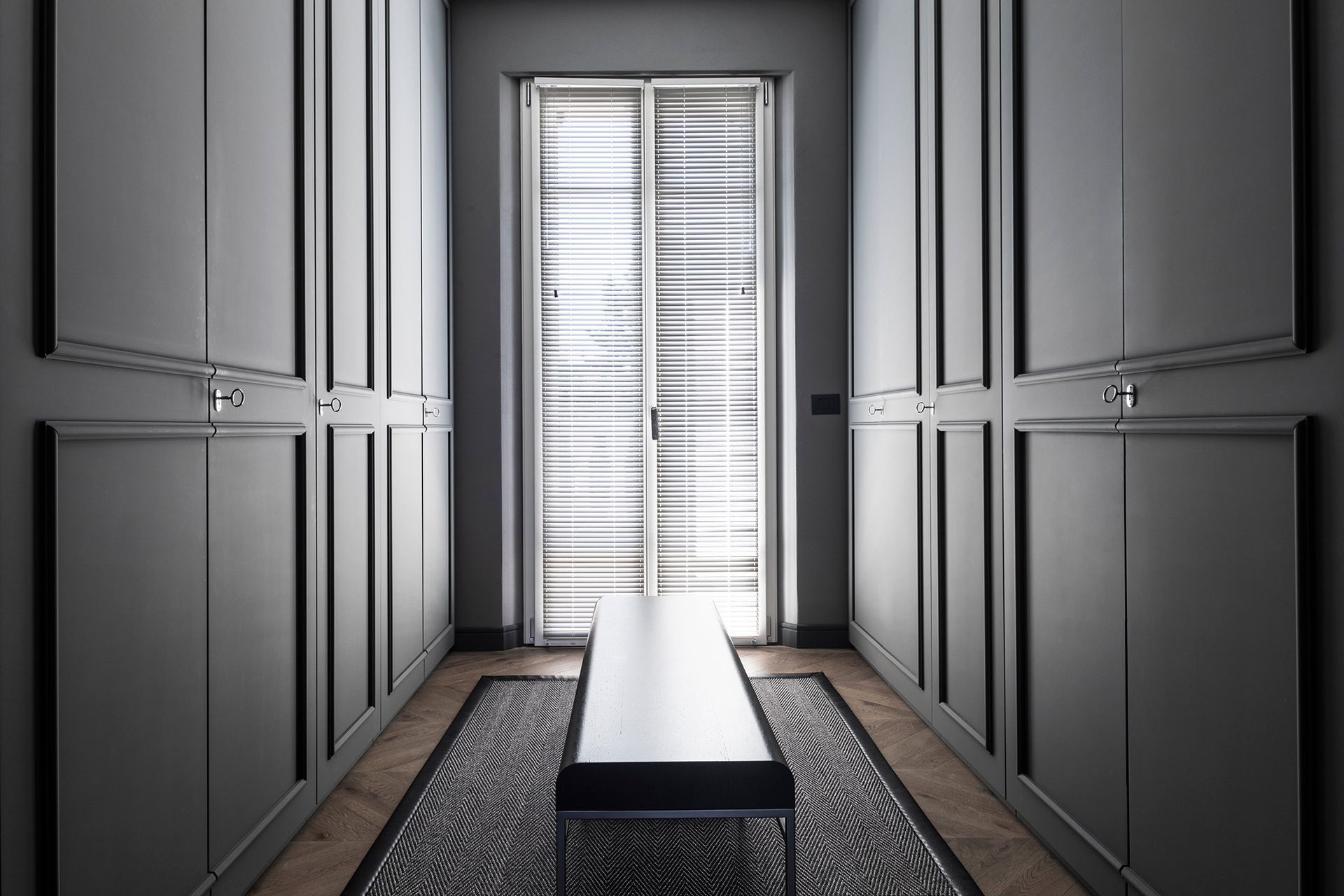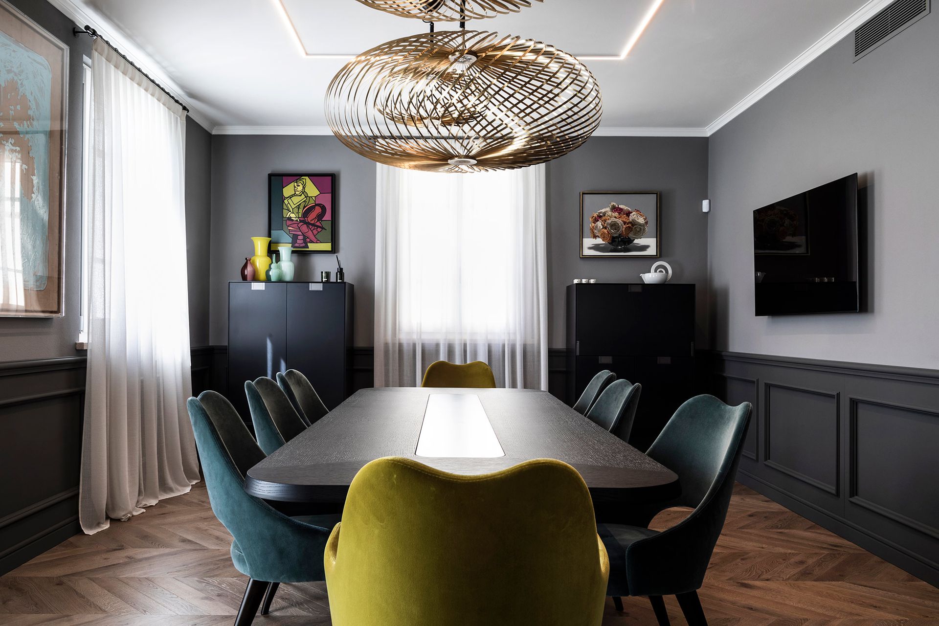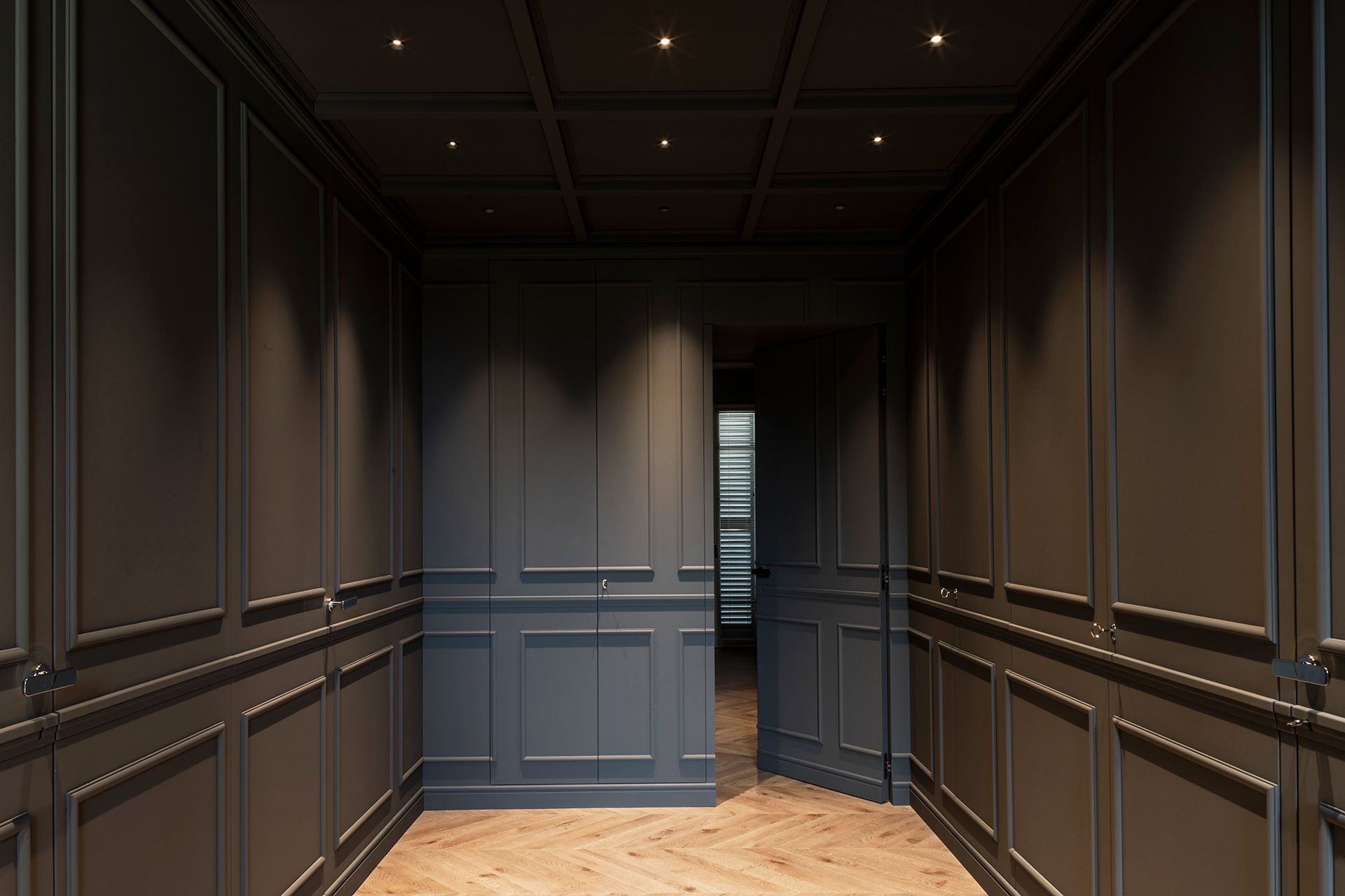 Una casa degli inizi del novecento perfettamente conservata, diventa il pretesto, per reinterpretare il concetto di boiserie, che diventa l'elemento espressivo di tutto il progetto architettonico.Un ipotetico nastro che accogli e conduce all'interno dell'abitazione, da terra a cielo.L'utilizzo di cromie sature, ne stempera la classicità e rimanda ad un utilizzo del colore più contemporaneo. Progetto e Art Direction COLLETTIVO_INVƎRSO Studio di Architettura