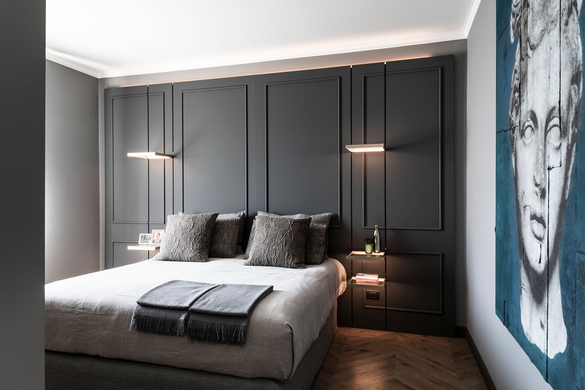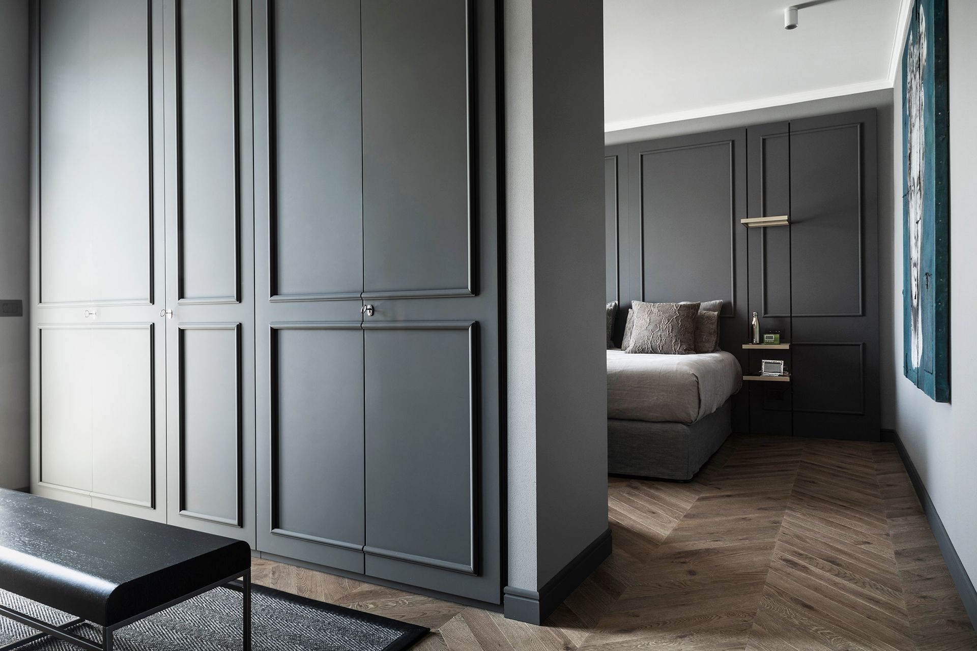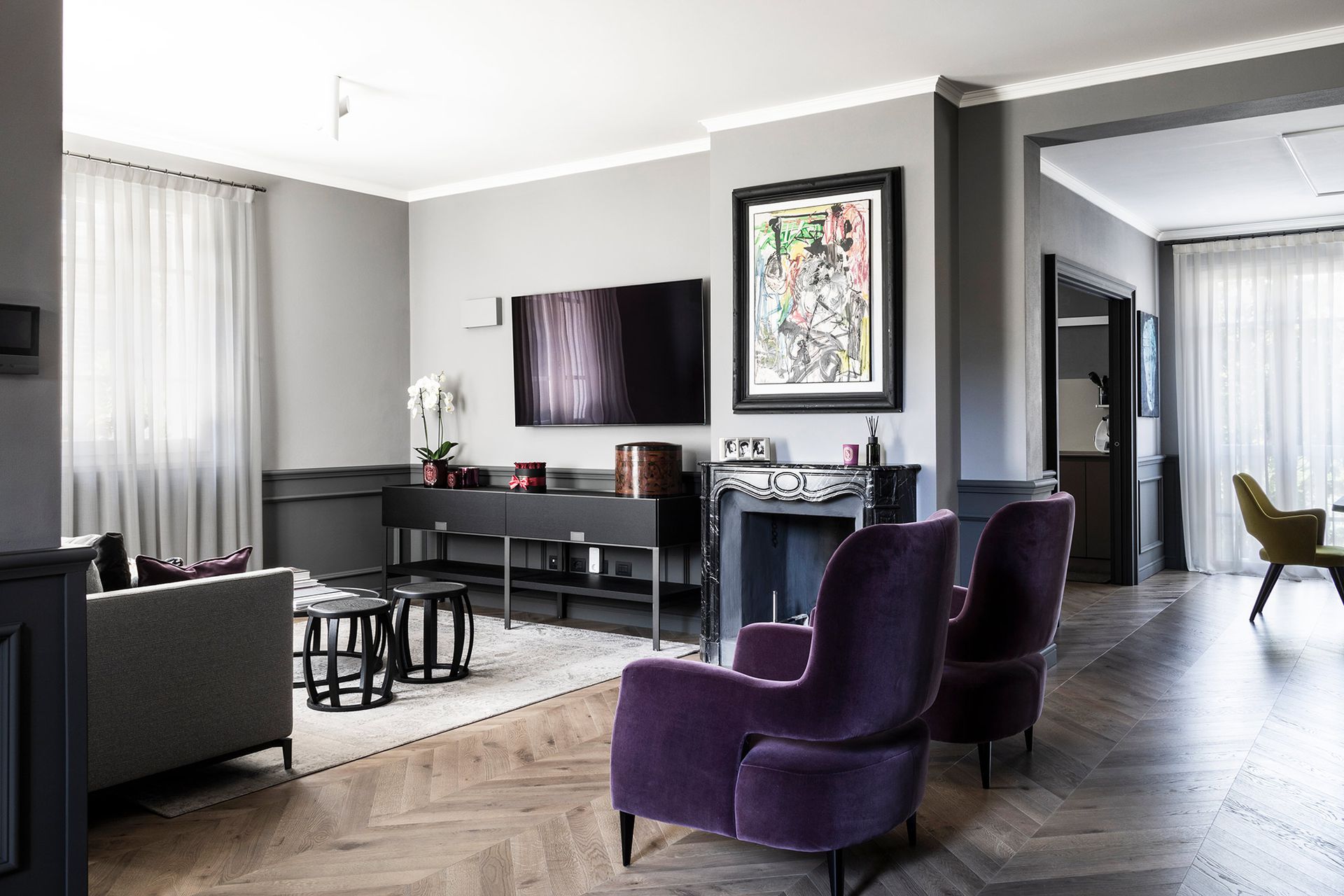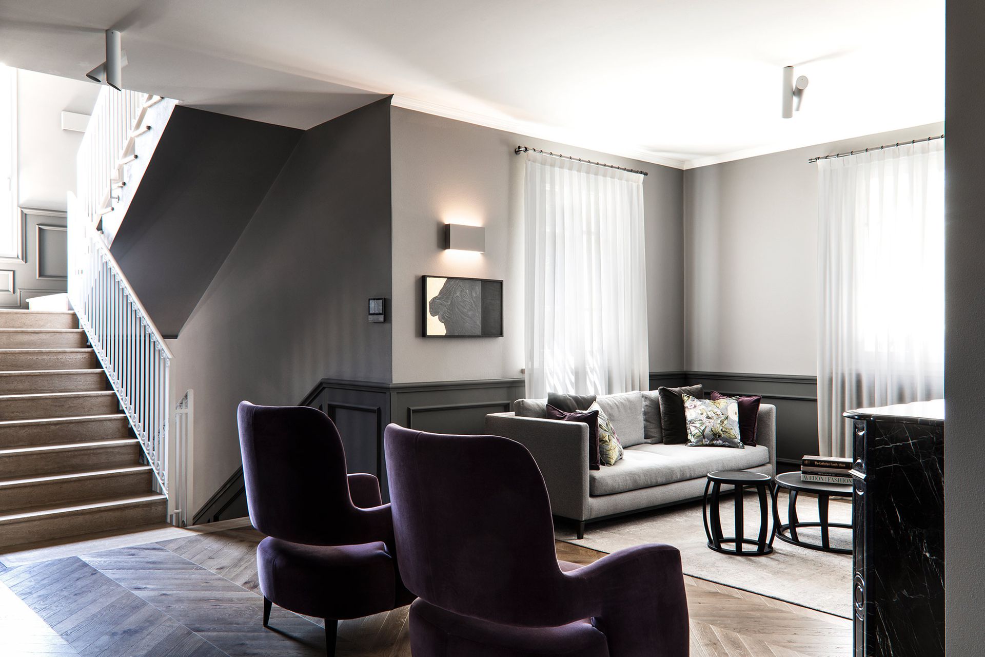 Una casa degli inizi del novecento perfettamente conservata, diventa il pretesto, per reinterpretare il concetto di boiserie, che diventa l'elemento espressivo di tutto il progetto architettonico.Un ipotetico nastro che accogli e conduce all'interno dell'abitazione, da terra a cielo.L'utilizzo di cromie sature, ne stempera la classicità e rimanda ad un utilizzo del colore più contemporaneo. Progetto e Art Direction COLLETTIVO_INVƎRSO Studio di Architettura