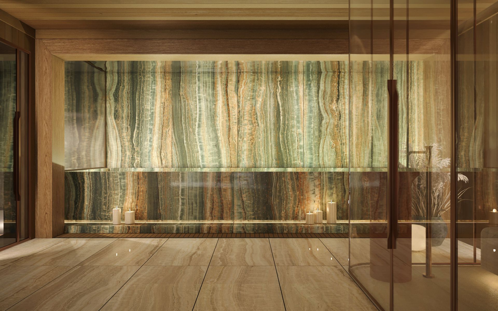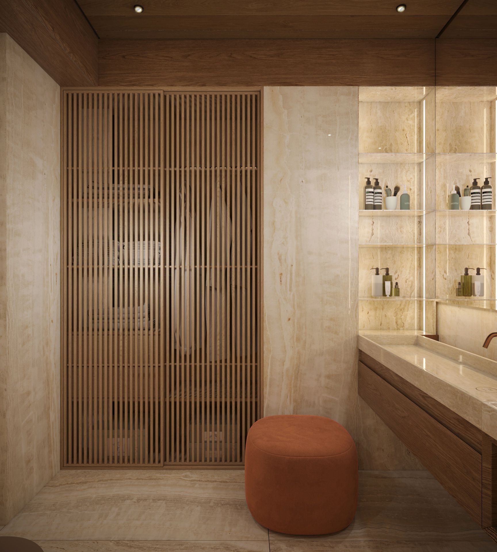 Una spa progettata come rifugio sensoriale, dove materiali naturali e luce calda costruiscono un’esperienza di totale quiete. Il legno avvolge gli spazi definendo un’atmosfera intima e continua, mentre la pietra chiara dialoga con superfici tattili e dettagli su misura. L’illuminazione integrata enfatizza volumi e texture, guidando un percorso fluido tra area relax, trattamento e bagno. Un ambiente essenziale ma sofisticato, pensato per rigenerare corpo e mente attraverso equilibrio, silenzio e materia.