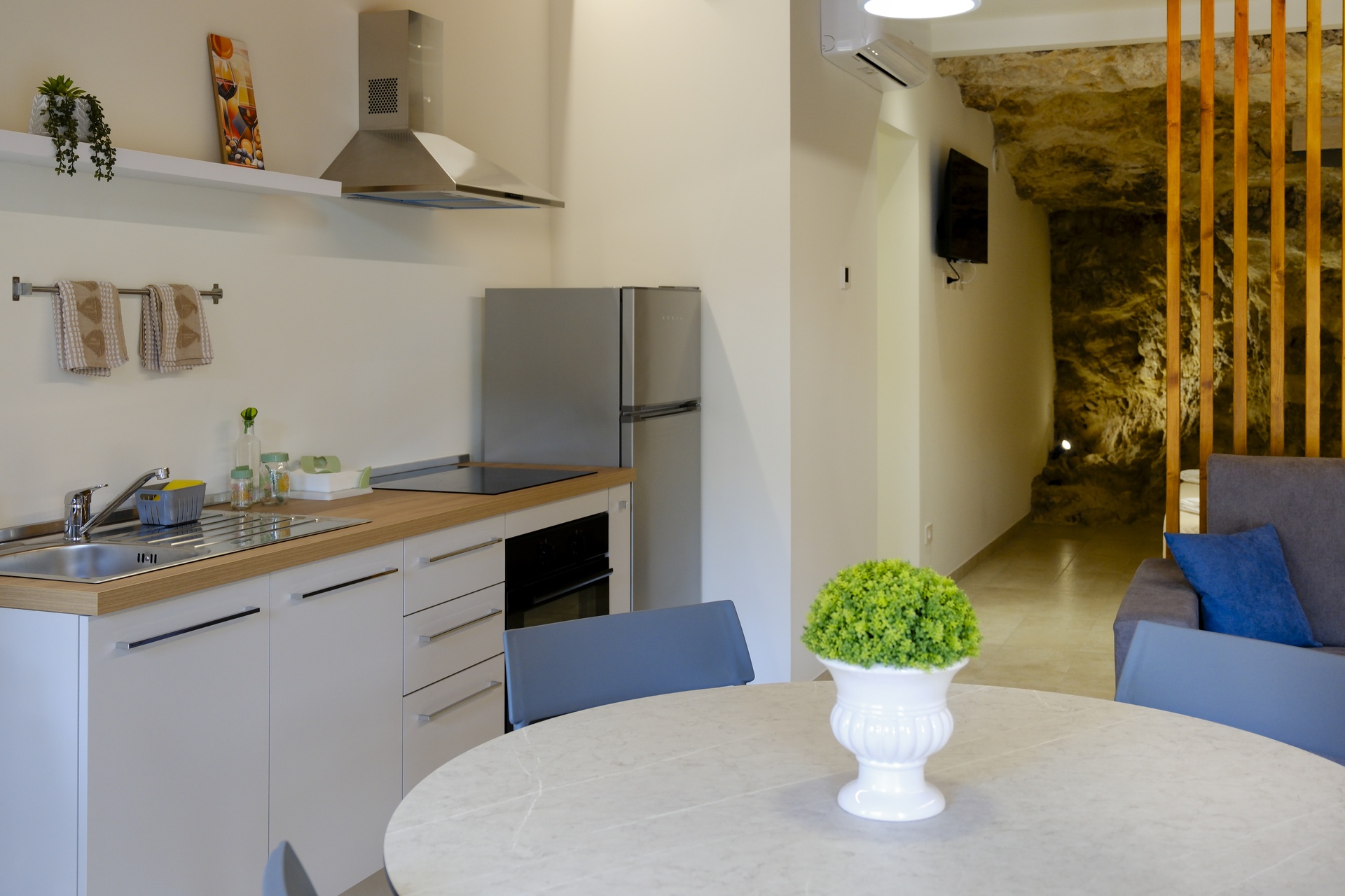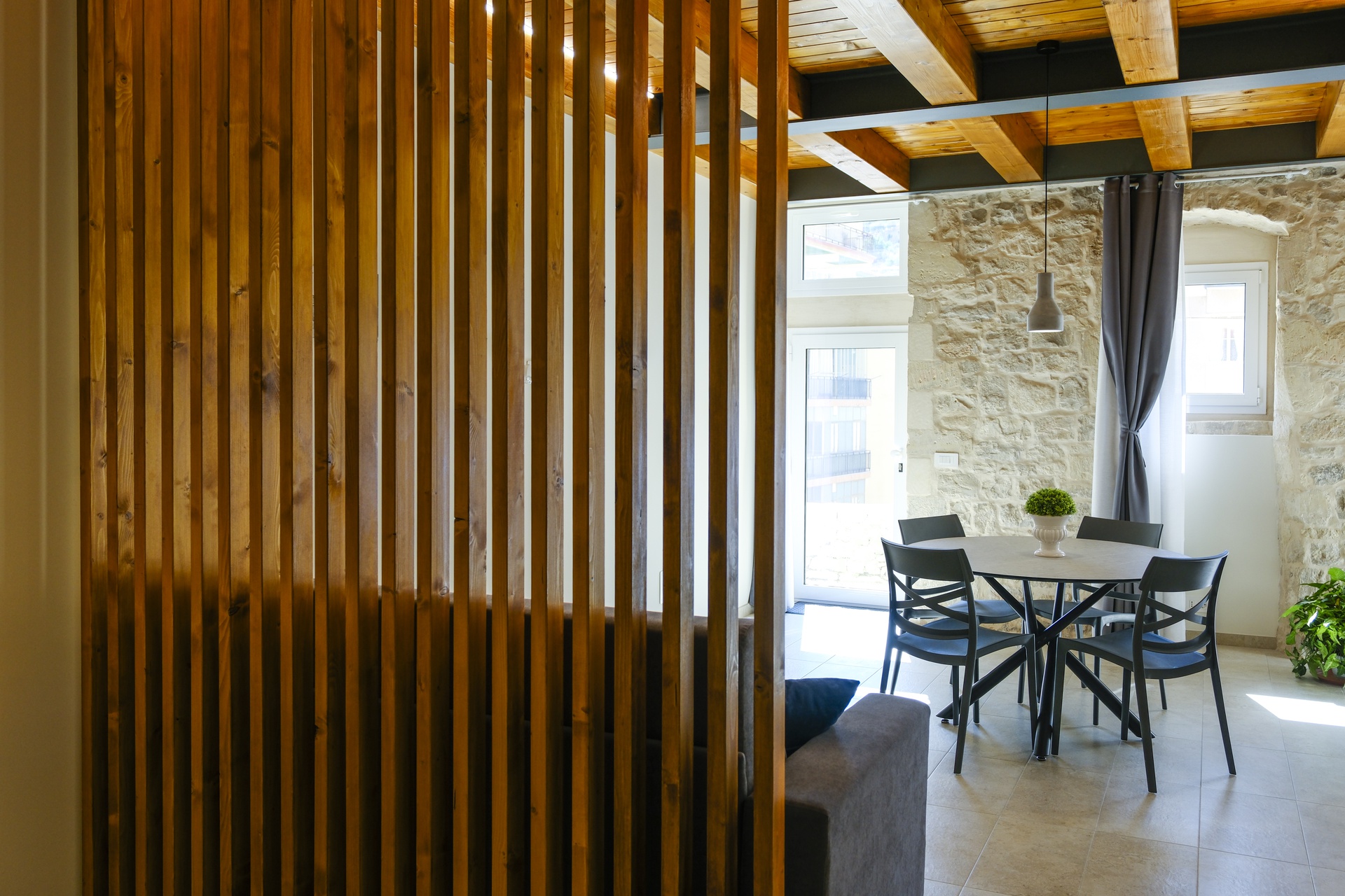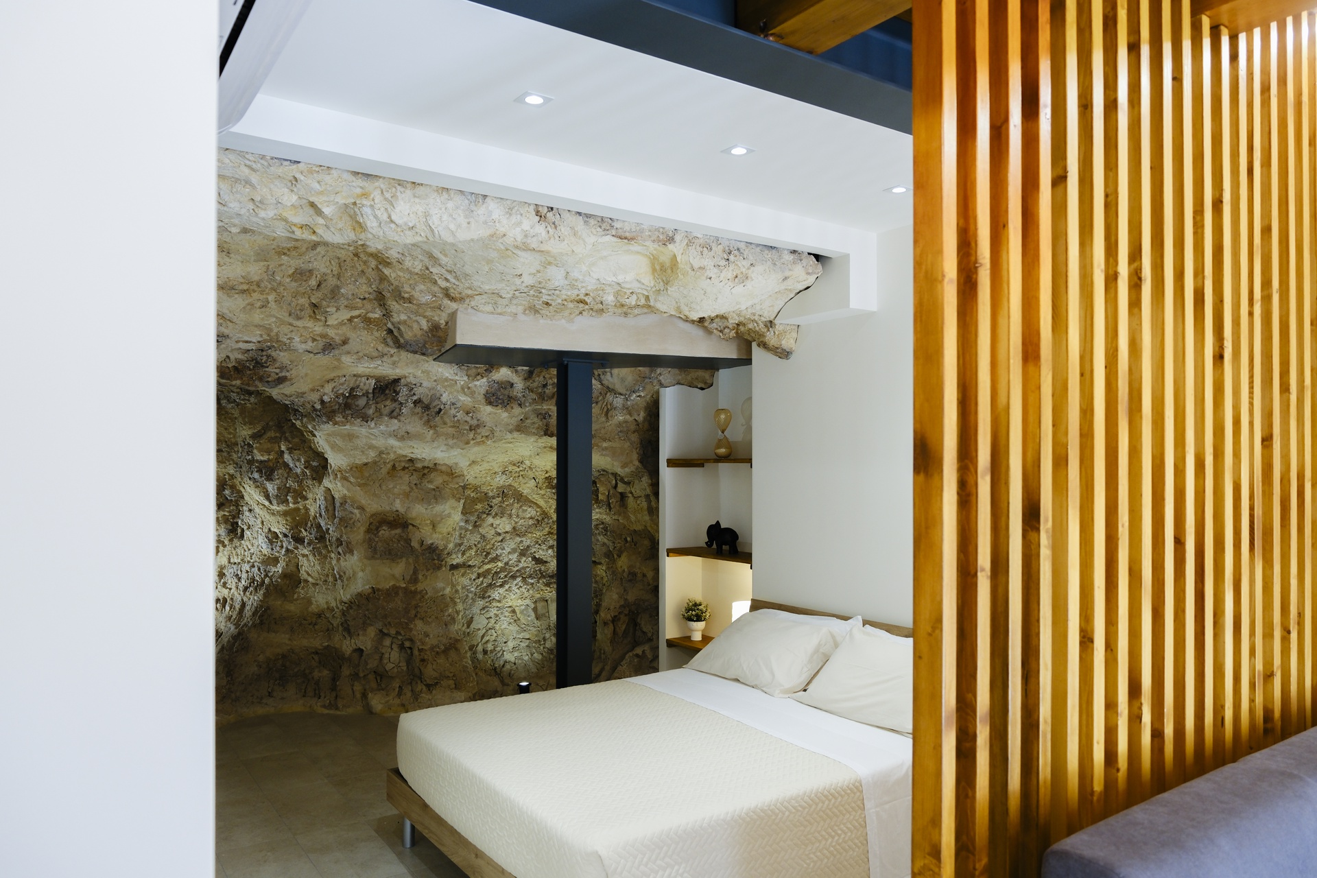 Rihal Rooms è stato un cantiere pieno di opportunità. Sito nel centro storico di Modica e arroccato fra muratura in pietra locale e grotta, si sviluppa in due ambienti separati. Il monolocale si innesta nella parte bassa dell'immobile, dove la pietra costruita dall'uomo incontra quella scavata nella natura. I materiali utilizzati mirano ad accentuare la bellezza della luce naturale e l'autenticità dei luoghi.Una piccola zona ingresso living ospita un angolo cottura che filtra la zona bedroom mediante un sistema di listelli in legno. In grotta anche il bagno e la doccia.