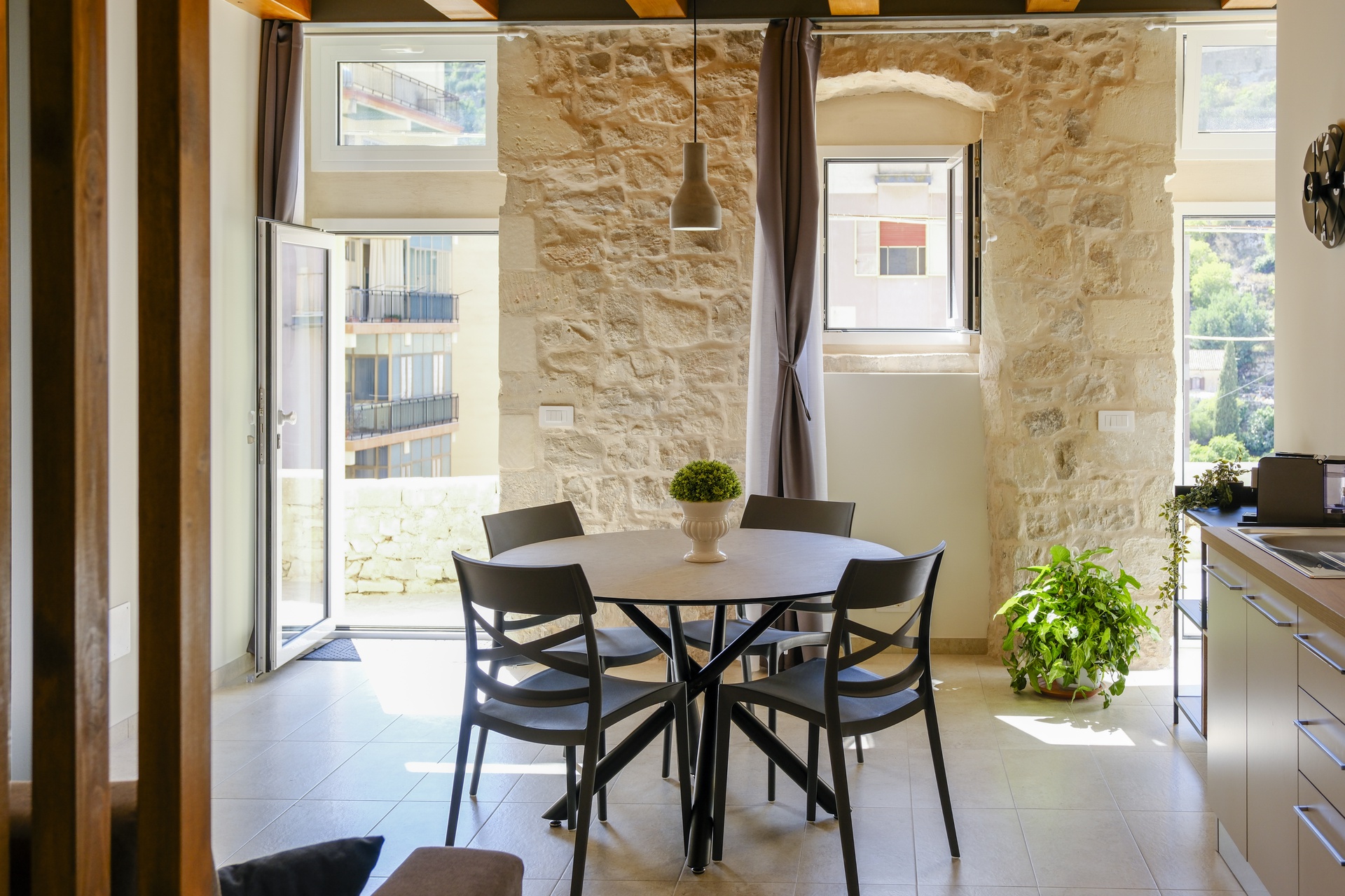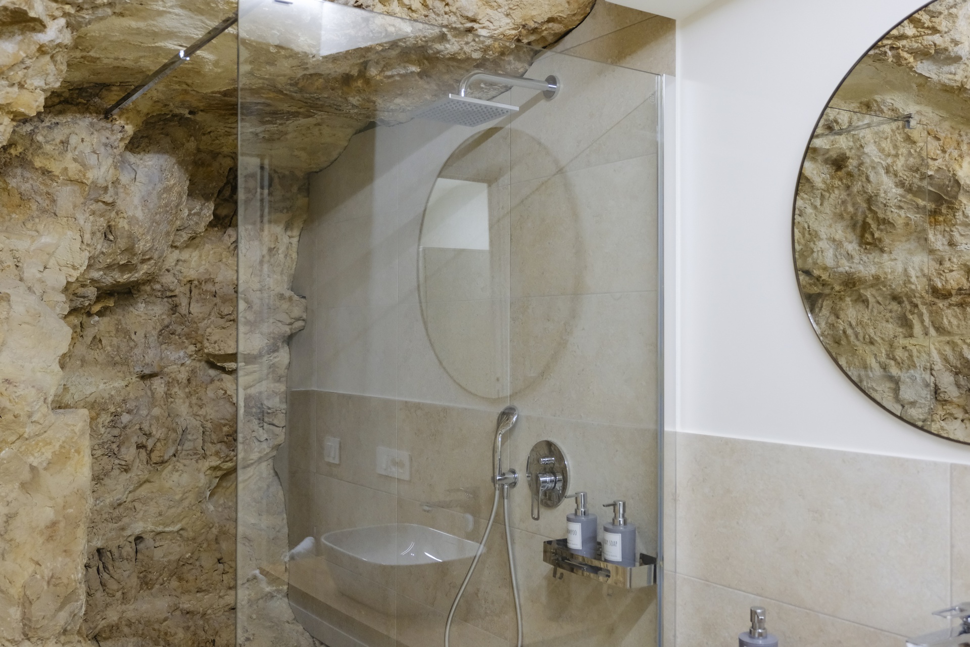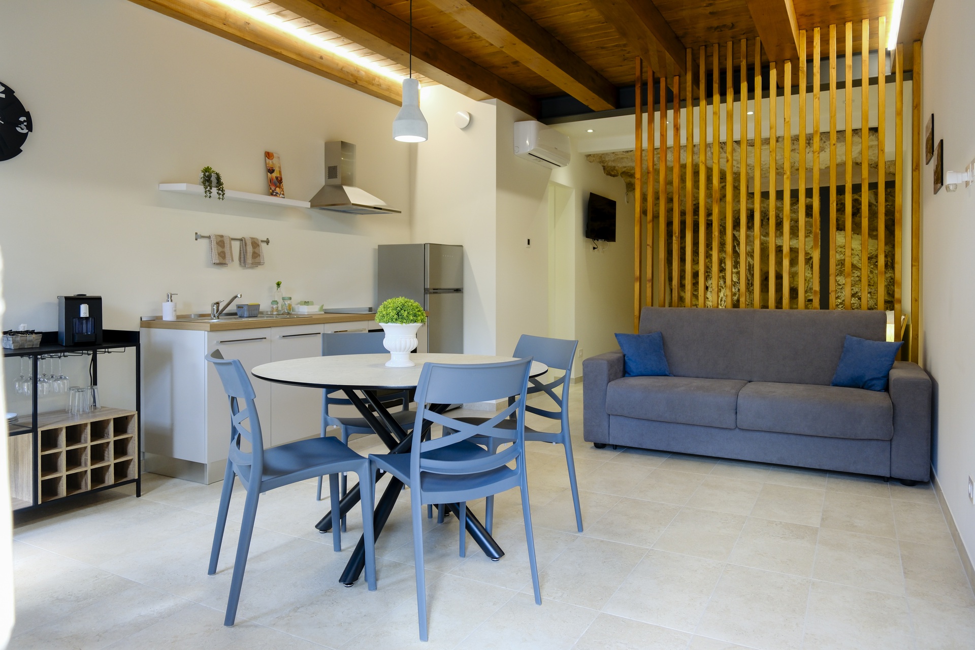 Rihal Rooms è stato un cantiere pieno di opportunità. Sito nel centro storico di Modica e arroccato fra muratura in pietra locale e grotta, si sviluppa in due ambienti separati. Il monolocale si innesta nella parte bassa dell'immobile, dove la pietra costruita dall'uomo incontra quella scavata nella natura. I materiali utilizzati mirano ad accentuare la bellezza della luce naturale e l'autenticità dei luoghi.Una piccola zona ingresso living ospita un angolo cottura che filtra la zona bedroom mediante un sistema di listelli in legno. In grotta anche il bagno e la doccia.