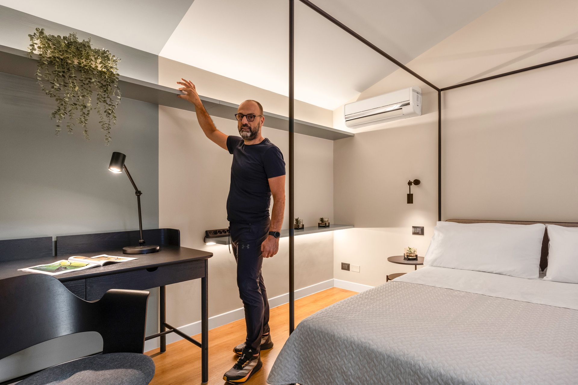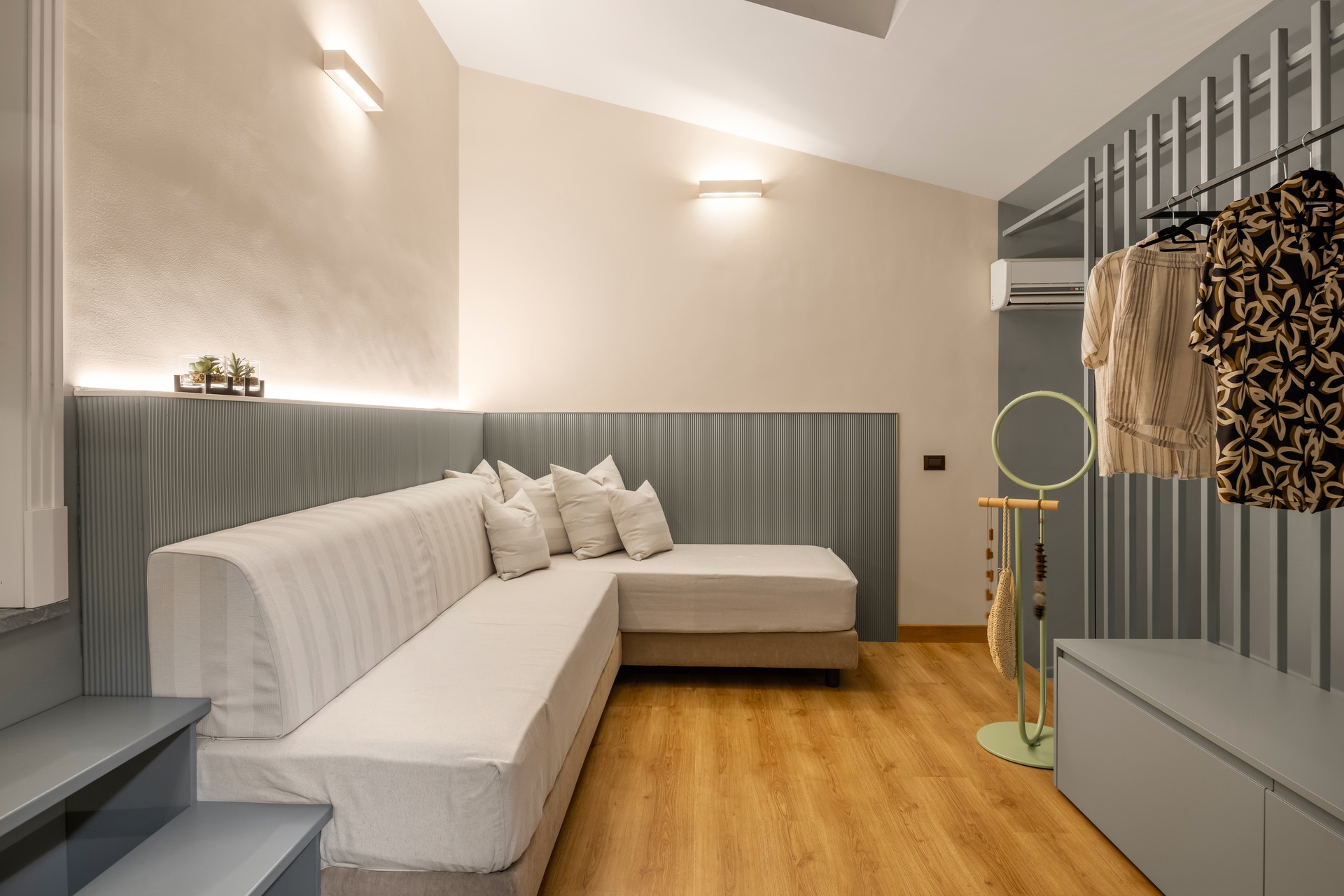 Nel cuore del centro storico, un appartamento datato è stato trasformato in una struttura ricettiva contemporanea, accogliente e funzionale.Il progetto Room&Loft nasce da una visione chiara: ottenere il massimo effetto con interventi mirati e un investimento contenuto.Ogni scelta è stata guidata dalla logica del color blocking, con accostamenti cromatici netti ma equilibrati, capaci di definire gli ambienti senza bisogno di decorazioni superflue.Gli arredi, progettati su misura, sono stati acquistati direttamente da produttori selezionati, ottimizzando il budget senza rinunciare alla qualità.Abbiamo lavorato sull’insonorizzazione degli ambienti per garantire un comfort elevato, fondamentale in ambito ricettivo. Le strutture letto, i sistemi contenitivi, l’illuminazione tecnica e l’organizzazione degli spazi riflettono il mio approccio pragmatico e orientato al risultato.Il risultato è un ambiente riconoscibile, curato, in cui ogni dettaglio è pensato per chi vi soggiorna… ma anche per chi lo gestisce.foto di Giovanni Costagliola Archifotografia, set design ed home staging Martina Traina.
