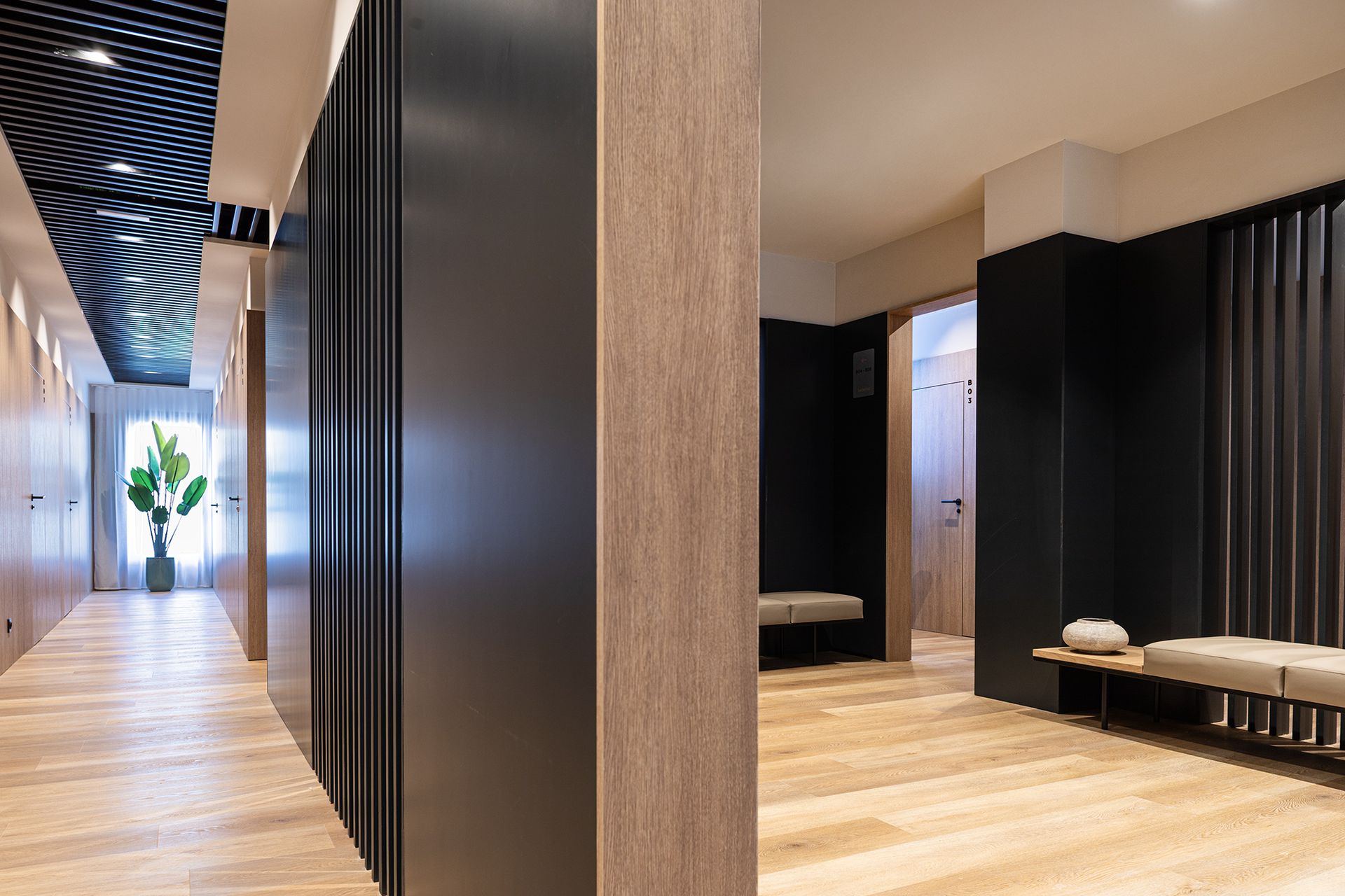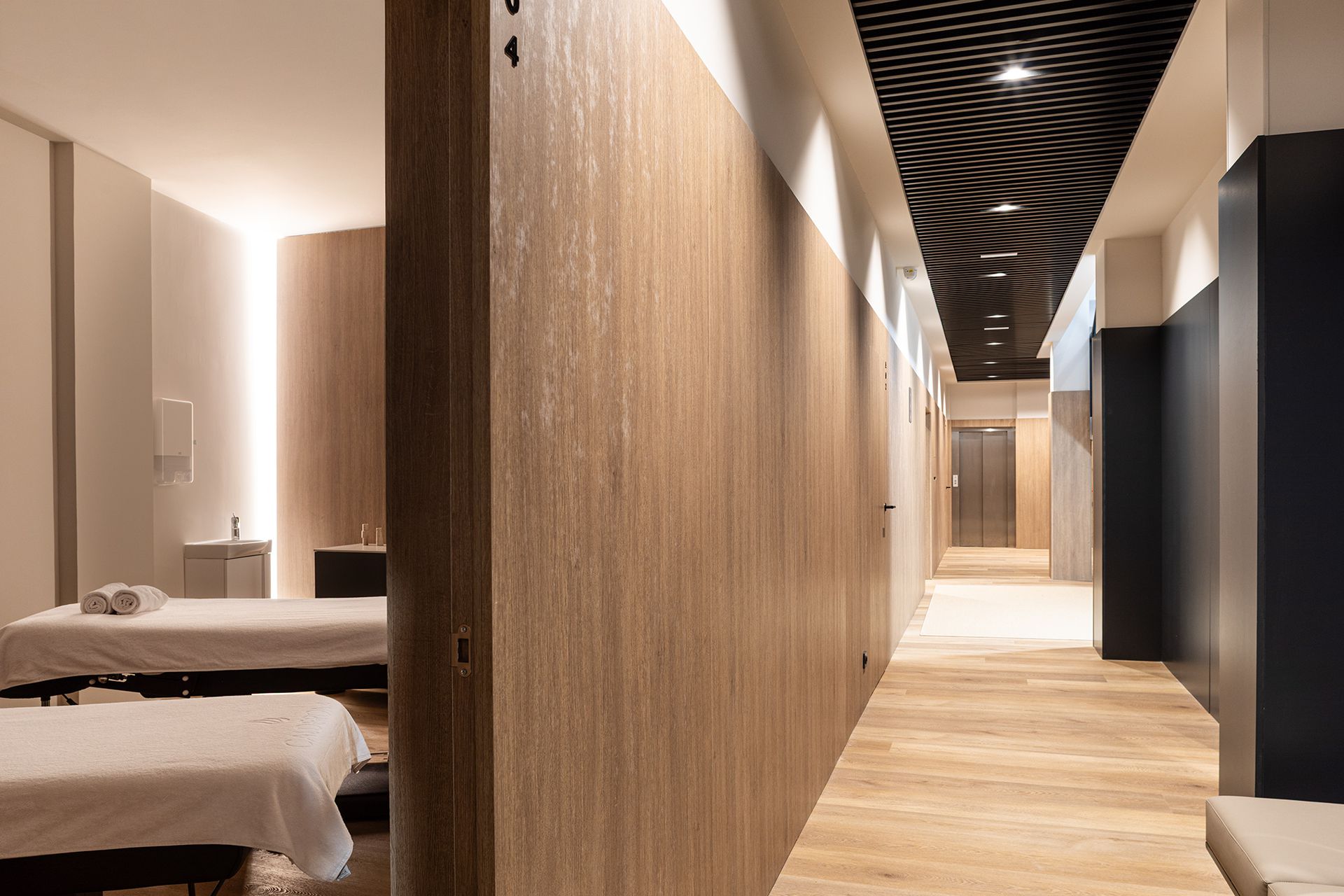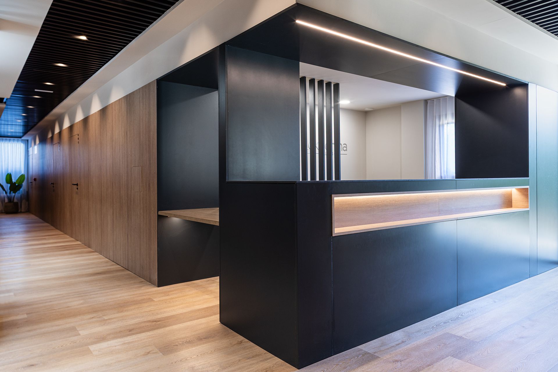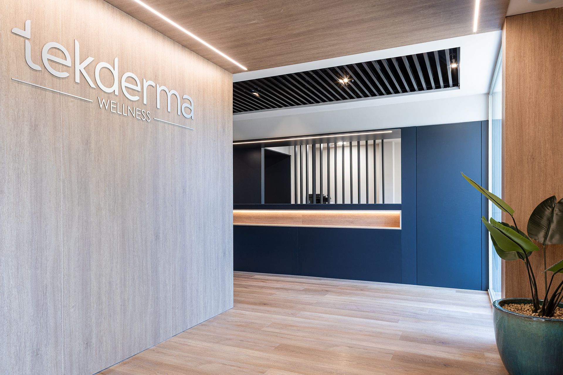 Tekderma Calderona Wellness è un centro benessere a Valencia (Spagna) concepito come uno spazio all'insegna della tranquillità, dell'eccellenza e della fiducia. La combinazione di legno scuro, tonalità di nero e blu intenso crea un'atmosfera avvolgente e sofisticata, in linea con il posizionamento premium e il prestigio del centro. Progetto e Realizzazione Binomio Arquitectura - Valencia (ES)