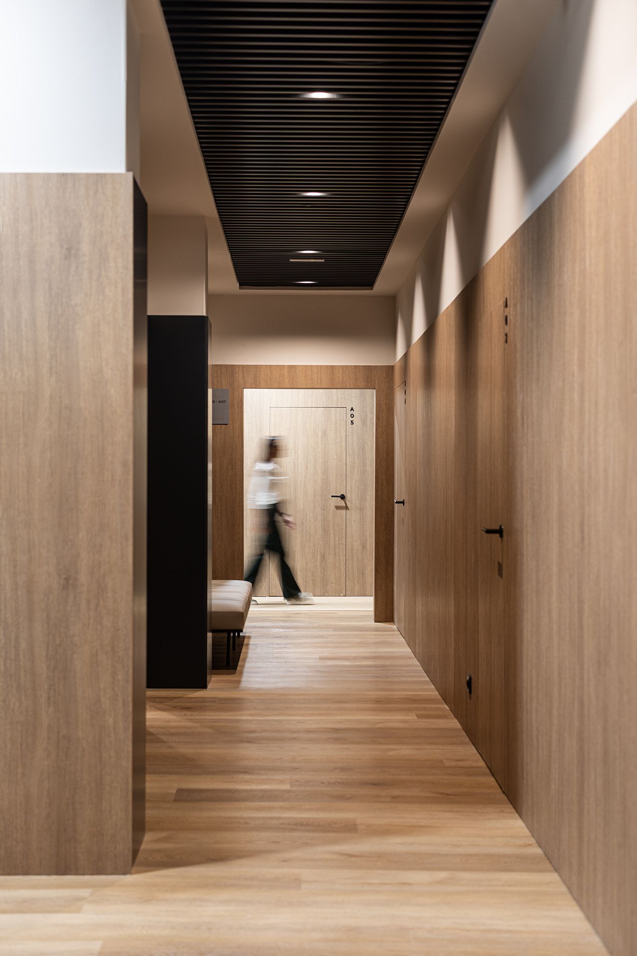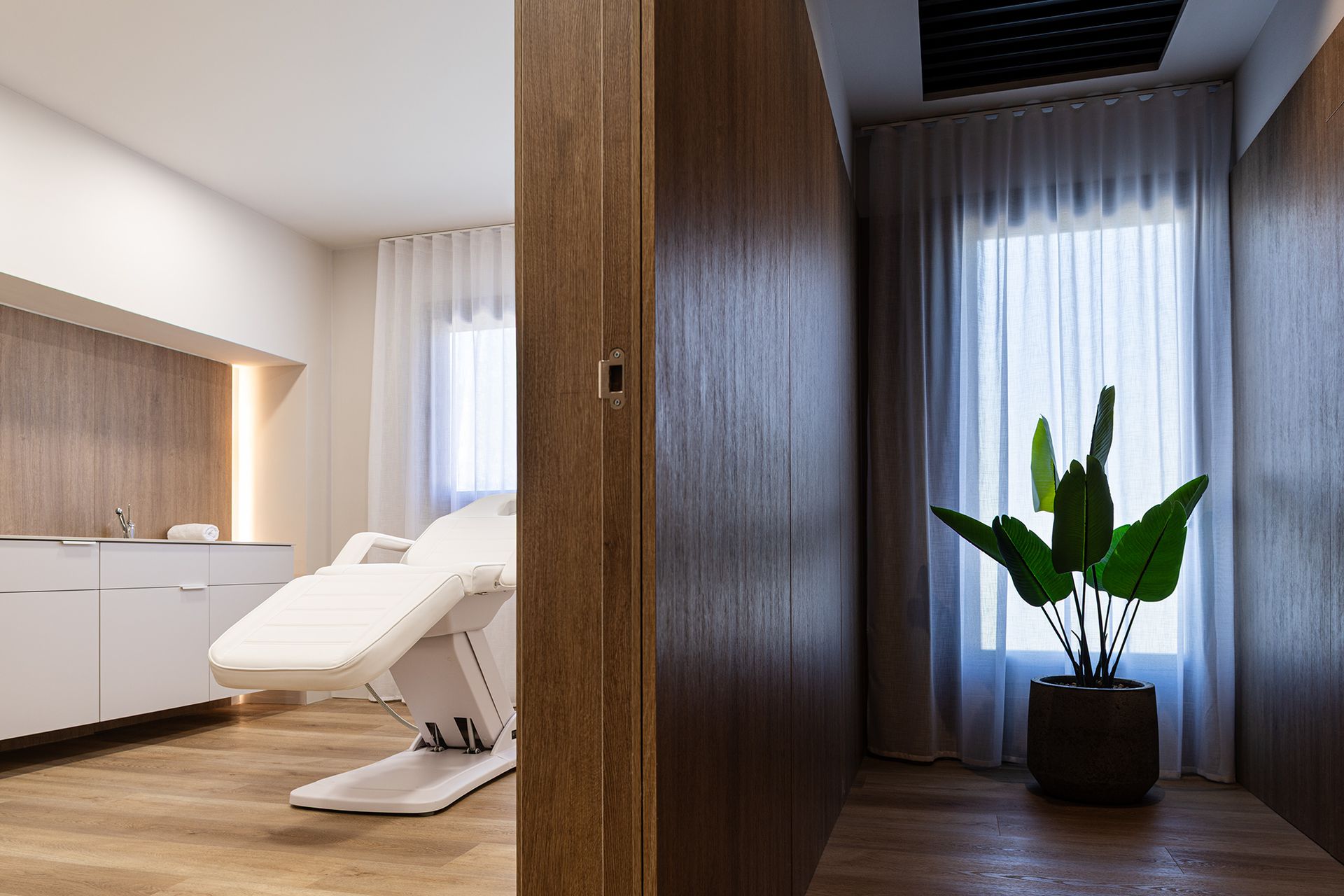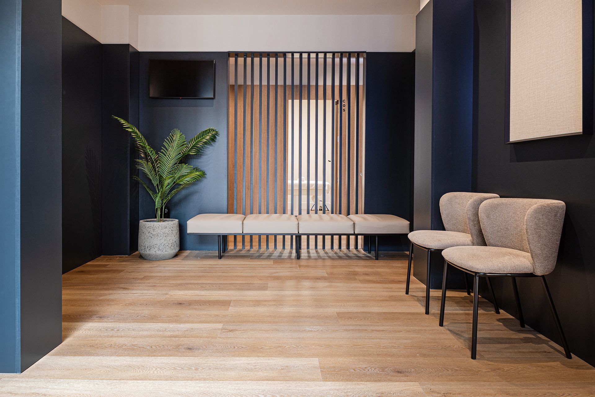 Tekderma Calderona Wellness è un centro benessere a Valencia (Spagna) concepito come uno spazio all'insegna della tranquillità, dell'eccellenza e della fiducia. La combinazione di legno scuro, tonalità di nero e blu intenso crea un'atmosfera avvolgente e sofisticata, in linea con il posizionamento premium e il prestigio del centro. Progetto e Realizzazione Binomio Arquitectura - Valencia (ES)