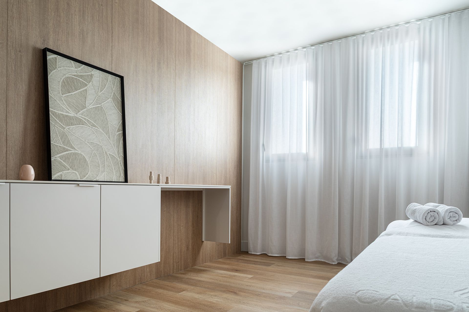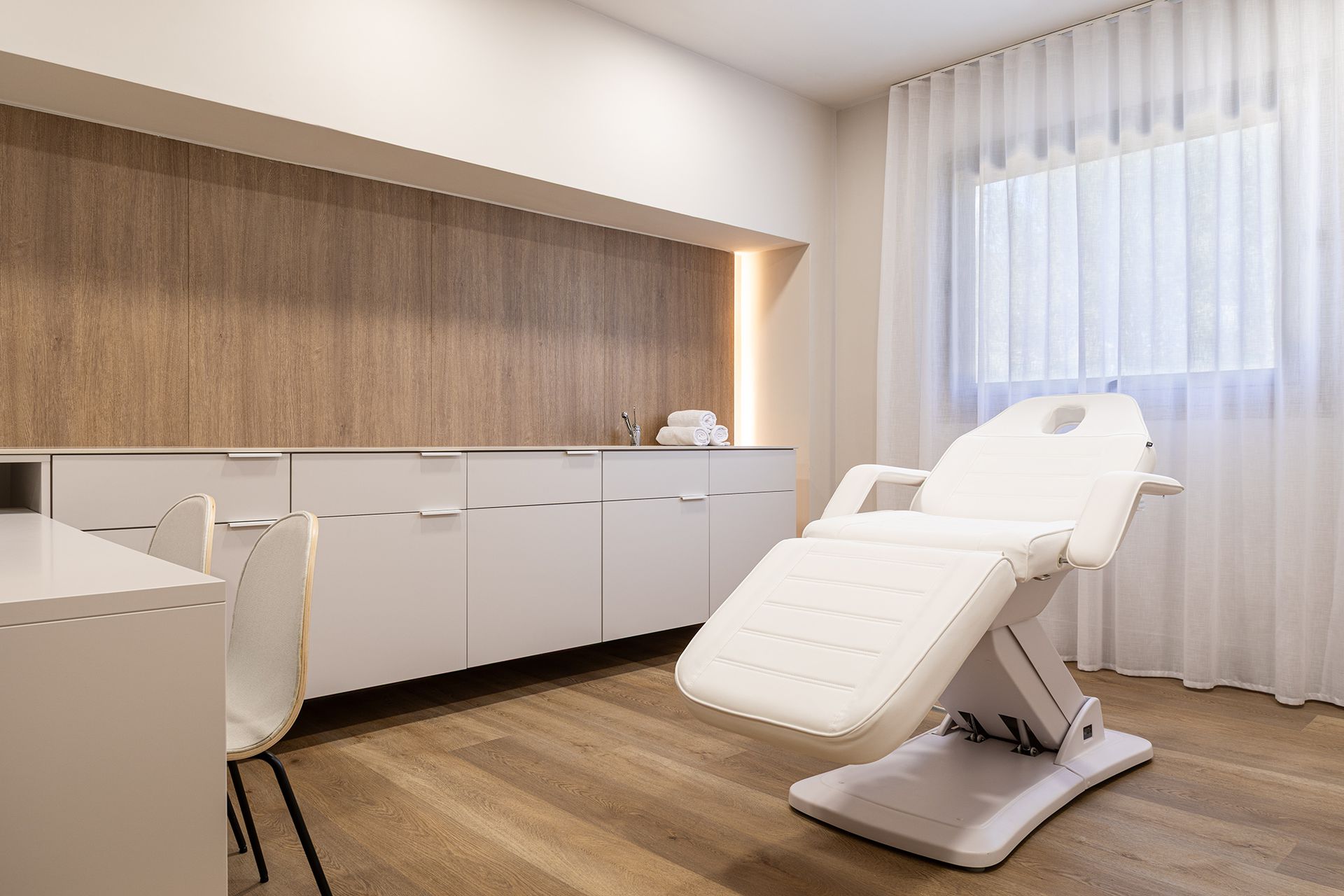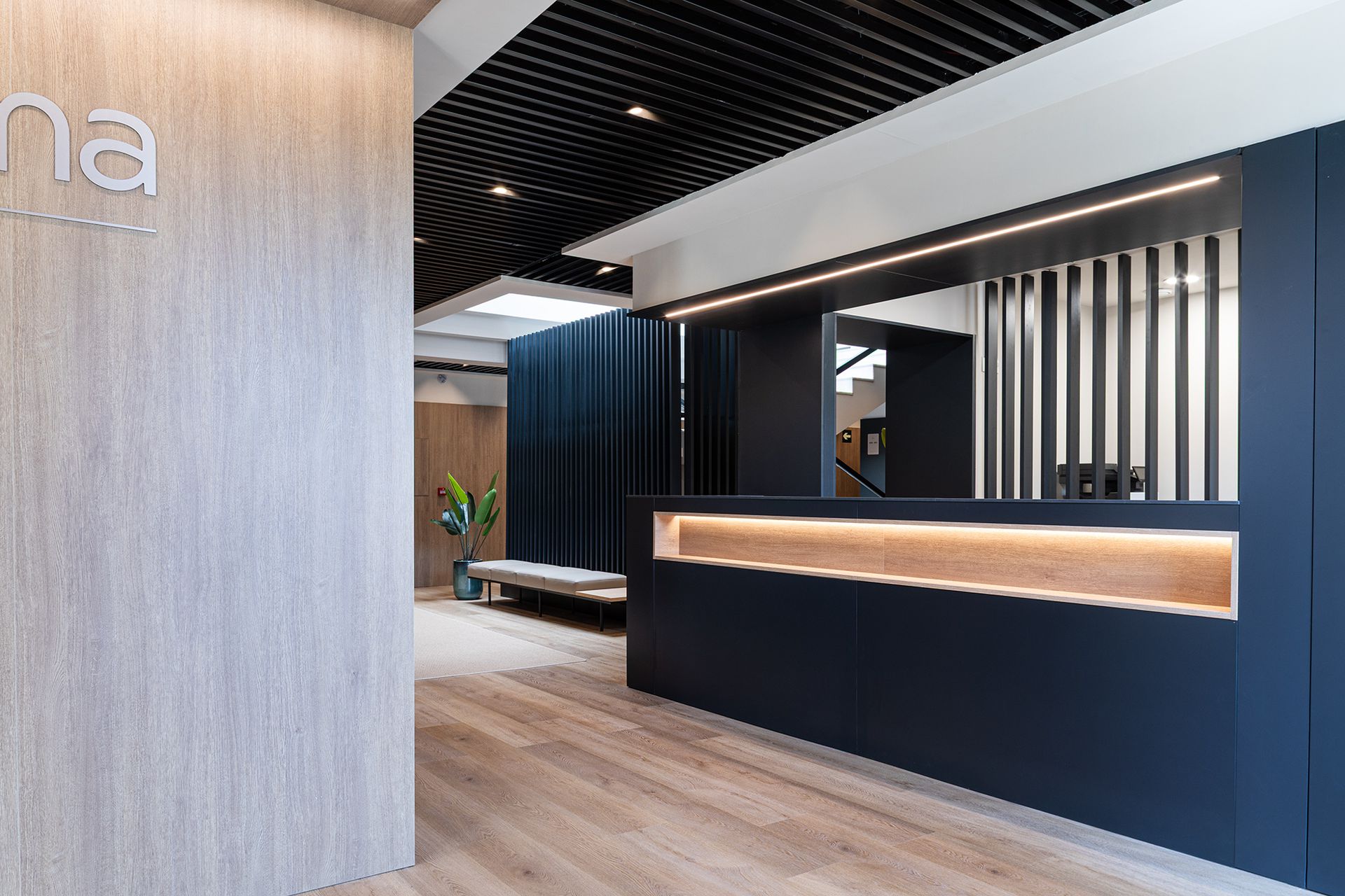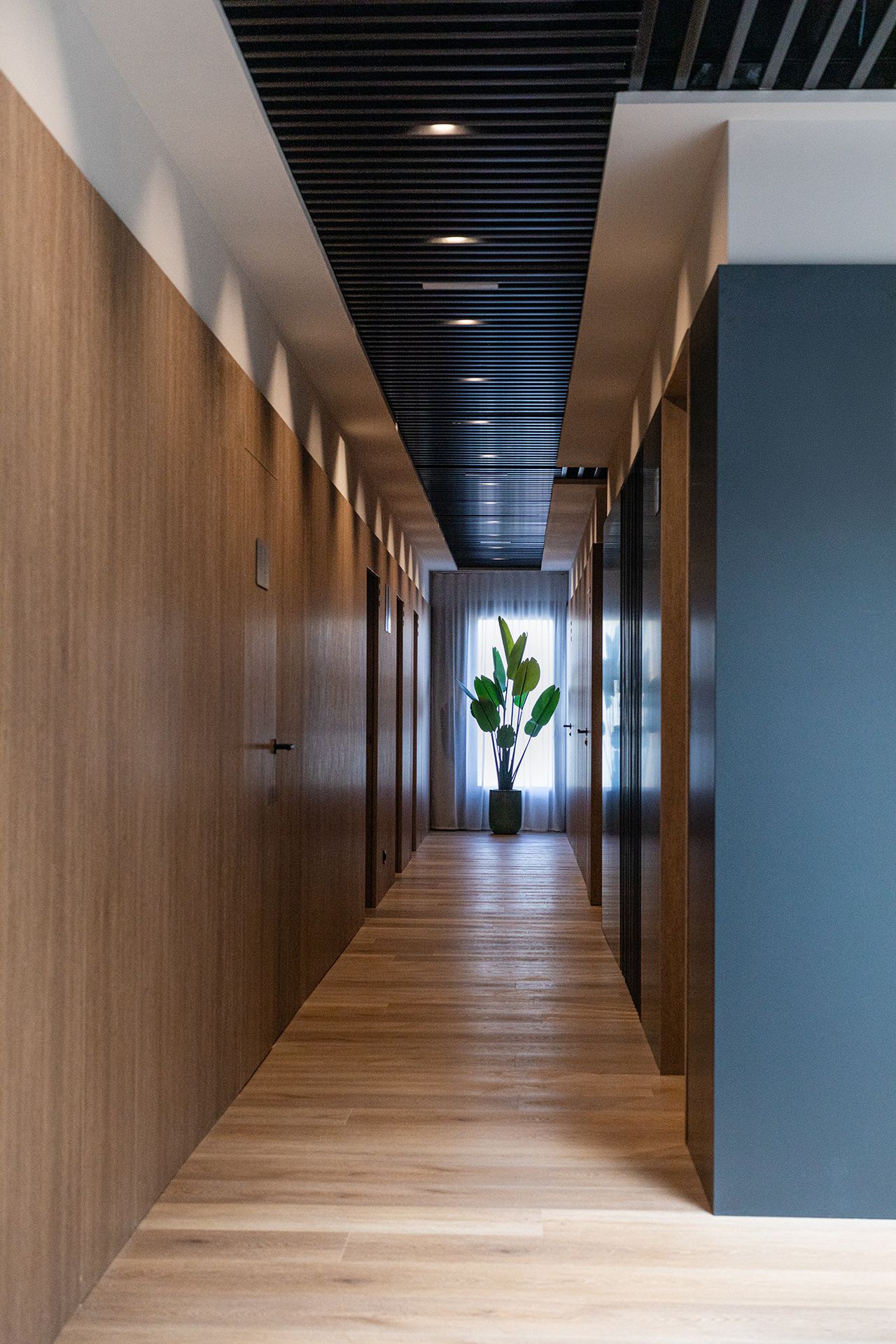 Tekderma Calderona Wellness è un centro benessere a Valencia (Spagna) concepito come uno spazio all'insegna della tranquillità, dell'eccellenza e della fiducia. La combinazione di legno scuro, tonalità di nero e blu intenso crea un'atmosfera avvolgente e sofisticata, in linea con il posizionamento premium e il prestigio del centro. Progetto e Realizzazione Binomio Arquitectura - Valencia (ES)