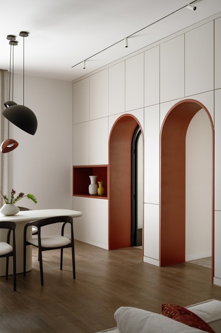 Il progetto ha trasformato un appartamento posto all’ultimo piano di un edificio anni ’50 nel centro di Reggio Emilia, da una successione di ambienti bui e tortuosi in spazi contemporanei e luminosi, attraverso un ripensamento complessivo della distribuzione interna delle zone giorno e notte.La zona giorno è percepita come un unico grande ambiente dove un volume centrale, colorato e sormontato da una vetrata continua, articola le funzioni: dall’ingresso infatti ci si direziona liberamente verso la zona pranzo e cucina caratterizzata da una successione fluida di tavolo tondo con sedute morbide, isola con sgabelli e cucina; tornando sui propri passi e ripassando dall’ingresso ci si trova nel soggiorno occupato da un grande divano e angolo televisore. All’interno del volume centrale si trova il bagno per gli ospiti: di sera diventa una lanterna nella zona giorno attraverso un sistema di illuminazione integrata nelle vetrate.Un varco nel soggiorno permette poi di accedere attraverso il piccolo disimpegno della zona notte alla due camere da letto, di cui la principale con cabina armadio e bagno privato.Il volume centrale alla zona giorno è caratterizzato esternamente da un tinteggio verde, colore che è ripreso con varie sfumature in molti ambienti della casa: il tono salvia perimetra il bagno, una nota più profonda crea un fondale alla mensola sopra lavandino e piano cottura oltre a definire l’isola della cucina; infine un tono verde bosco è stato scelto per tutta la parete a testiera del letto nella camera principale.L’illuminazione è stato studiata secondo scenari che uniscano luce naturale e artificiale, in particolare il volume del bagno centrale alla zona giorno è caratterizzato da una continuità di vetrate che garantiscono l’apporto di luce naturale e attraverso un sistema di illuminazione lineare e indiretta è stato creato un giocoso effetto di scatola luminosa visibile da tutte le aree della zona giorno.