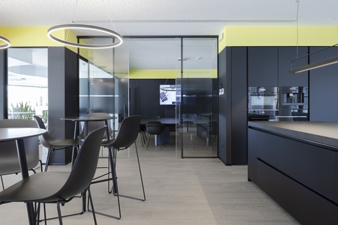 Restyling per un nuovo spazio aziendale. Creazione di spazi meeting ed eventi aziendali , sale riunioni private . Listelli di legno verticali creano una nuova veste aziendale.