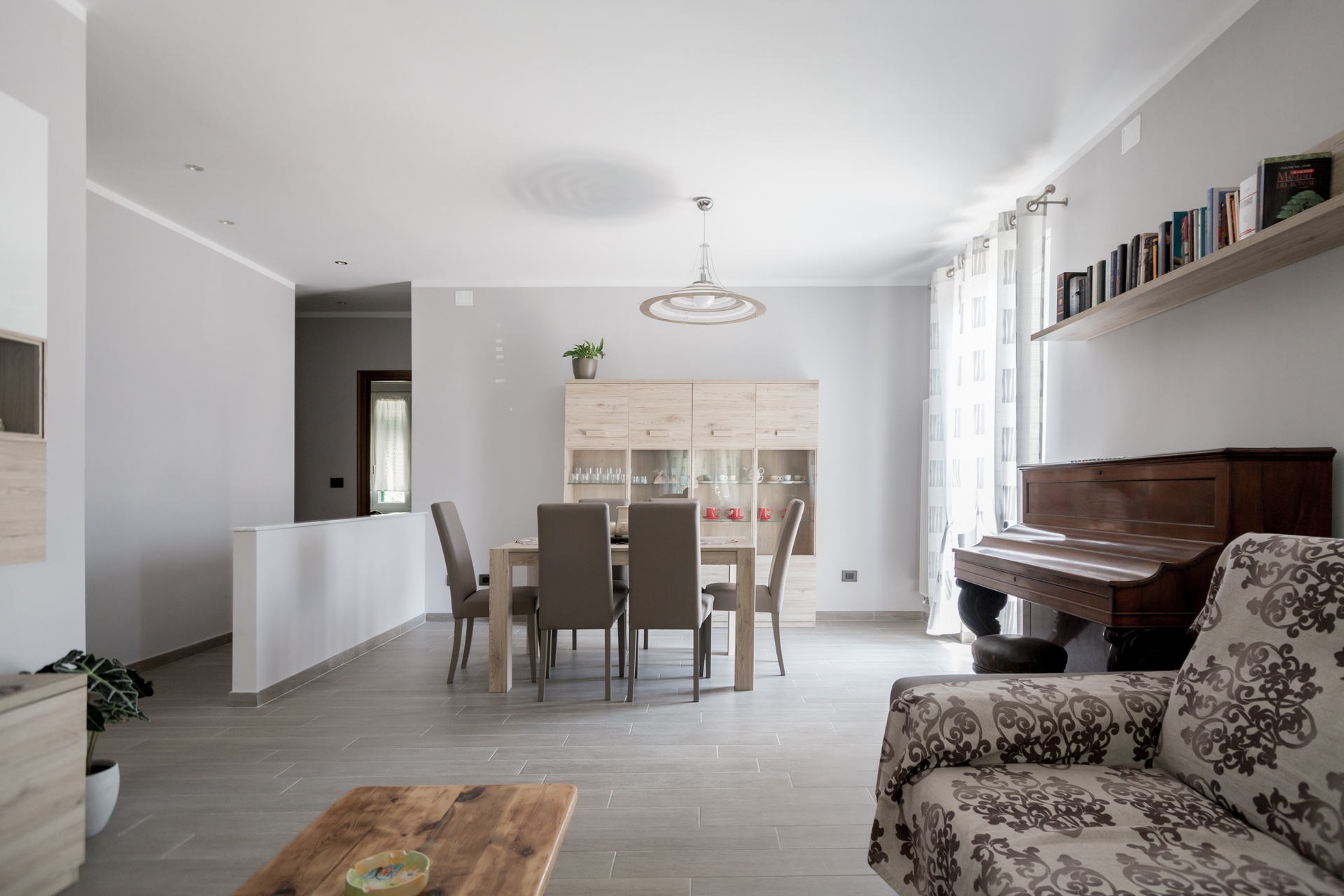 2016-17L'appartamento si trova immerso nel verde nella vallata del Comune di Serra Riccò, in una villetta bi famigliare contornata da spazi aperti terrazzati e ricchi di verde, piante e fiori.L'appartamento è situato al primo piano e l'impianto risale ad un vecchio progetto di una casa contadina dell'inizio del secolo scorso. Per questo motivo l'abitazione era caratterizzata da un susseguirsi di stanze piccole distribuite da un corridoio buio e stretto.Ogni stanza presentava una pavimentazione differente e un arredo diverso per stile e colore.Particolare molto interessante era la possibilità di avere a disposizione delle finestre ampie e presenti in ogni ambiente.Con poche demolizioni, uno studio attento del colore e dell'arredo è stata fatta una vera e propria rivoluzione pur lasciando l'organizzazione distributiva iniziale.Il cuore della casa è rimasto il soggiorno ma grazie alla demolizione del corridoio e delle tramezze della zona giorno, si è riusciti ad avere un soggiorno open con la zona pranzo in connessione con l'ingresso. Il corridoio di distribuzione si è ridotto, lasciandolo solo nella zona più privata della casa, la zona notte.Con le demolizioni attuate e l'uso sapiente dei colori, l'appartamento ha subito un totale refit che gli ha regalato un'atmosfera luminosa e chiara. I colori scelti oltre al bianco sono state tutte le tonalità dell'azzurro e dei grigi. La pavimentazione in gress effetto legno sbiancato grigio, è stato usato per tutta la casa andando così a definire un piano calpestabile omogeneo ed unico. Un unico pavimento allarga e dilata lo spazio creando una sensazione molto piacevole di apertura e vivibilità.Gli arredi di color legno allegeriscono i toni colorati della casa dando all'intera composizione il sapore della campagna seppur con forme moderne e pulite. Unica eccezione è l'ambiente della cucina che ritorna al sapore tradizionale quasi shabby chic con legni chiari e forme romantiche, dettagli azzurri poi richiamano il colore predominante dell'interior design. Progetto, studio colore e composizione, Dir. Lavori: ARCH. V. SOLERAImpresa: PROGETTO CASA - TECNO EDILE DI RAFFAELE THOMPSONFotorgrafie: VIOLA CAFUL fotografa