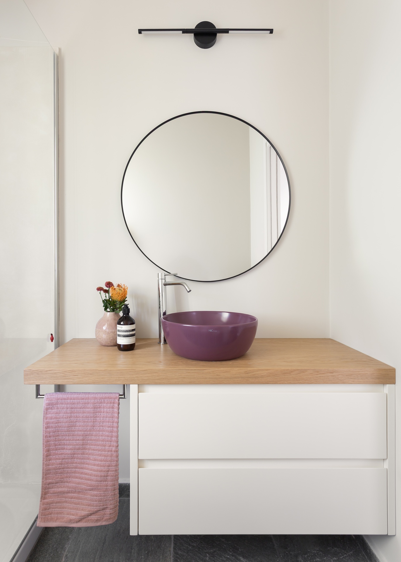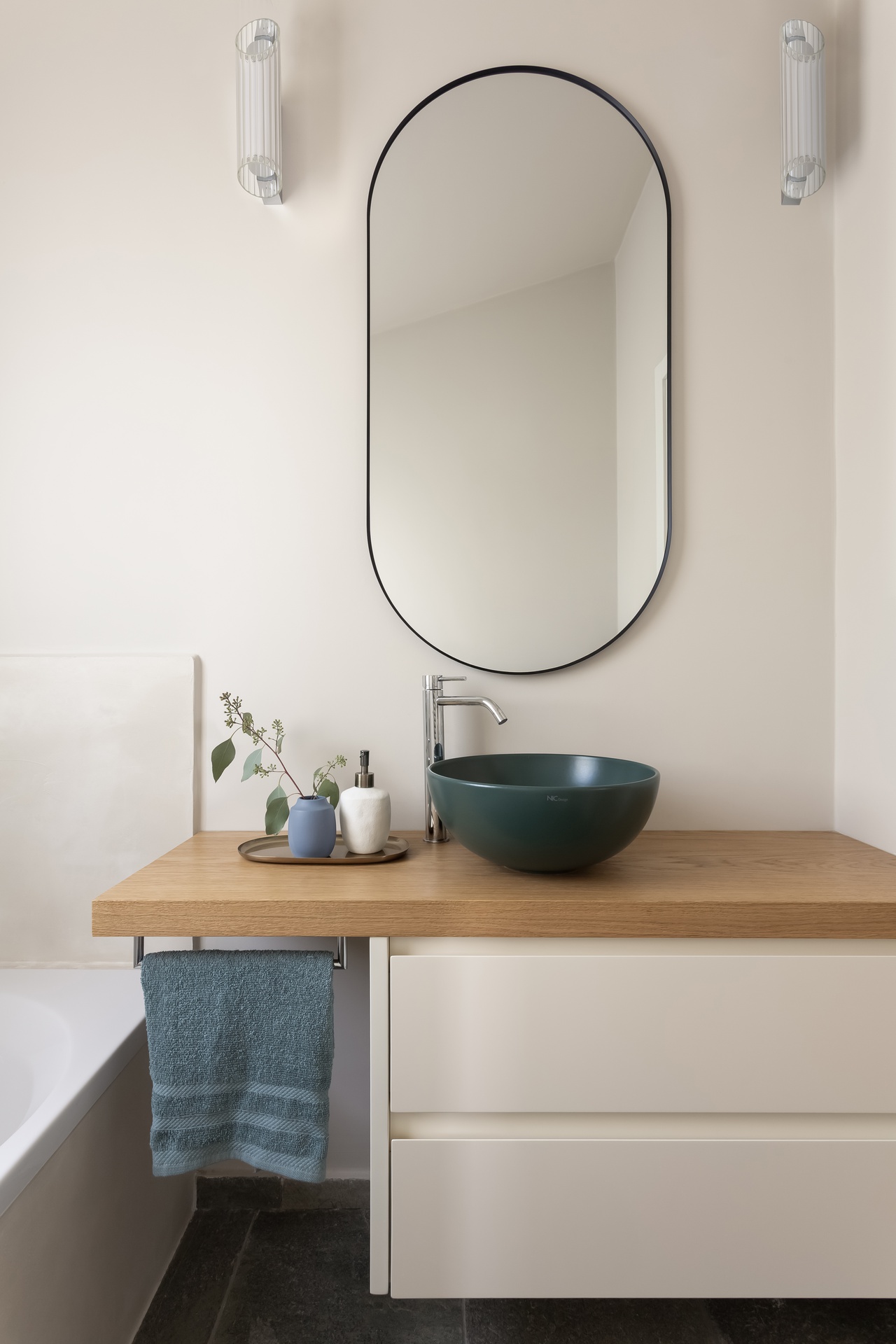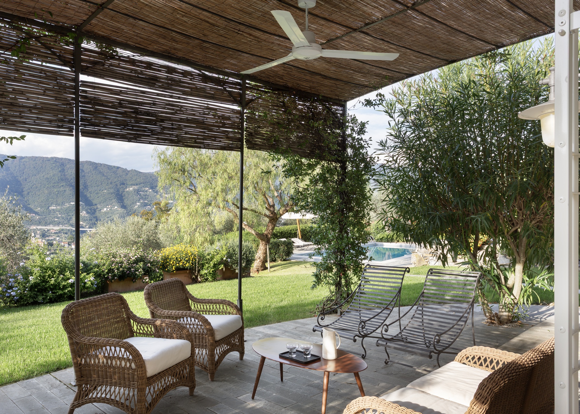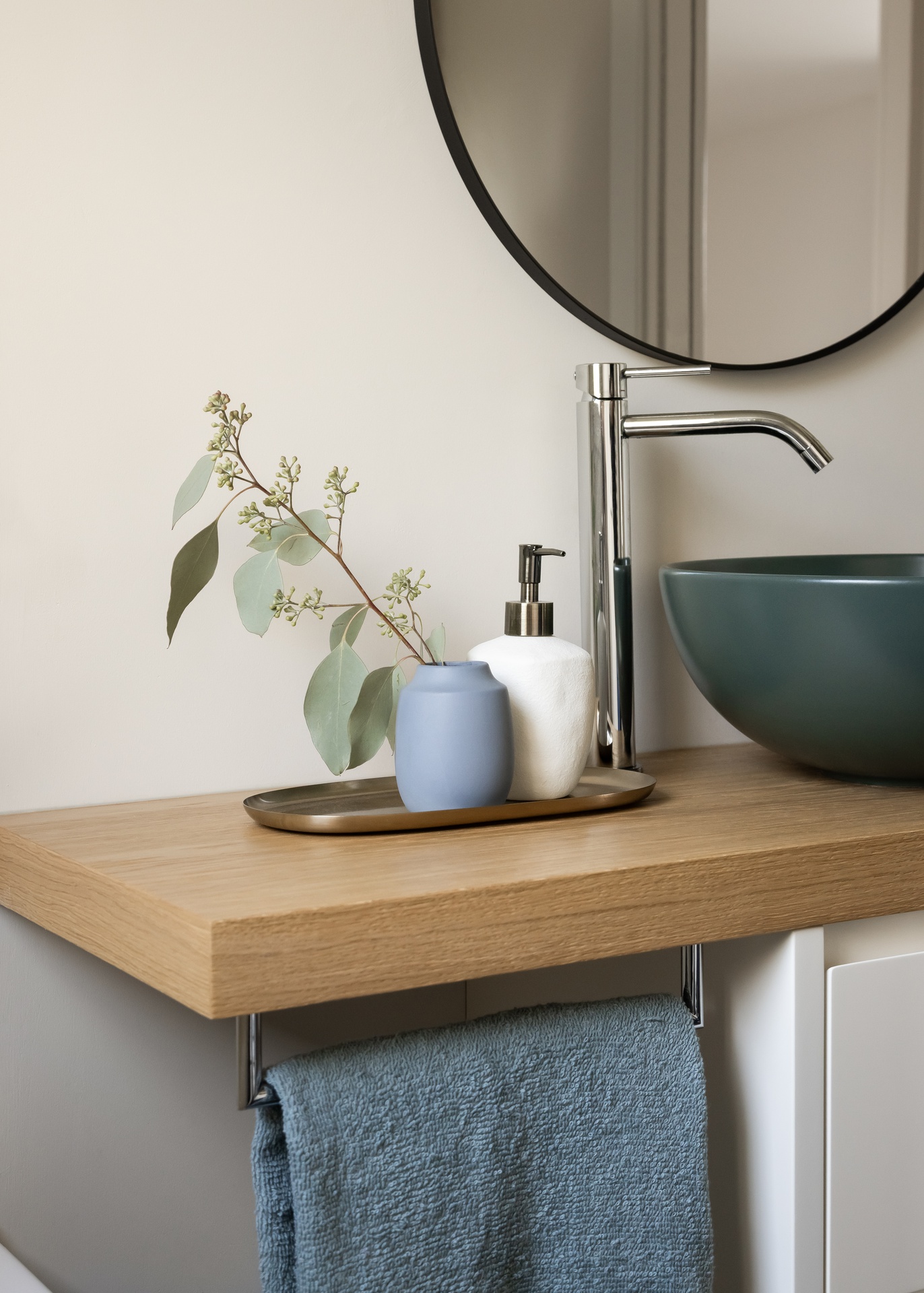 Il progetto di questa casa al mare rielabora gli interni senza alterare la struttura originale, puntando su materiali, colori e dettagli capaci di ridefinirne l’identità. Il camino, trasformato in elemento scultoreo, diventa il fulcro della zona giorno. Una palette calda e neutra, con pietra, legno e intonaci morbidi, richiama il paesaggio naturale e valorizza la luce. Arredi essenziali e tessuti naturali creano un’atmosfera equilibrata, mentre l’illuminazione discreta accompagna i diversi momenti della giornata. Nella zona notte prevalgono tonalità più avvolgenti — verdi, grigi e legno — arricchite da dettagli in ottone, per un ambiente intimo e rilassante. I bagni, completamente ridisegnati, riprendono lo stesso linguaggio materico con contrasti eleganti e moderni. In sintesi, la casa esprime un equilibrio tra semplicità, eleganza e dialogo con il paesaggio, offrendo uno spazio sereno e armonioso che riflette lo spirito della vita al mare.
