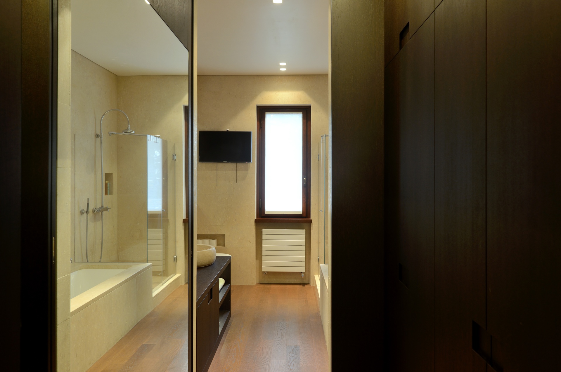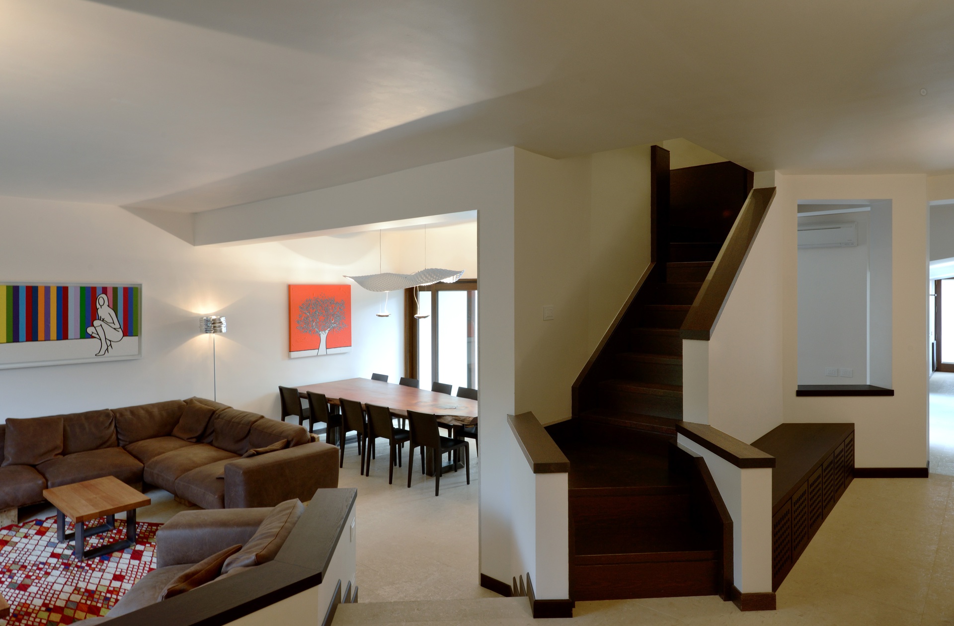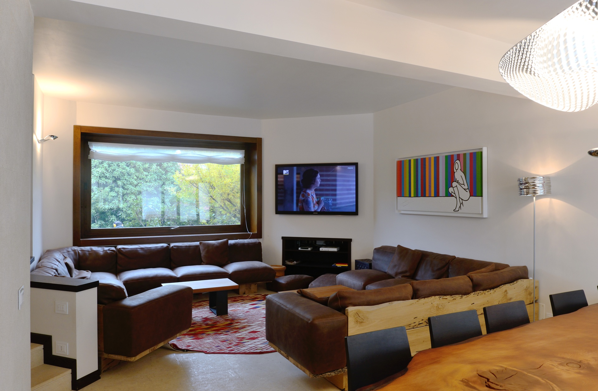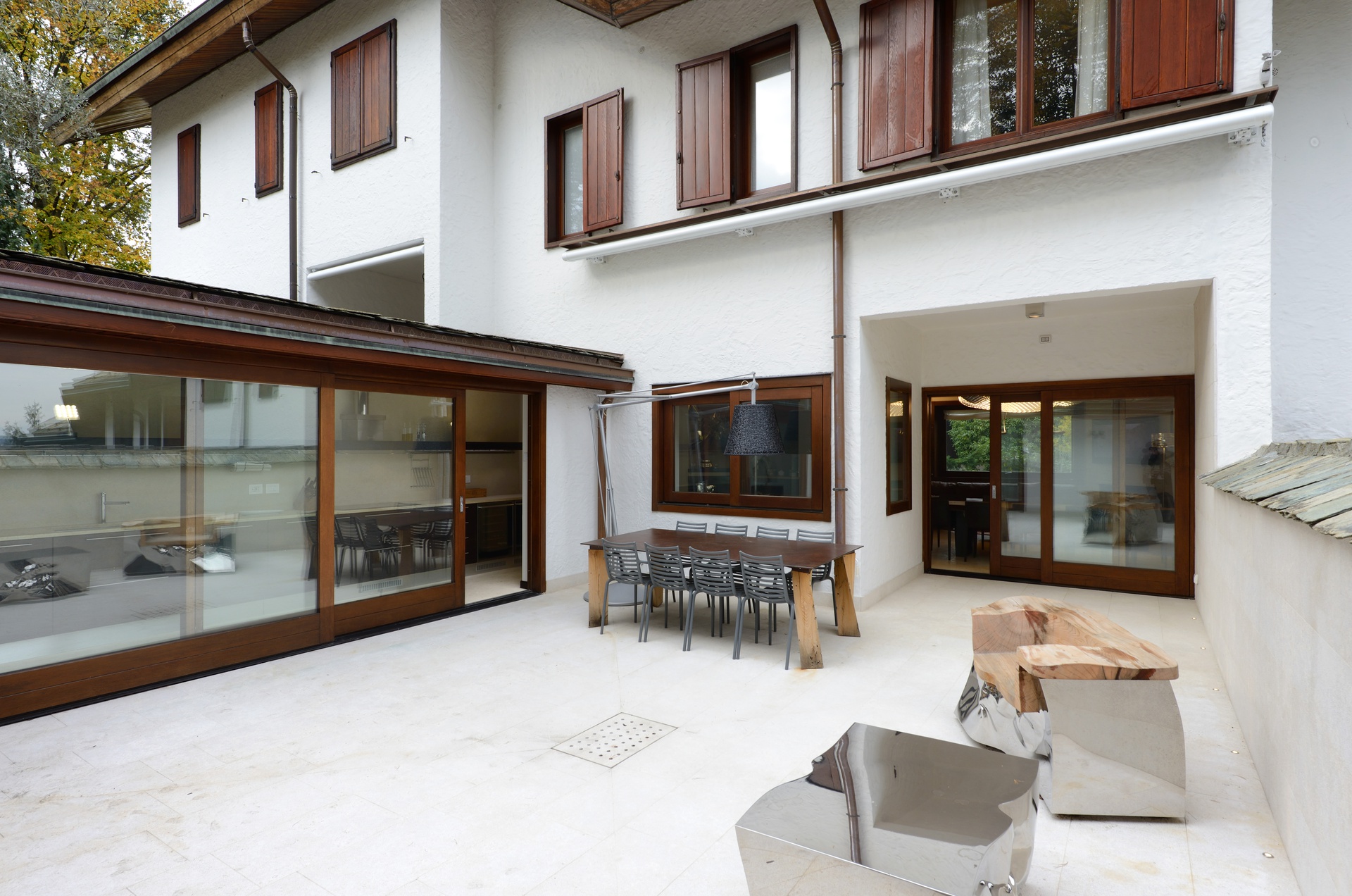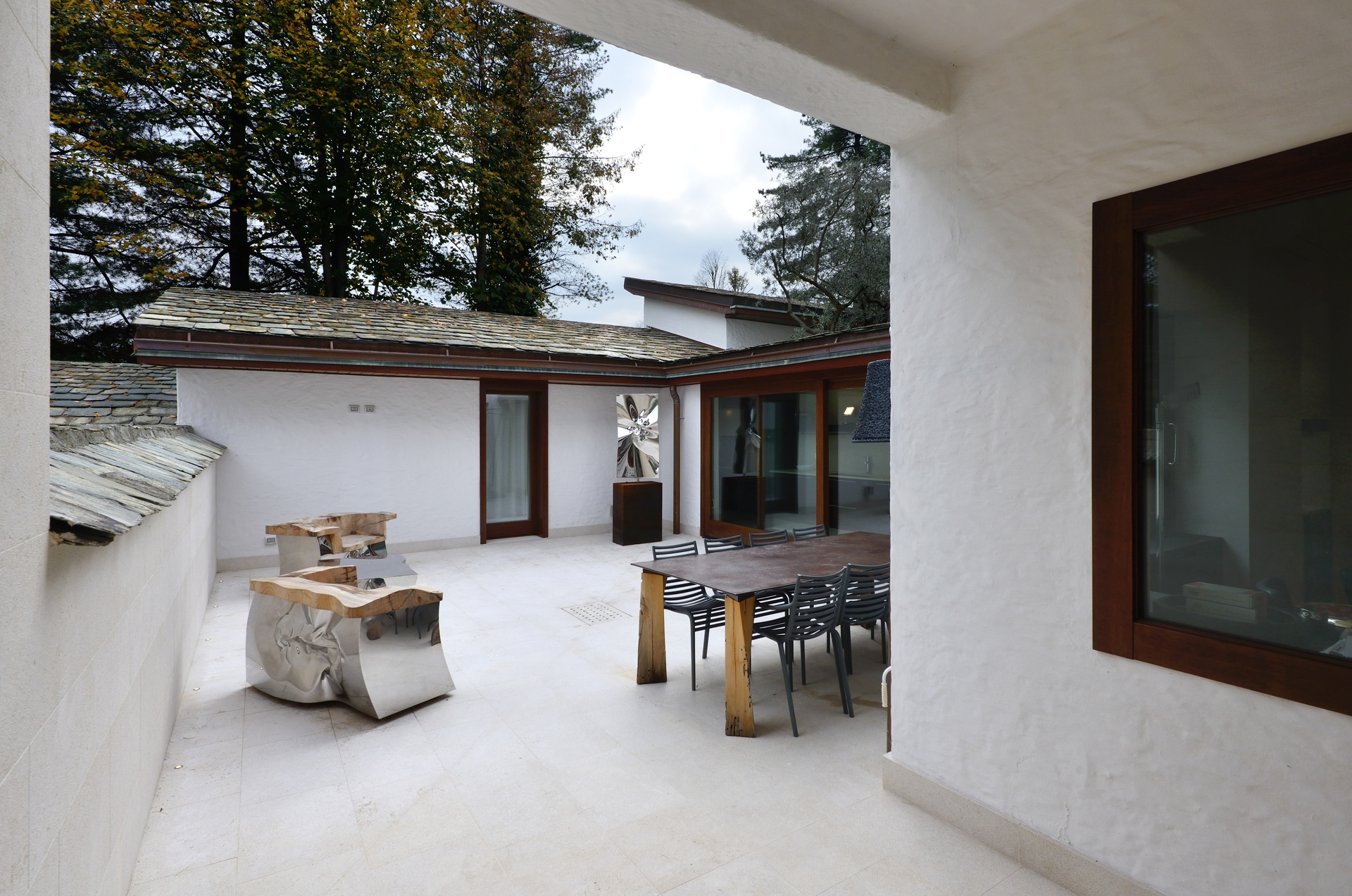 Il Golf Club Barlassina è situato all'interno del parco delle Groane, a nord-ovest di Milano. Il progetto del 1956 della Golf House e del campo sono di Luigi Vietti e John S.M. Morrison; nel 1968 Joe Colombo realizzò il progetto di interni per una piccola unità di cui purtroppo rimane traccia solo nelle riviste d'epoca. La villa è parte di un insieme di case unifamiliari che si dispongono lungo il naturale declivio della collina e che furono progettate per i soci del Club. La casa era originariamente concepita con due corpi di fabbrica uniti da un lungo corridoio che si affacciava sul patio centrale. Nel primo edificio, di due livelli, erano collocate le aree living e notte. Il secondo edificio ospitava una piccola cucina con dispensa e una stanza per il personale di servizio. L’obiettivo del progetto è stato quello di mettere in relazione le due unità abitative, trasformando il corridoio in una cucina affacciata sul patio interno e ricavando al contempo un piccolo appartamento indipendente per gli ospiti. Il patio viene concepito come una vera e propria stanza all’aperto, in continuità con gli ambienti interni, grazie all’utilizzo degli stessi materiali e finiture.I materiali utilizzati sono la pietra di Vicenza, per pavimenti e rivestimenti, e il noce per gli arredi su misura. Il grande tavolo da pranzo è realizzato in un unico piano di legno millenario Kauri e la struttura dei divani in briccole di Venezia recuperate.