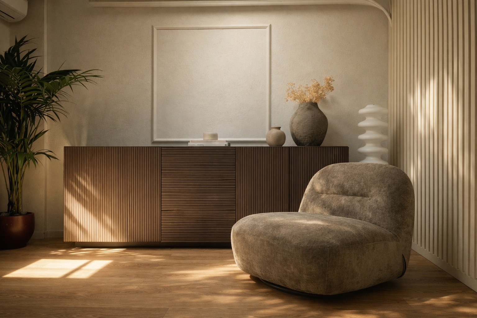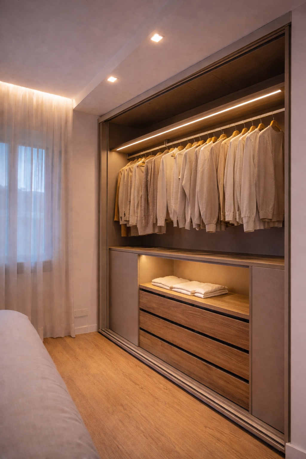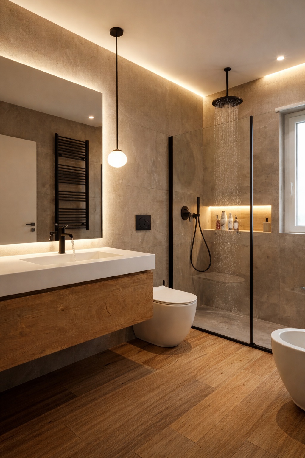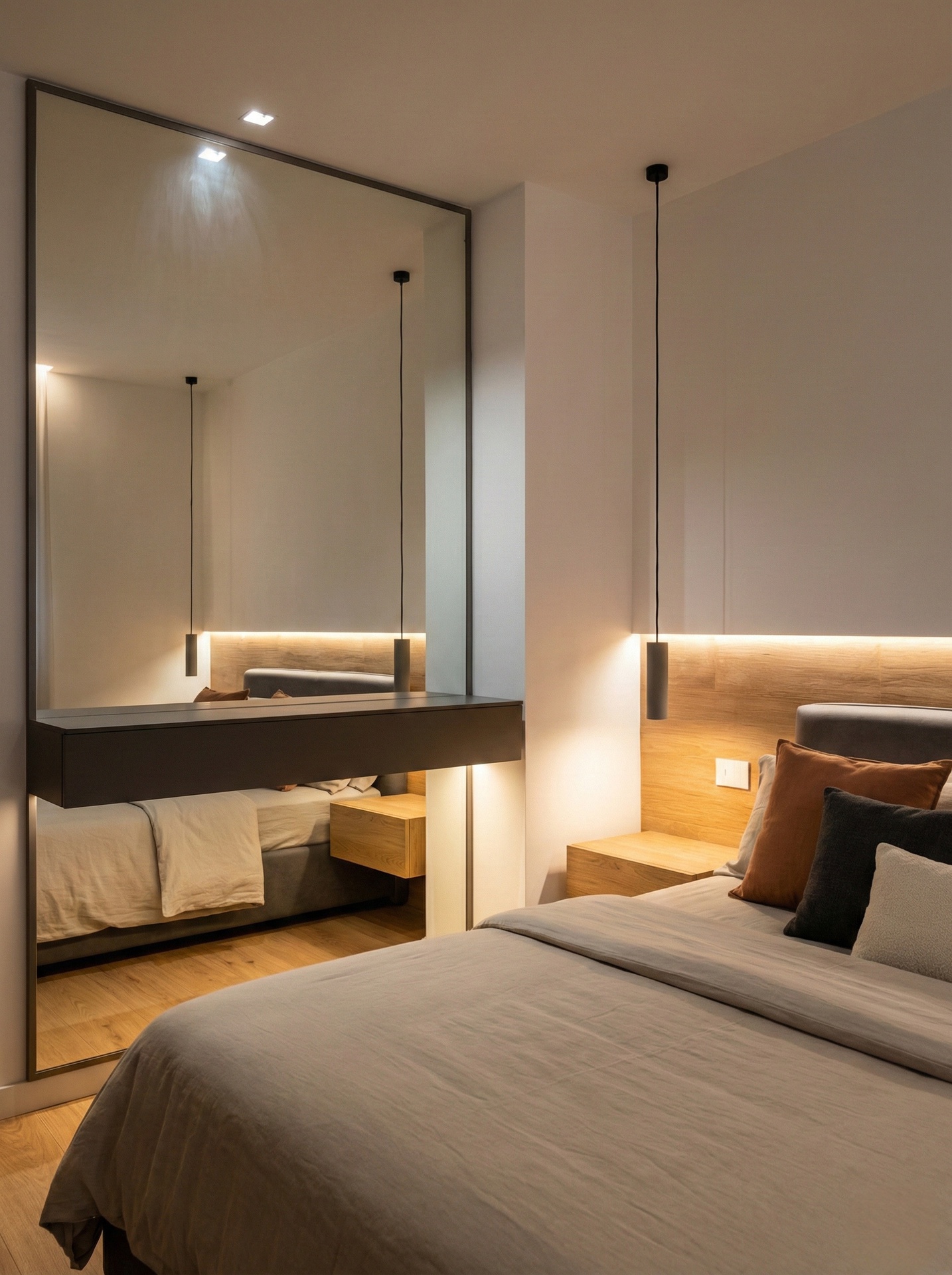 Questo progetto rappresenta la perfetta sintesi tra eleganza contemporanea e calore domestico. L'obiettivo era creare un ambiente che fosse al contempo sofisticato e profondamente accogliente, dove la luce gioca un ruolo da protagonista assoluta.Il fil rouge dell'abitazione è l'uso materico del legno: dalle boiserie cannettate che ritmano i corridoi nascondendo i passaggi, al parquet che scalda ogni stanza, fino ai dettagli della cucina. La zona giorno è un open space fluido, dove il living si raccoglie attorno a un camino minimale e nicchie retroilluminate, mentre la sala da pranzo è impreziosita da un lampadario scultoreo a cerchi intrecciati che dialoga con le tonalità cognac delle sedute.La cucina, bianca ed essenziale, diventa un punto privilegiato di osservazione: la grande finestra incornicia il paesaggio e lascia entrare la "golden hour", trasformando la preparazione dei pasti in un momento magico.In questo progetto, l'architettura non si limita a definire gli spazi interni, ma diventa una cornice per la natura circostante. Il vero cuore pulsante della villa è il dialogo ininterrotto tra in e out: le ampie vetrate scorrevoli a tutt’altezza smaterializzano i confini, trasformando il giardino in un’estensione naturale del living e della cucina.L'esterno è stato concepito secondo la filosofia del Dry Garden, una scelta consapevole che unisce sostenibilità ed estetica. Non un semplice giardino ornamentale, ma un ecosistema resiliente progettato per prosperare con un ridotto fabbisogno idrico. La selezione botanica privilegia essenze autoctone e piante rustiche, capaci di adattarsi al clima e di resistere agli stress termici senza rinunciare alla bellezza.Questo approccio paesaggistico regala una scenografia in continua metamorfosi: il giardino è un quadro vivente che muta colore e texture con il passare delle stagioni. Dalle fioriture primaverili ai toni accesi e ramati del foliage autunnale – visibili nelle sfumature degli aceri e degli arbusti – ogni periodo dell'anno offre una nuova atmosfera che entra prepotentemente in casa, arredandola con la luce e i colori della natura.Il patio, protetto da una pergola bioclimatica e pavimentato in legno caldo, diventa così il luogo privilegiato per osservare questo spettacolo, in un perfetto equilibrio tra comfort contemporaneo e rispetto per l'ambiente.