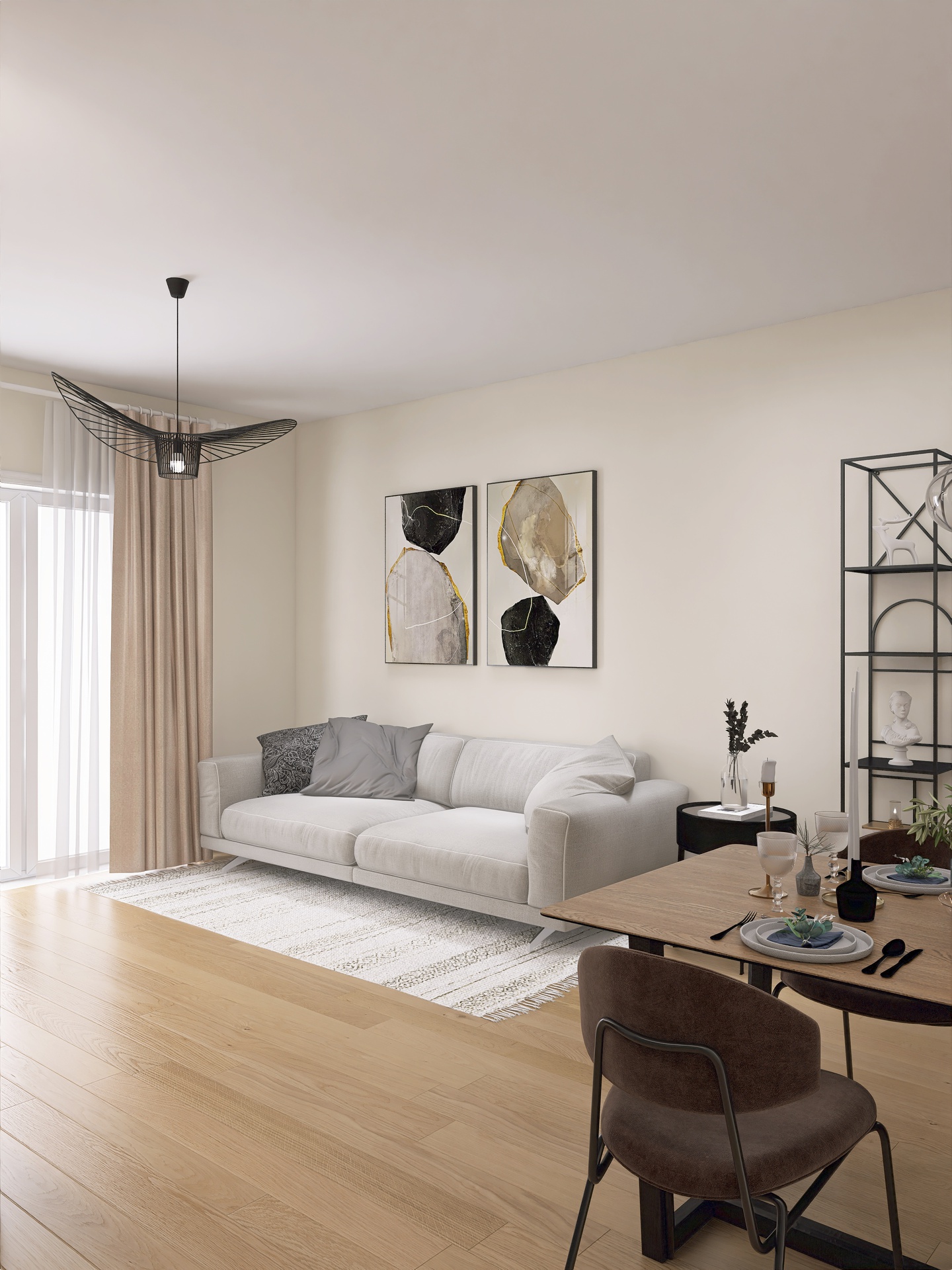 La ristrutturazione di questo appartamento a Roma, pensata per una giovane coppia con una figlia, mira a combinare funzionalità e stile moderno-industriale in un ambiente accogliente e ben organizzato.All’ingresso, l’armadiatura a tutta altezza rappresenta il primo intervento funzionale: uno spazio pratico e discreto per riporre giacche, scarpe e accessori. Integrato in modo lineare con ante lisce e finiture sobrie, questo elemento si inserisce nel contesto dell’ingresso senza appesantire lo spazio, ma garantendo ordine e comodità.La zona giorno è il cuore dell’appartamento. È stata progettata per essere luminosa e versatile, sfruttando una suddivisione funzionale tra la cucina e il soggiorno tramite una parete vetrata in stile industrial moderno. Questa soluzione in ferro nero e vetro lascia che la luce circoli liberamente tra gli ambienti e crea un effetto di apertura, pur mantenendo una distinzione tra le aree. Il soggiorno, che include anche la sala da pranzo, è caratterizzato da elementi di design studiati per creare un ambiente accogliente e raffinato. La boiserie moderna in legno di noce viene applicata sia sulla parete laterale della zona pranzo, sia dietro il mobile TV conferendo eleganza e un tocco di calore e spezzando la linearità delle pareti.La camera matrimoniale è progettata per un comfort ottimale e un'estetica coerente con il resto della casa. Grazie alla sua conformazione, la stanza consente la realizzazione di una cabina armadio, separata dalla zona notte da una parete vetrata con struttura ottonata vetro fumé. Questa scelta crea un effetto di semi-trasparenza che conferisce profondità alla stanza e mantiene un certo grado di privacy senza chiudere completamente gli spazi.Sulla parete del letto, viene ripresa la boiserie in legno di noce per dare continuità stilistica all’appartamento.La palette di colori neutri e naturali, con accenti scuri, crea un ambiente rilassante e ben equilibrato, perfetto per una giovane famiglia che desidera uno spazio funzionale ma allo stesso tempo elegante e accogliente.