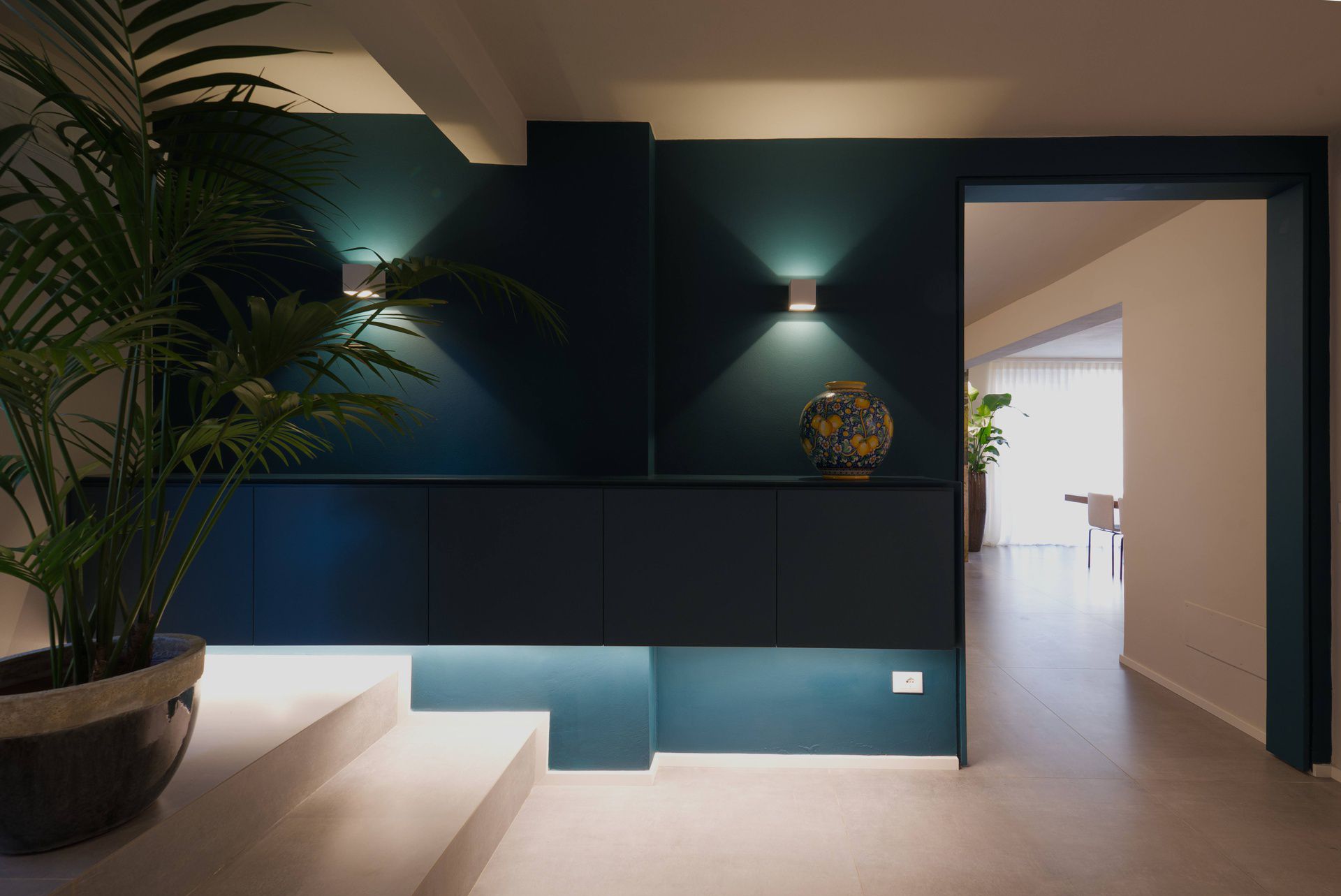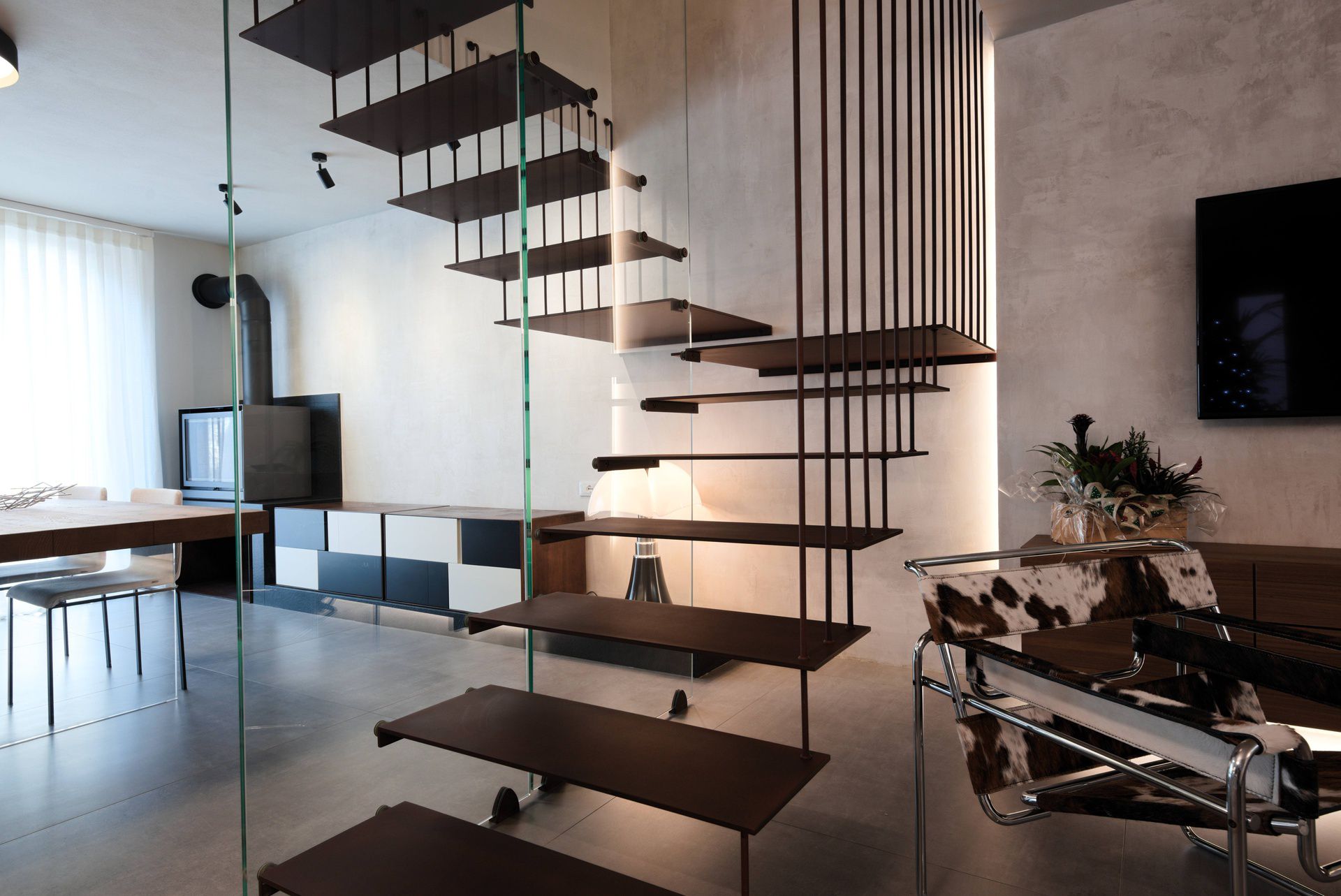 nato da una ristrutturazione totale di una villetta bifamiliare, un ambiente dedicato un tempo ad un uso promiscuo, è stato totalmente rivisitato e trasformato in un locale unico, mantenendo però le varie zone funzionali ben distinte. La scala è stata progettata con caratteristiche di leggerezza e praticità per non creare una separazione tra le varie zone e un ostacolo visivo alla percezione dell'ambiente unico. Lo studio riguarda esclusivamente la zona giorno, di non semplice soluzione stilistica e di sfruttamento ottimale dello spazio. Il risultato finale è ottimo!