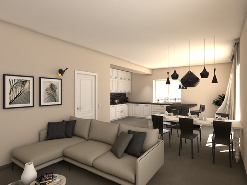Un sogno fatto di ambienti ampi e panoramici, impreziositi da mobili imponenti, cornici e carta da parati, veranda esterna e staccionata bianca in giardino.